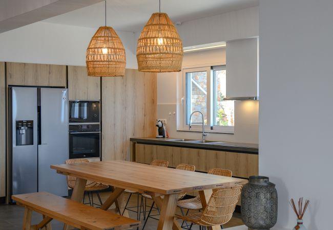 La Villa verfügt auch über einen Waschraum mit Waschmaschine und Trockner sowie einen zweiten Kühlschrank und Gefrierschrank. Die Außenbereiche der Villa bieten zahlreiche Möglichkeiten zum Entspannen und Essen und sind durchdacht in den Garten integriert. Sie finden eine große Terrasse, die von einer Pergola überdacht ist und eine Sommerküche mit Grill, Kühlschrank und Spüle beherbergt, so dass Sie Ihre Mahlzeiten genießen können, während Sie auf die wunderschöne kretische Landschaft blicken.