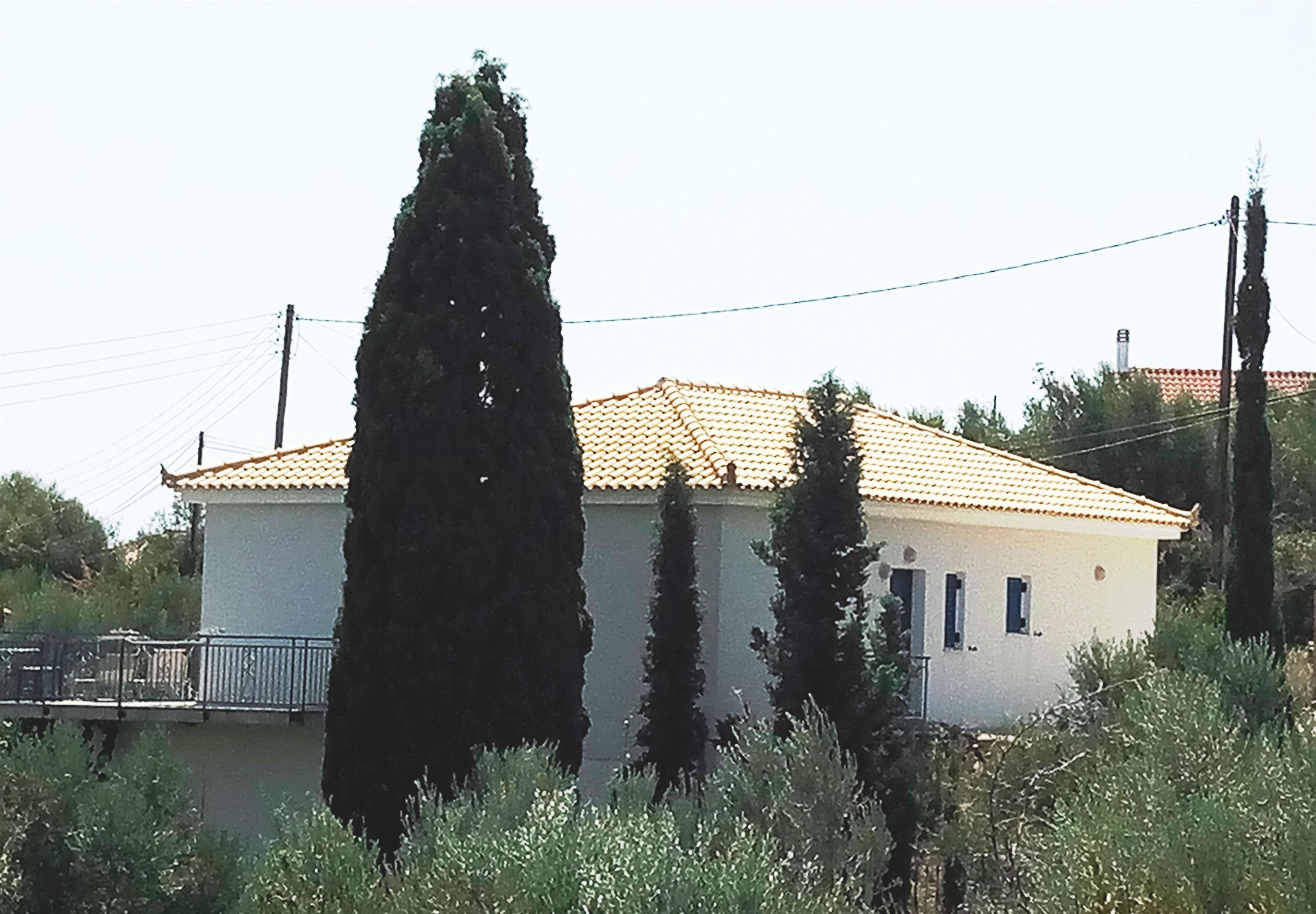 Die Villa Pilias liegt allein, umgeben von Olivenbäumen und Zypressen. Vor dem Haus gibt es an dem kaum befahrenen Weg Platz für 3 Autos. Der Weg, der über 250 Meter von der Asphaltstraße zur Villa Pilias führt, geht weiter in Richtung Meer, ist dann aber nur mit Offroadern zu befahren.
