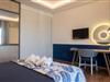 2019 komplett renovierte und erweiterte Ferienanlage inmitten eines schön gewachsenen Gartens mit Gemeinschaftspool und herrlichem Meerblick. Der Sandstrand von Gerakini liegt nur 300 m entfernt und ist durch eine Unterführung leicht zu erreichen. Ein tägliches Frühstück ist im Mietpreis enthalten! Im hoteleigenen Restaurant können Sie gemütlich speisen und bei einem kühlen Getränk den Sonnenuntergang genießen. Das Frühstück ist in Buffet-Form, Dinner (bei Halbpension), sowie Lunch und Dinner (bei Vollpension) werden serviert (kein Buffet, Dinner beinhaltet: 1. Gang, 2. Gang, Salat + Nachtisch pro Person). Das Zentrum von Gerakini mit Geschäften, Tavernen und Bars ist in wenigen Minuten zu Fuß zu erreichen. Dank der zentralen Lage sind alle drei Halbinseln leicht zu erreichen. In dem komplett renovierten Gebäude "Nikolaos" und in dem neu errichteten Gebäude ''Georgios'' sind die geräumigen und modern eingerichteten Executive Apartments. Die Appartements befinden sich im ersten Stock mit Blick auf den gepflegten Garten sowie im zweiten Stock mit Blick auf das Meer. Sie verfügen über ein Wohn-/Schlafzimmer mit einem Doppelbett und zwei Schlafsofas. Dank einer Schiebetür kann man das Appartement teilen, so dass das Doppelbett vom restlichen Teil des Appartements getrennt werden kann. Darüber hinaus verfügt das Appartement über ein Bad mit Dusche, einer Küche mit Geschirr, Mini-Kühlschrank, Ceranfeld sowie einer Klimaanlage (gegen Gebühr), einem SAT-TV, einem Safe und WLAN. Highlights: WLAN Tägliches Frühstück Mobilität : Nicht geeignet für Personen mit eingeschränkter Mobilität