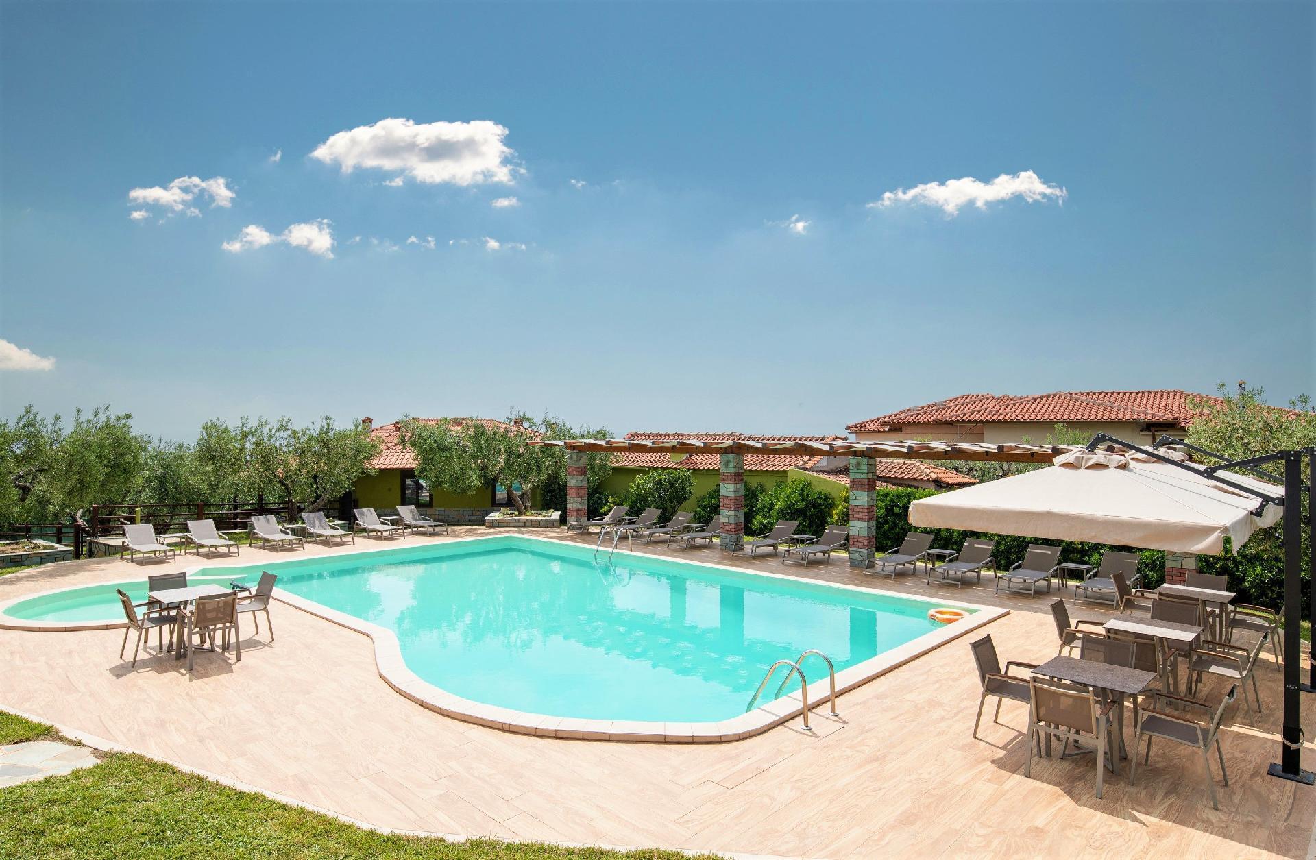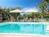 Mittelpunkt im gepflegten, eingezäunten Garten ist der Gemeinschaftspool. Am Pool und im Garten stehen kostenlose Liegestühle, Sonnenschirme und Sitzgruppen für Sie bereit, damit Sie jederzeit Ihr Sonnenbad sowie Ihren Drink oder Imbiss an der Poolbar genießen können. Während die Erwachsenen am Pool entspannen, freuen sich die kleinen Gäste über das Kinderbecken und den Spielplatz. Auch den schattig gelegenen Grillplatz, der mit einem großen Tisch und zwei Bänken ausgestattet ist, können Sie kostenlos benutzen. Auf dem großen, gemauerten Grill lassen sich köstlicher Fisch und Fleisch zubereiten. Auf dem Grundstück gibt es auch zehn gesicherte Pkw-Parkplätze.