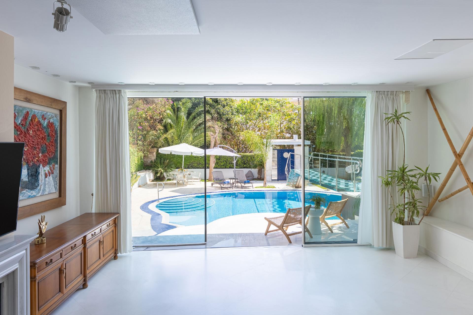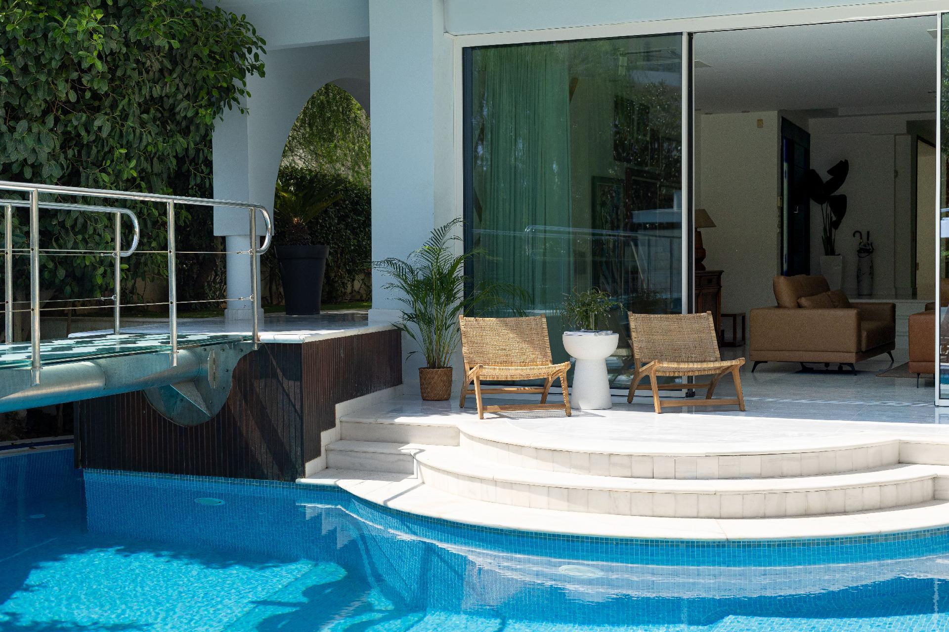 Die Villa Stefani ist eine neu renovierte Luxusvilla in Glyfada, die für Gäste konzipiert wurde, die sowohl Komfort als auch Stil schätzen. Das Anwesen bietet sieben Doppelzimmer mit hochwertigen Matratzen, sechs Badezimmer (zwei en-suite) sowie ein Gäste-WC und ist damit ideal für große Familien, Gruppen von Freunden oder Geschäftsreisende, die Platz und Privatsphäre schätzen. Zwei geräumige Wohnzimmer mit Kaminen und Smart-TVs bieten einladende Gemeinschaftsbereiche, während das große Esszimmer und zwei voll ausgestattete Küchen dafür sorgen, dass Abendessen oder Versammlungen mühelos veranstaltet werden können.