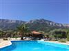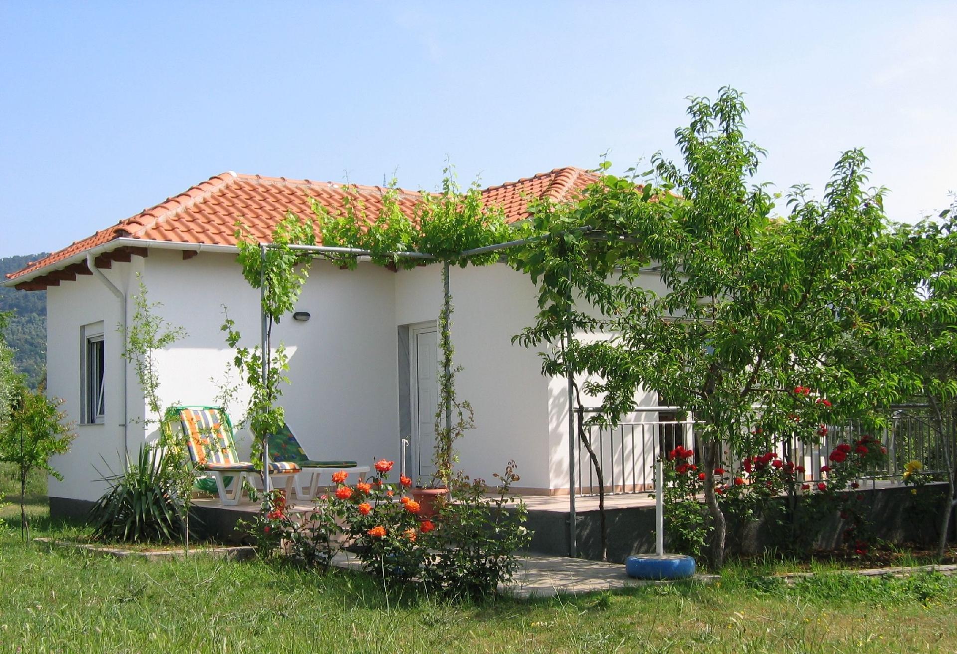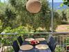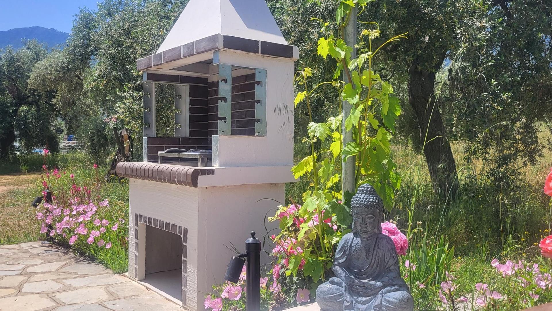 Das Haus umgeben eine große Terrasse und ein schön angelegter Garten mit farbenprächtigen Rosen. Die Terrasse ist mit einem Tisch, Stühlen, einem Sonnenschirm und zwei Gartenliegen ausgestattet. Hier können Sie den Tag mit einem Grillabend gemütlich ausklingen lassen und dabei die beeindruckende Aussicht auf die umgebende Berglandschaft genießen. Tagsüber bietet eine Weinlaube ausreichend Schatten auf der Terrasse. Der Swimmingpool eines Hotels befindet sich versteckt hinter Olivenbäumen in ca. 30 Meter Entfernung und kann jederzeit gemeinschaftlich genutzt werden. Zu Ihrer Ferienunterkunft gehören außerdem zwei private PKW-Außenstellplätze.