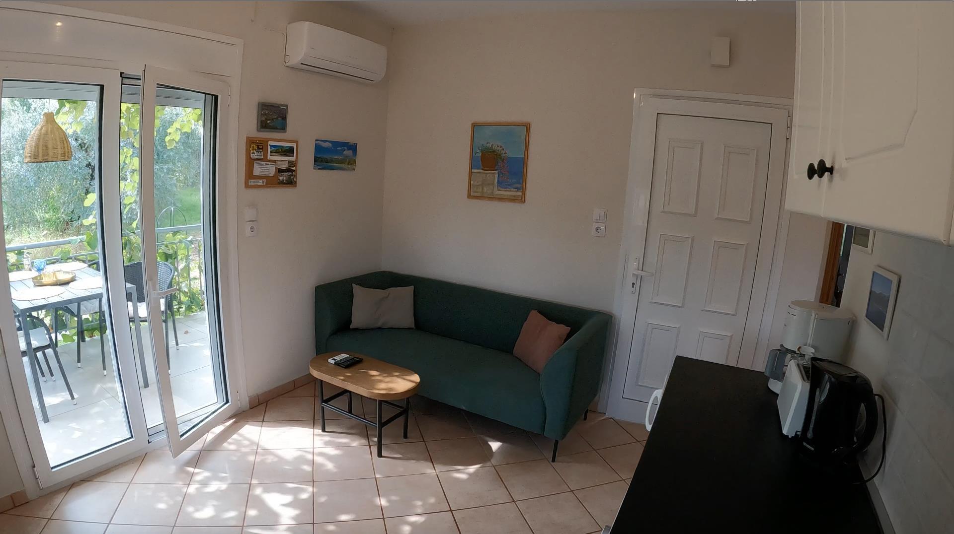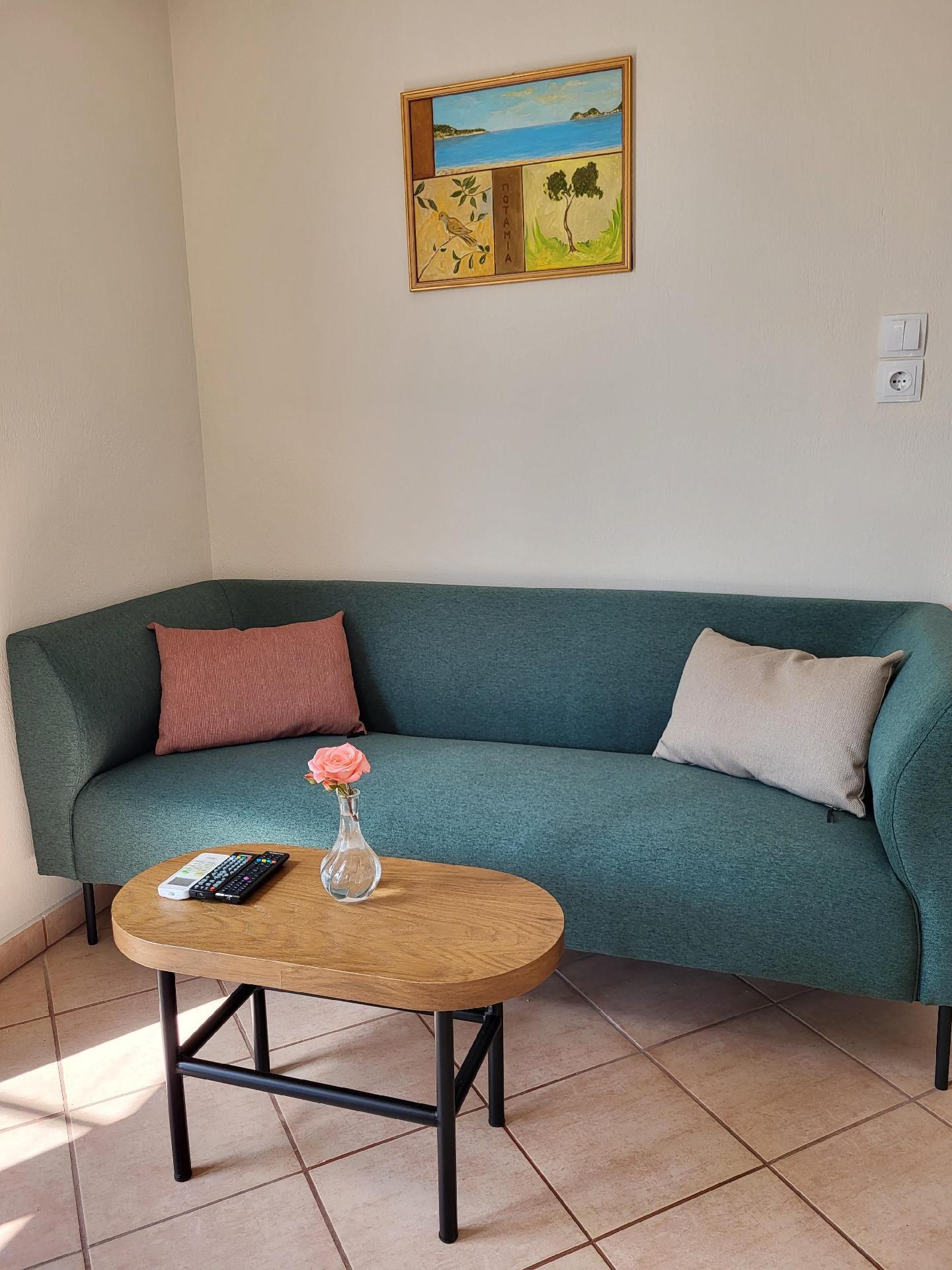Das freistehende Ferienhaus wurde 2022 modernisiert und befindet sich in ruhiger, zentraler Lage in der grünen Bucht von Potamia und Golden Beach, inmitten eines weitläufigen Olivenhains mit herrlichem Blick auf die umliegenden Berge.