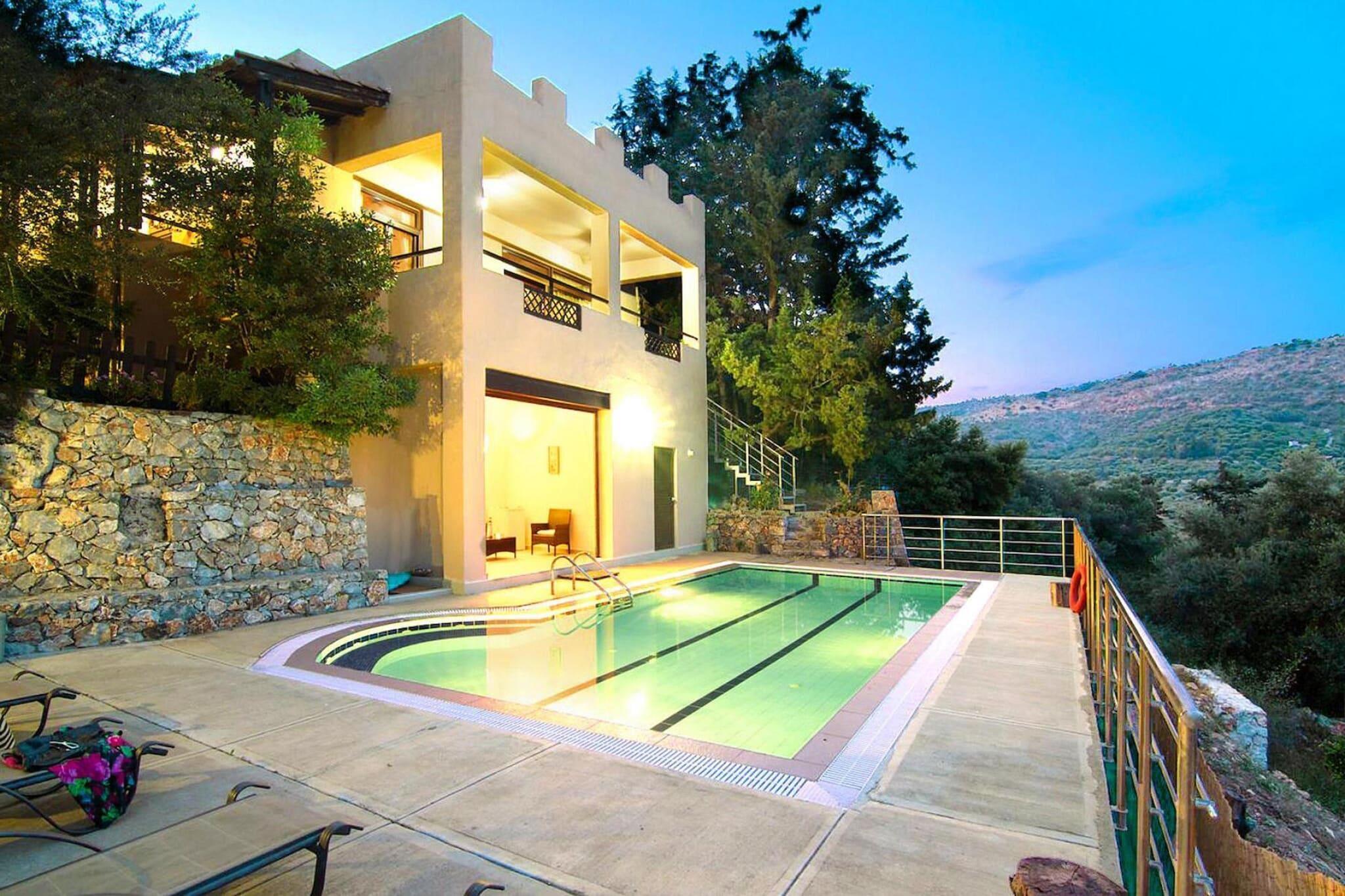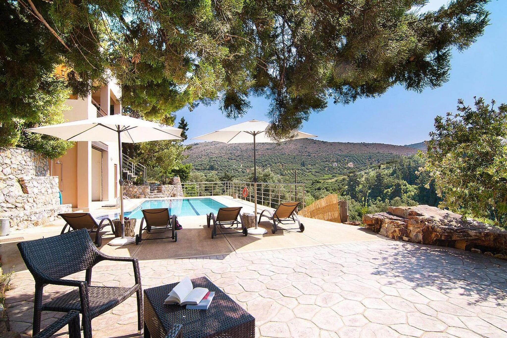 Gepflegtes Ferienhaus mit Privatpool auf einer Anhöhe nahe Georgioupolis in ländlicher, idyllischer Umgebung. Das Ferienhaus verfügt über 2 Schlafzimmer und 1 Galerie Schlafzimmer. Das Anwesen ist umgeben von Zypressen und Olivenbäumen und bietet einen weiten Blick auf die umliegenden Berge. Ideal für Erholungssuchende. Im hauseigenen Gemüsegarten können Sie täglich frisches Gemüse ernten. Extras inklusive: Zwischenreinigung 2 Mal pro Woche inklusive Willkommenspaket WLAN Mobilität : Nicht geeignet für Personen mit eingeschränkter Mobilität