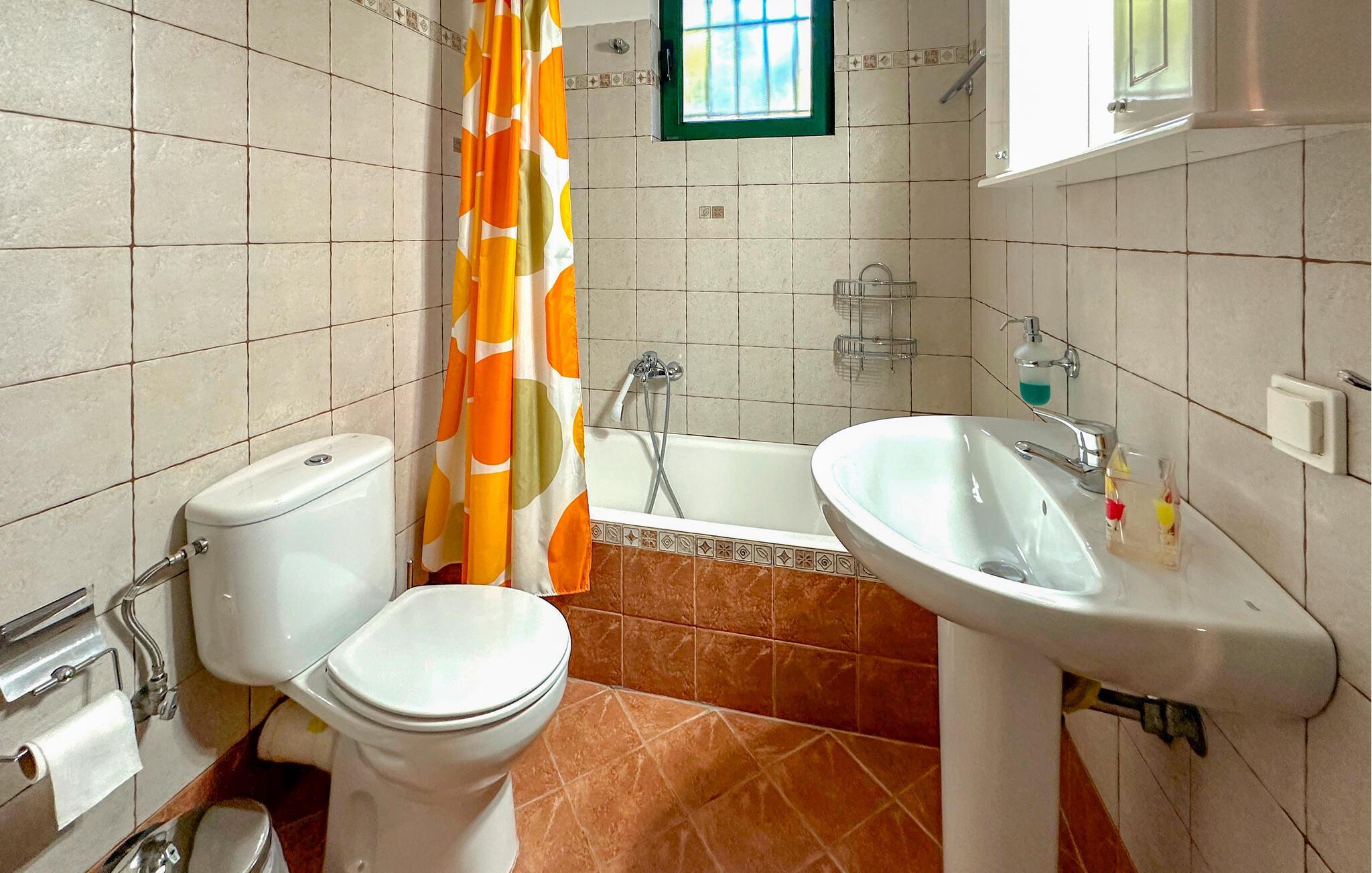 Nehmen Sie ein Sonnenbad auf der Terrasse und widmen Sie sich Ihrer Lieblingslektüre. Hinter dem Haus finden Sie einen großen Steingrill, auf dem Sie köstliche Mahlzeiten zubereiten können, sowie eine Rasenfläche, auf der Kinder frei spielen können. Die Villa teilt sich eine gemeinsame Mauer mit der Grundschule des Dorfes, die auch einen Basketballplatz hat.