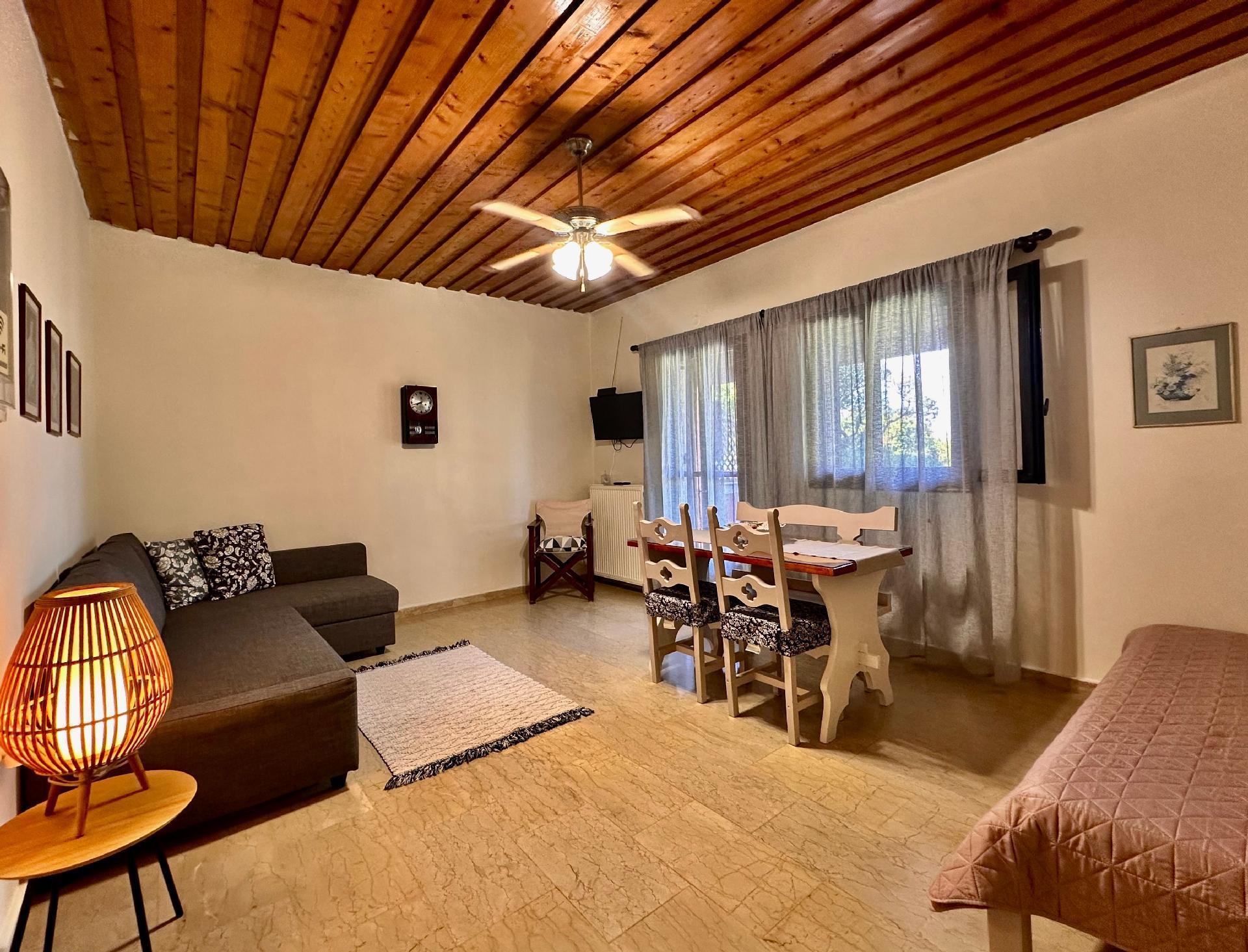 Jedes Apartment ist mit 40 m² großzügig geschnitten und so eingerichtet, dass bis zu 3 Erwachsene oder 2 Erwachsene und 2 Kinder bequem untergebracht werden können. Die Aufteilung umfasst ein privates Schlafzimmer mit Doppelbett, eine voll ausgestattete Küche für fünf Personen und einen Wohnbereich mit Schlafsofas, die als zusätzlicher Schlafplatz genutzt werden können. Die Inneneinrichtung schafft eine warme und gemütliche Atmosphäre. Das Badezimmer mit Dusche verbindet Funktionalität mit Komfort und wird durch eine Veranda ergänzt, die einen ruhigen Blick auf den Garten und das Meer bietet - perfekt für Entspannung und Unterhaltung.