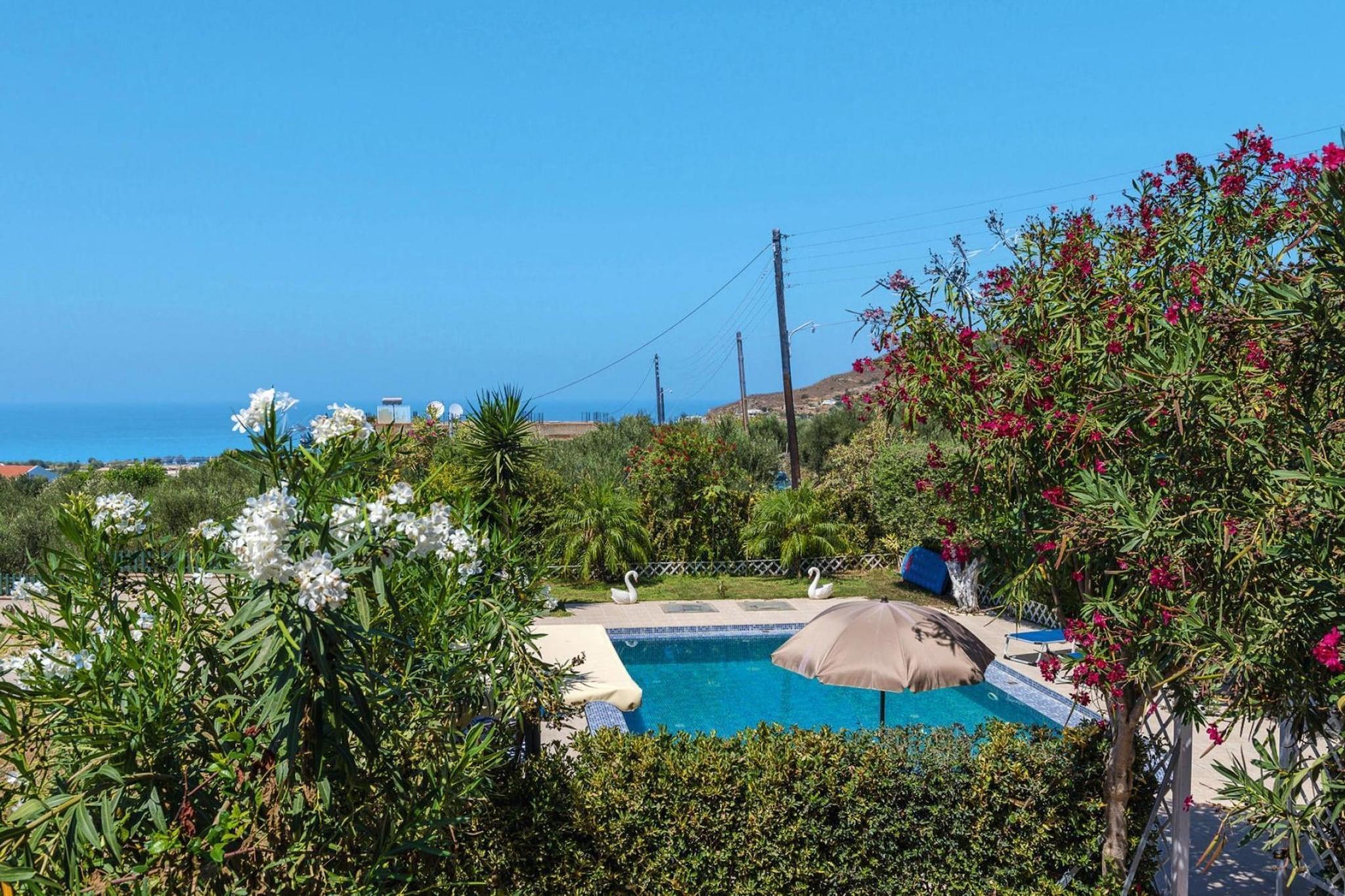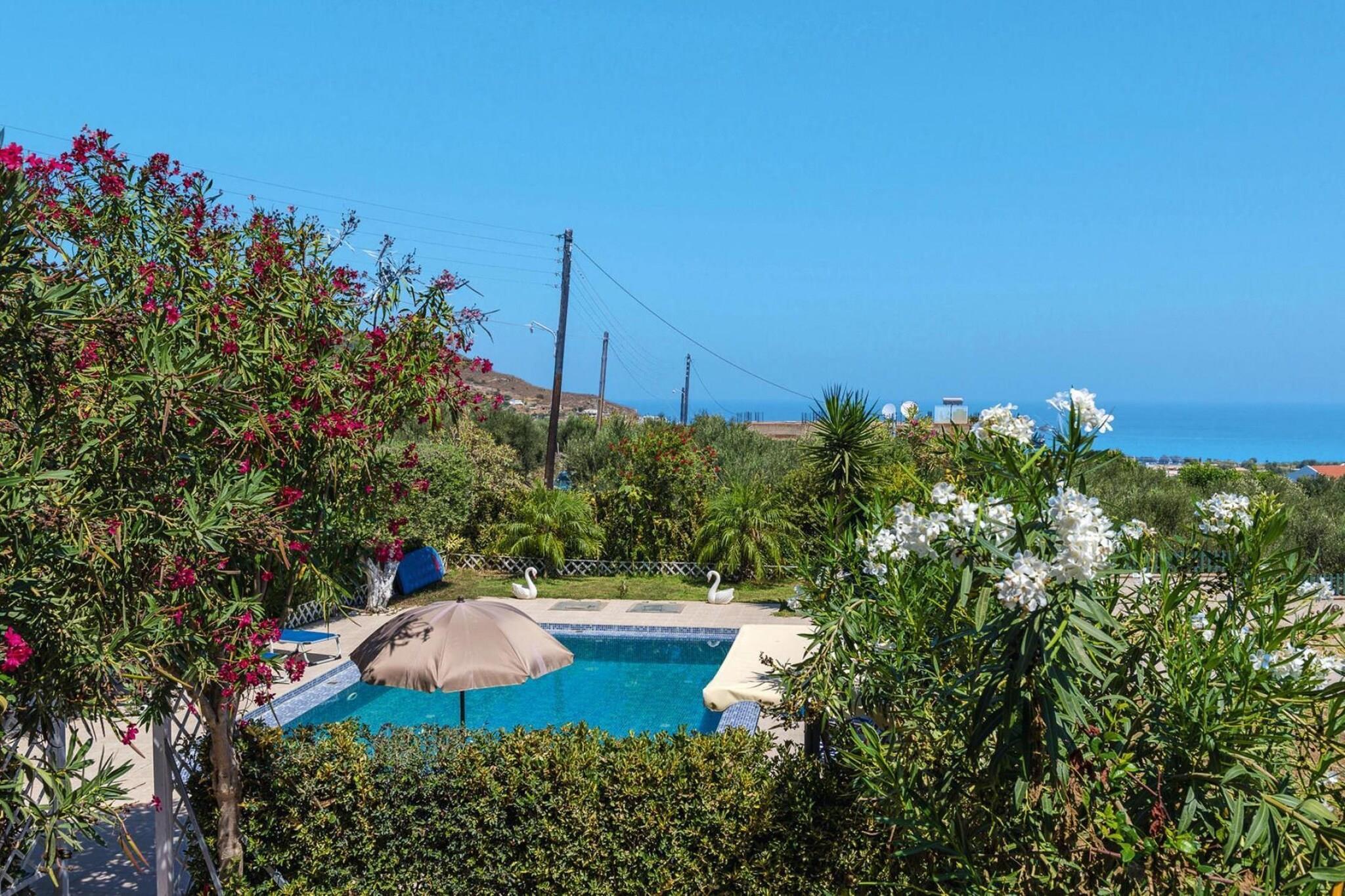 Das komfortable Ferienhaus mit privatem Pool liegt auf einem Hügel oberhalb des Touristenortes Kolimbari und verfügt über einen herrlichen Panoramablick auf das Meer. Im schön bewachsenen Garten mit Sonnenterrasse, Liegestühlen und Sonnenschirmen können Sie herrlich entspannen. Den Strand von Kolimbari sowie Restaurants, Cafés und Geschäfte erreichen Sie in 2 km. HighLights : Verbrauchsabhängige Energiekosten, Bettwäsche, Handtücher, Endreinigung WLAN Begrüßungspaket Zwischenreinigung 2 x je Woche inklusive Mobilität : Nicht geeignet für Personen mit eingeschränkter Mobilität