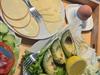 Komfortausstattung Kochen (Töpfe, Bratpfanne, Salz, Pfeffer und Öl)