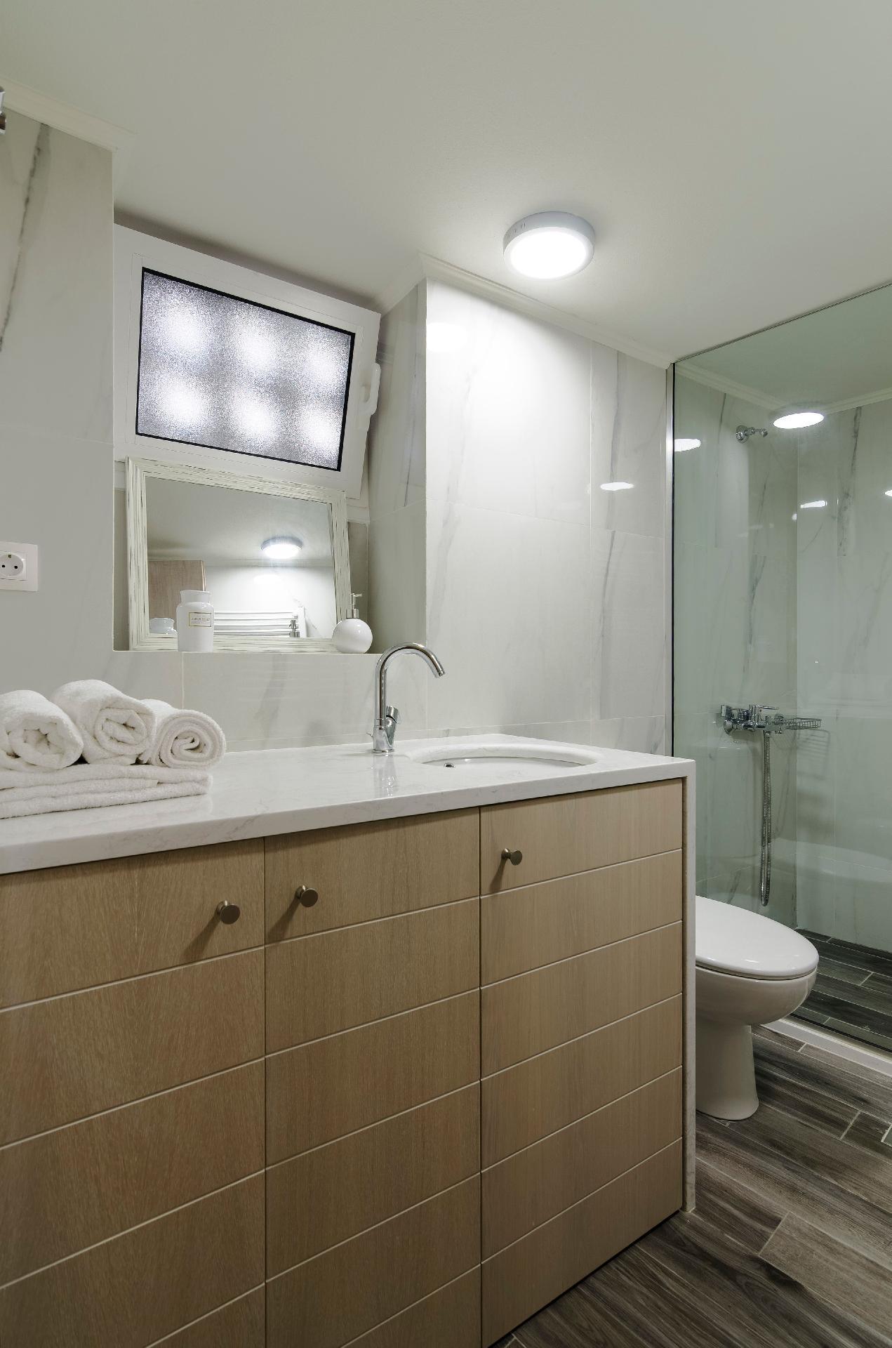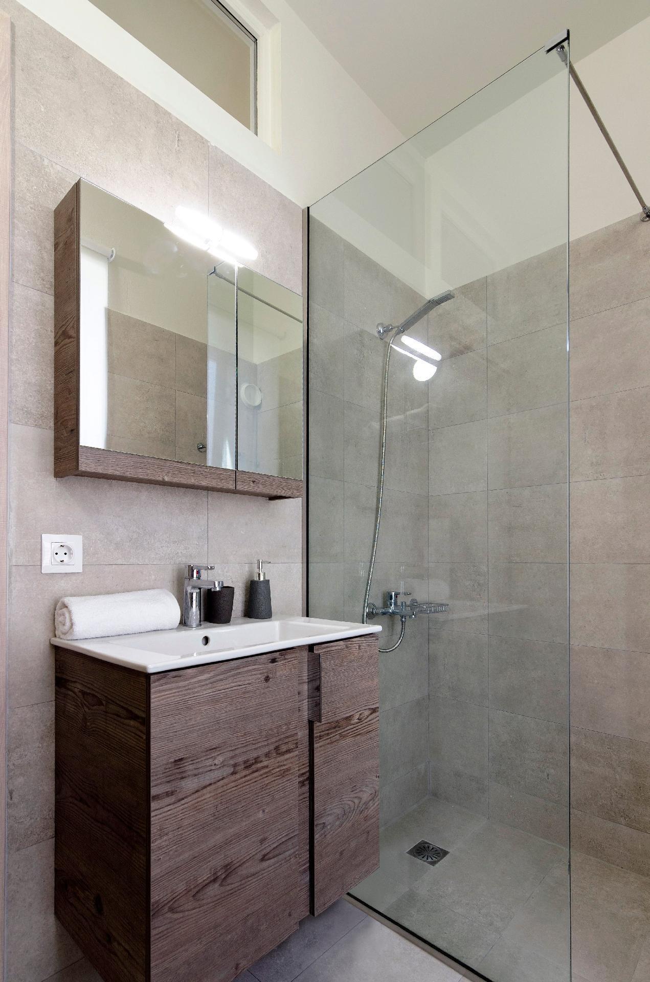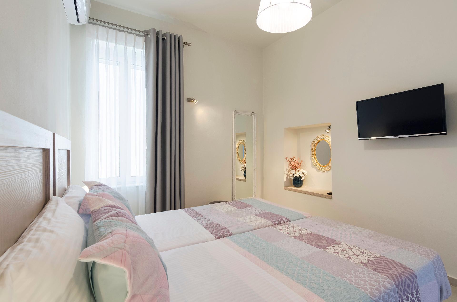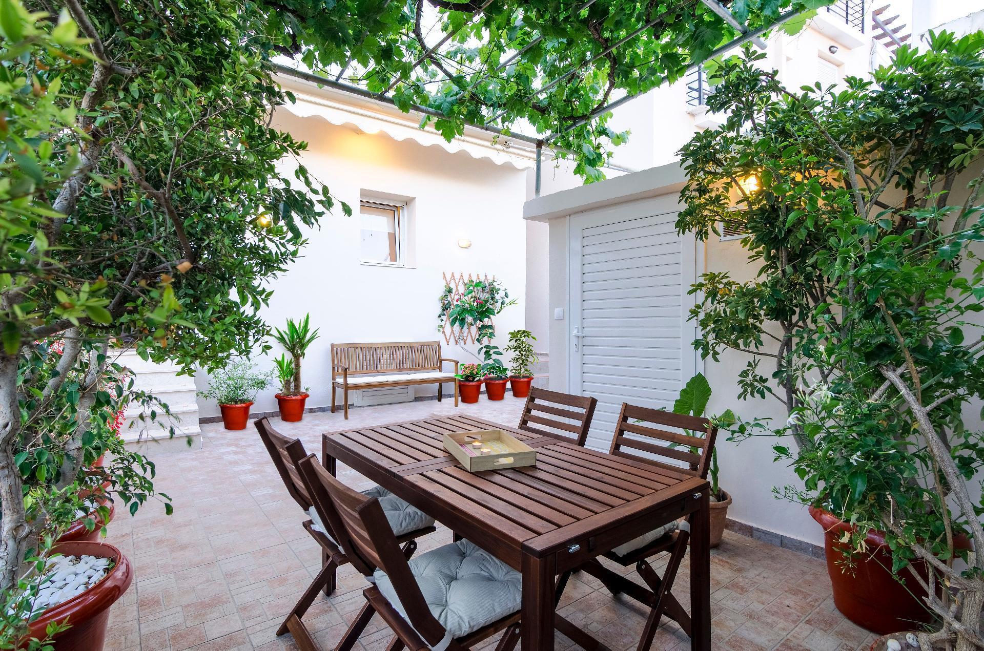 Unsere Gäste haben Zugang zum Hinterhof, wo sie sich unter dem Sonnenschirm und der Weinlaube entspannen können, und zu den Balkonen im ersten Stock, um die Sonne und die Meeresbrise zu genießen, während sie sich auf den Sonnenliegen ausruhen. Im ersten Stock gibt es ein Schlafzimmer mit einem Doppelbett, wo auch Platz für ein Babybett ist. Außerdem gibt es im ersten Stock ein Schlafzimmer mit zwei Einzelbetten und ein Badezimmer.