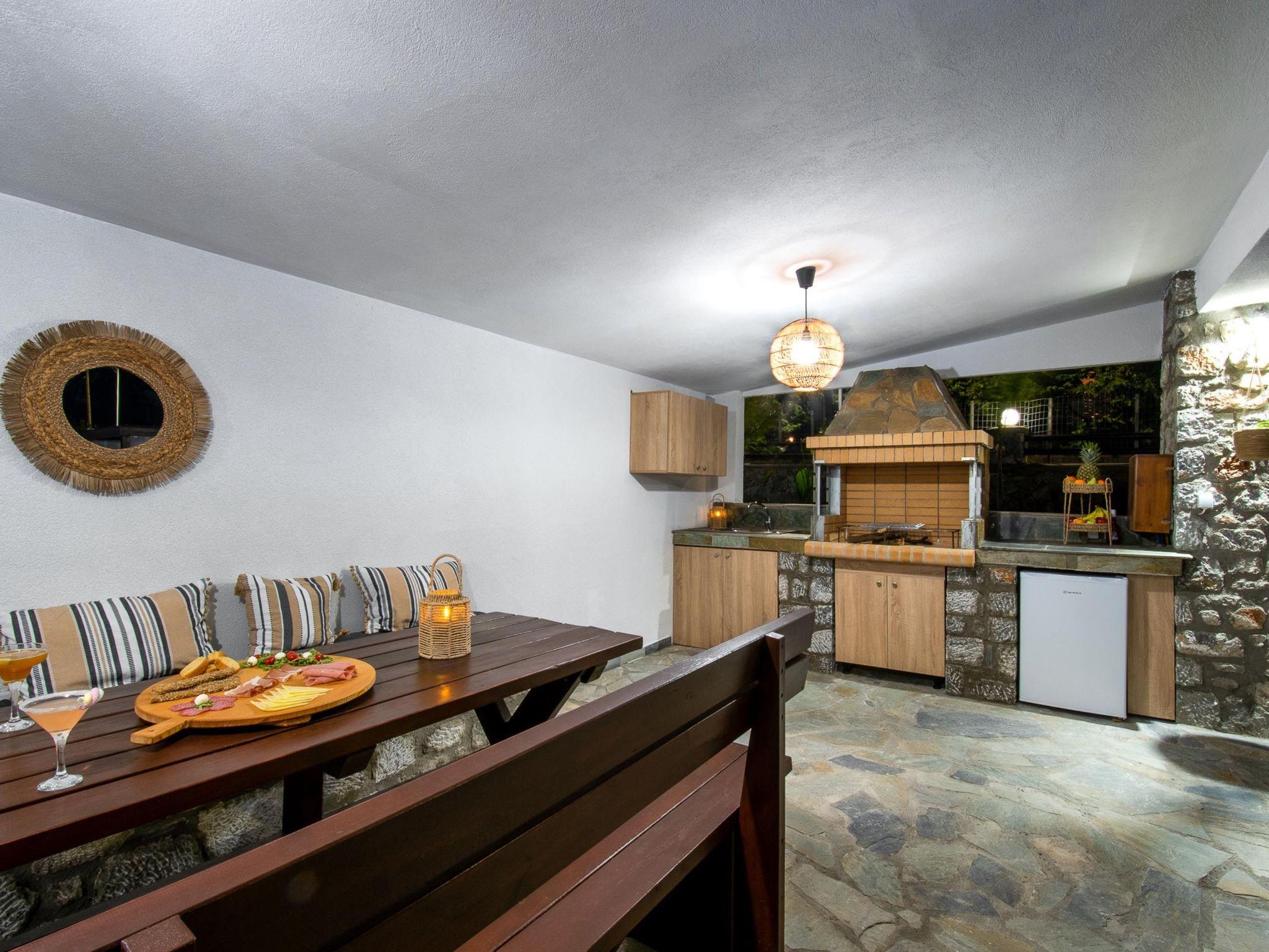 Die Villa Maripaul ist ideal für Familien und Gruppen von bis zu 8 Personen, die einen erholsamen Urlaub in Meeresnähe verbringen möchten. Die Villa verfügt über insgesamt 4 Schlafzimmer. Ein Hauptschlafzimmer mit eigener Sitzecke und Zugang zu einem Balkon, 3 weitere Schlafzimmer mit großen Doppelbetten, ein Flachbildfernseher in jedem Schlafzimmer und eine Klimaanlage. Es gibt 2 Bäder, eines mit Dusche und eines mit Badewanne. Es gibt eine voll ausgestattete Küche, die für die Zubereitung von Mahlzeiten geeignet ist, sowie eine Sitzecke. Es gibt ein gemütliches Wohnzimmer mit Flachbildfernseher und Satellitenkanälen, einen großen Essbereich und kostenlosen Wi-Fi-Zugang im gesamten Haus. Der Außenbereich ist ebenso unglaublich wie der Innenbereich. Diese wunderschöne Villa verfügt über einen fantastischen Gartenbereich mit einem Swimmingpool, Sitzgelegenheiten, Sonnenliegen, Sonnenschirmen und Kiosken, Kinderspielplätzen, Sportanlagen im Freien und einem großartigen, aus Stein gebauten Grill. Die Villa hat auch einen überdachten Privatparkplatz für bis zu 3 Autos.