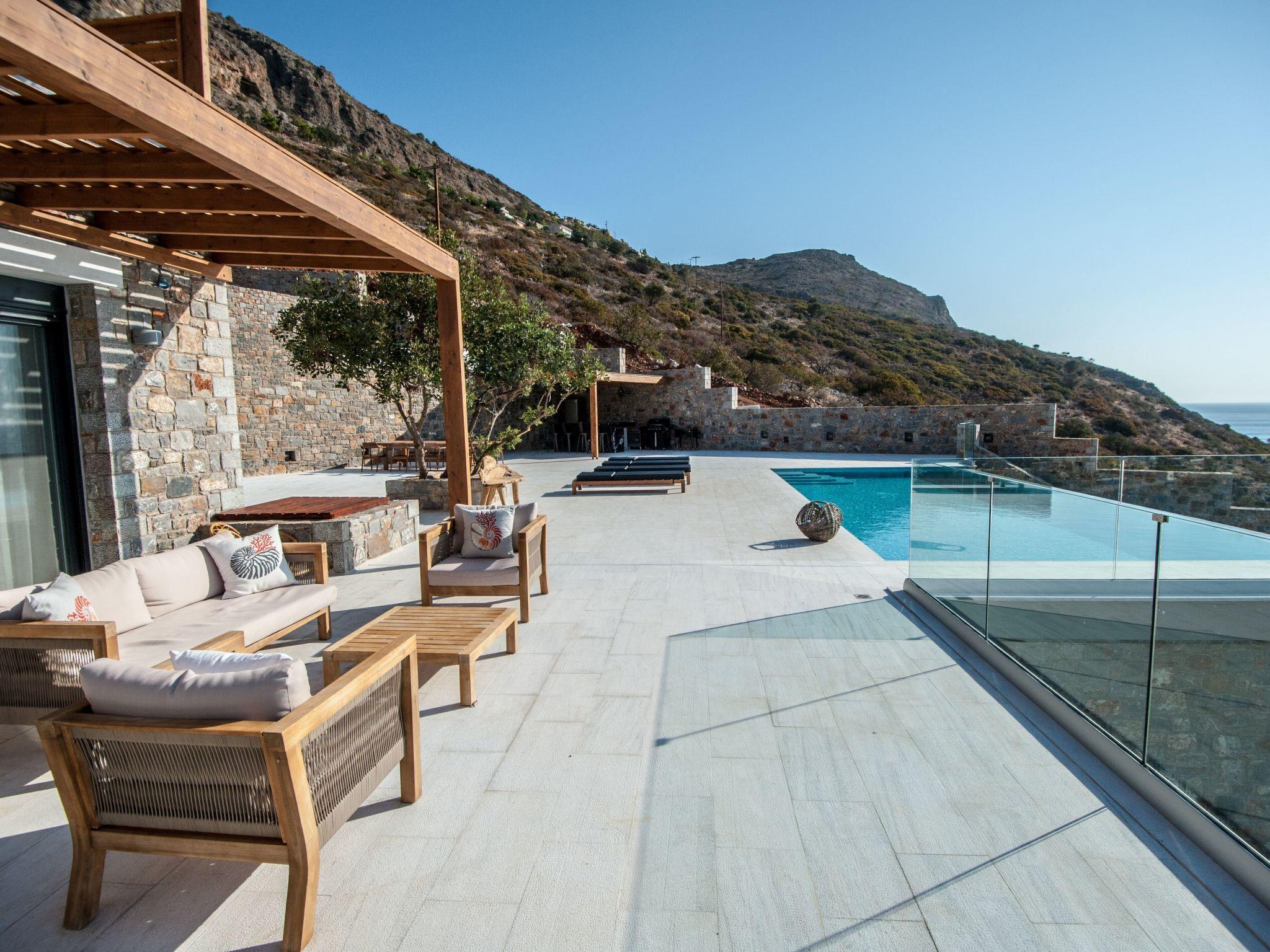 Die Villa Superior ist eine der neuesten und prächtigsten Residenzen in der Gegend. Diese Villa ist genauso atemberaubend wie die Meereslandschaft, die sie überblickt. Die drei steinernen Stockwerke sind so luxuriös gestaltet, wie Ihr Urlaub sein sollte. Superior steigt den Hügel hinauf und verfügt über eine niedrigere Gartenebene, einen atemberaubenden Infinity-Pool und eine Terrasse auf Bodenhöhe. Sechs luxuriöse Schlafsuiten, die alle Erwartungen übertreffen, werden Ihre Seele, Ihren Körper und Ihren Geist vollkommen entspannen.italienische Hartholzböden ziehen sich durch den großen offenen Küchen- und Wohnbereich. Luxuriöse, handverlesene Möbel, moderne Kunst und eine Küche der Spitzenklasse in einem Blau, das wir nur als Ägäisblau bezeichnen können. Die Sitzbereiche auf der Terrasse, der Essbereich und sogar die Außenküche mit Gasgrill und Barbereich sind nach außen hin offen, so dass Ihr persönlicher Blick nicht unterbrochen wird. Auf der unteren Ebene befindet sich ebenfalls ein gepflegter und privater Garten, der in einen Kinderspielplatz mündet und sich zum Meer hin öffnet. Wenn Sie sich eine Auszeit gönnen möchten, werden Sie in diesen Oasen der Ruhe mit ihren strahlend weißen Oberflächen, kühlen italienischen Marmorbädern und Whirlpools einen Zufluchtsort finden. Zwei weitere Schlafzimmer runden das Haus ab und tauschen den Gartenblick gegen einen eigenen Balkon. Es steht außer Frage, dass die Villa Superior alles bietet, was man sich für einen entspannten und angenehmen Aufenthalt wünschen kann. Die Lage der Villa Superior eröffnet Ihnen eine Vielzahl von Möglichkeiten zur Erkundung. Es ist nur ein kurzer Spaziergang zum süßen kleinen Dorf Plaka. Das typisch griechische Flair und die herzliche Gastfreundschaft sind eine Versuchung zu viel, und Sie werden nach Lust und Laune hin- und herschlendern. Die weitere Region Elounda ist mit dem Auto leicht zu erreichen und mit ihren schönen Stränden und Tavernen das bevorzugte Urlaubsziel der gesellschaftlichen Elite. Die reiche Geschichte der Region wird in den Ruinen der antiken Stadt Olous wieder lebendig, aber ganz oben auf Ihrer Liste sollte ein Bootsausflug zur Insel Spinalonga stehen. Vergessen Sie nicht, einen Blick zurück auf die Küste zu werfen, um einen Blick auf die Villa Superior zu erhaschen, die vom Meer aus den Hügel hinaufsteigt. Zugang zu einem nachhaltigen, umweltfreundlichen Felsstrand.