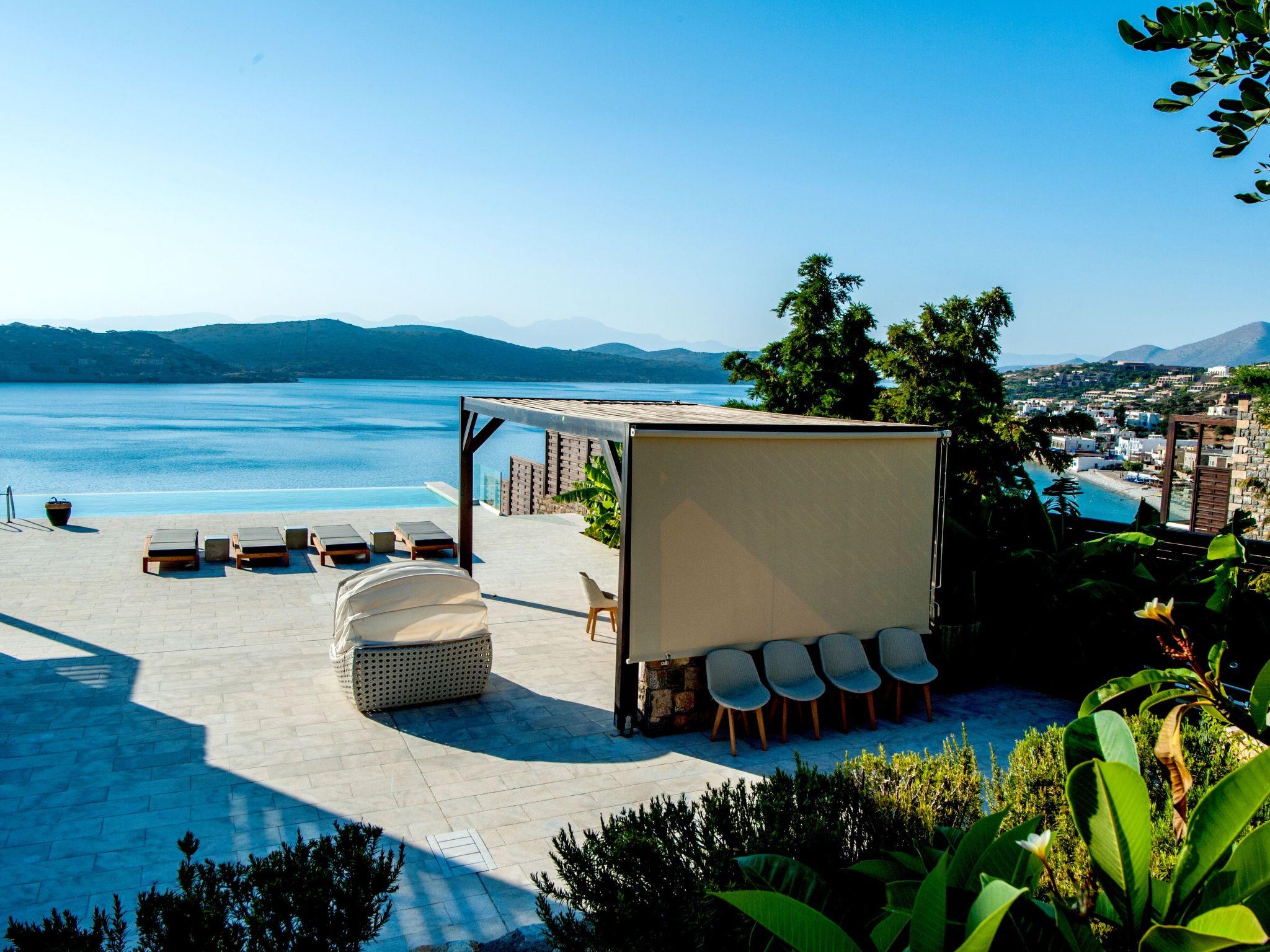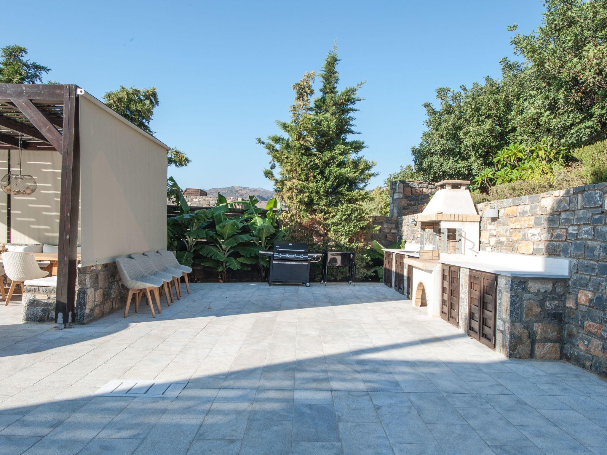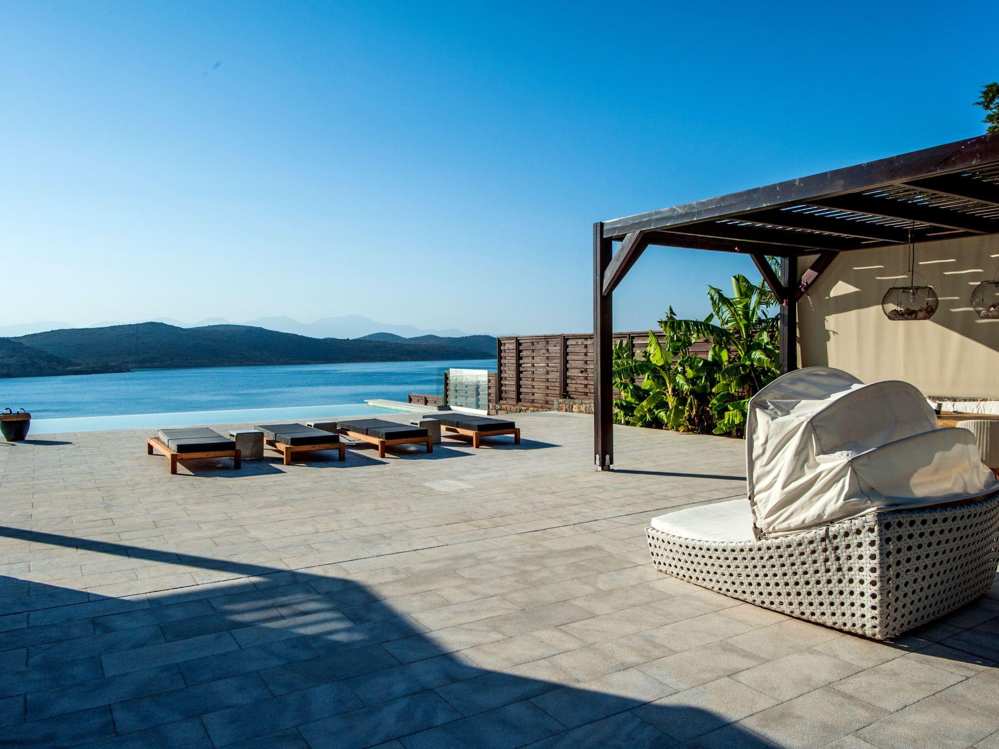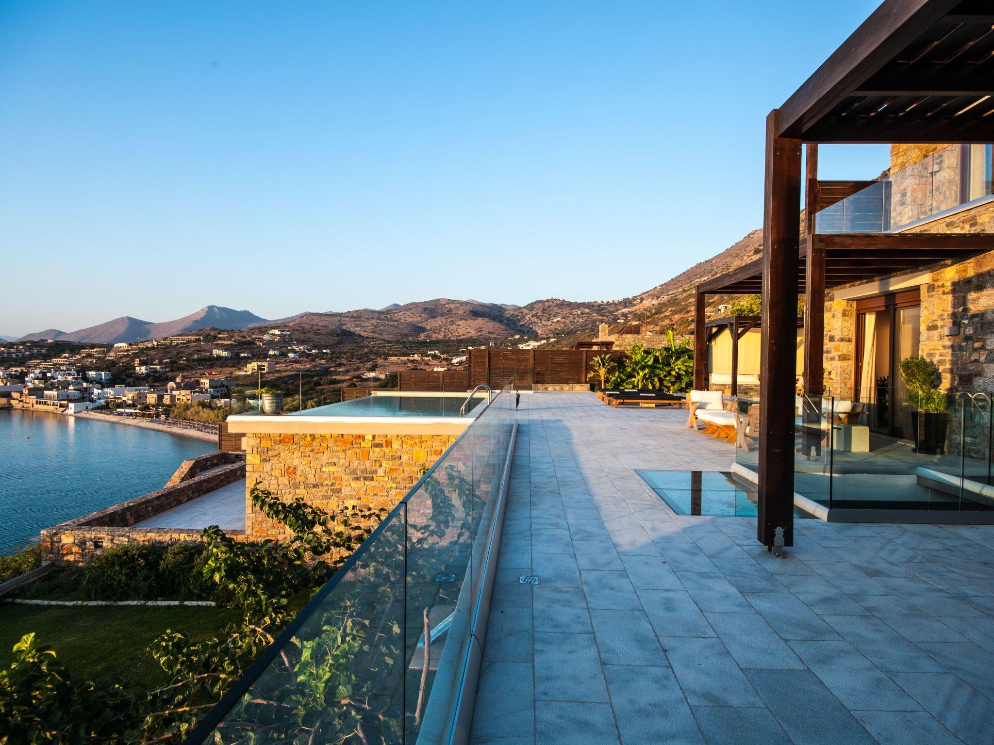 Die prächtige Villa Danae wurde in der Region Plaka neu gebaut. Fünf elegante Schlafzimmer sorgen dafür, dass zehn Personen einen unvergleichlichen Luxusurlaub mit allem Komfort genießen können. Mit Blick auf den Golf von Elounda und die Insel Spinalonga macht die Villa Divine das Beste aus ihrer erstklassigen Lage. Ihr steinernes Äußeres fügt sich harmonisch in die hügelige Kulisse ein. Im Erdgeschoss befindet sich der private Infinity-Pool, der in eine große, silberne Steinterrasse eingelassen ist. Das architektonische Design vermittelt ein Gefühl der Abgeschiedenheit, wobei sich die Aussicht aus jedem Winkel eröffnet. Auf der einen Seite steht ein Grillplatz bereit, auf der anderen ein überdachter Essbereich, der willkommenen Schatten spendet, während die offenen Seiten den Blick aufs Meer freigeben. Genießen Sie eine nachmittägliche Siesta auf den bequemen Liegen oder dem schicken Tagesbett und wachen Sie dann erfrischt auf, um das Beste aus den langen Abenden und den warmen, sternenklaren Nächten zu machen.Der offene Küchen-, Ess- und Wohnbereich ist perfekt eingerichtet. Die elegante und moderne Kunst schafft eine anspruchsvolle Kulisse für ein abendliches Beisammensein. Die hochmoderne Küche macht die Zubereitung eines Meze-Schmauses zu einem Traum, und der Weinkühlschrank sorgt dafür, dass die Gläser nie leer werden. Öffnen Sie die Terrassentüren, um die spektakuläre Aussicht zu genießen, denn jedes dieser fünf Zimmer lädt zum Verweilen ein. Das elegante und raffinierte Dekor sorgt für eine angenehme Atmosphäre, während das Marmorbad für eine erfrischende Abkühlung in der Jacuzzi-Badewanne sorgt. Schlüpfen Sie in Bademantel und Hausschuhe, nehmen Sie sich ein Glas Wein und machen Sie es sich so bequem wie möglich. Die drei Zimmer im Erdgeschoss öffnen sich zum Innengarten und zum Meer hin, während die beiden Zimmer im ersten Stock über einen eigenen Balkon mit Meerblick verfügen, so dass Sie mit Sicherheit Ihren Lieblingsplatz finden werden. Vielleicht ein Sprung in den Pool, ein erfrischendes Hamam oder ein Training im Fitnessstudio? Machen Sie einen Ausflug ins nahe gelegene Plaka. Dieses winzige Fischerdorf hat ein authentisches, traditionelles griechisches Flair und lockt mit einer Vielzahl von Tavernen und Märkten. Die einheimische Kultur und Gastfreundschaft sind absolut herzerwärmend. Von Plaka aus können Sie die gegenüberliegende Insel Spinalonga besuchen. Das kristallklare Wasser und die Kieselstrände sind alles, was Ihnen in Erinnerung bleiben wird. Wunderschöne Ausblicke auf die Insel Spinalonga und den Golf von Elounda, Zugang zu einem umweltfreundlichen Felsstrand.