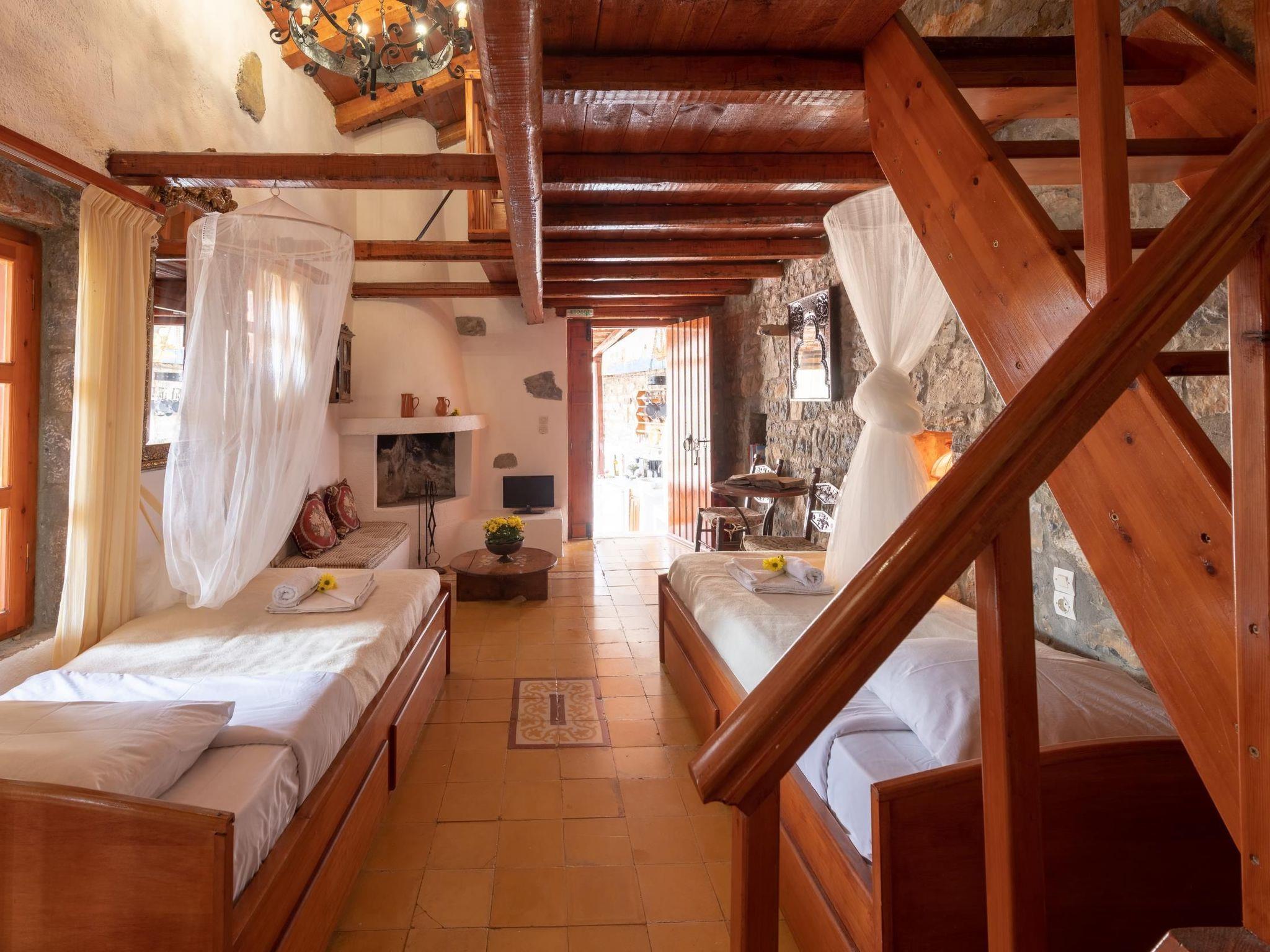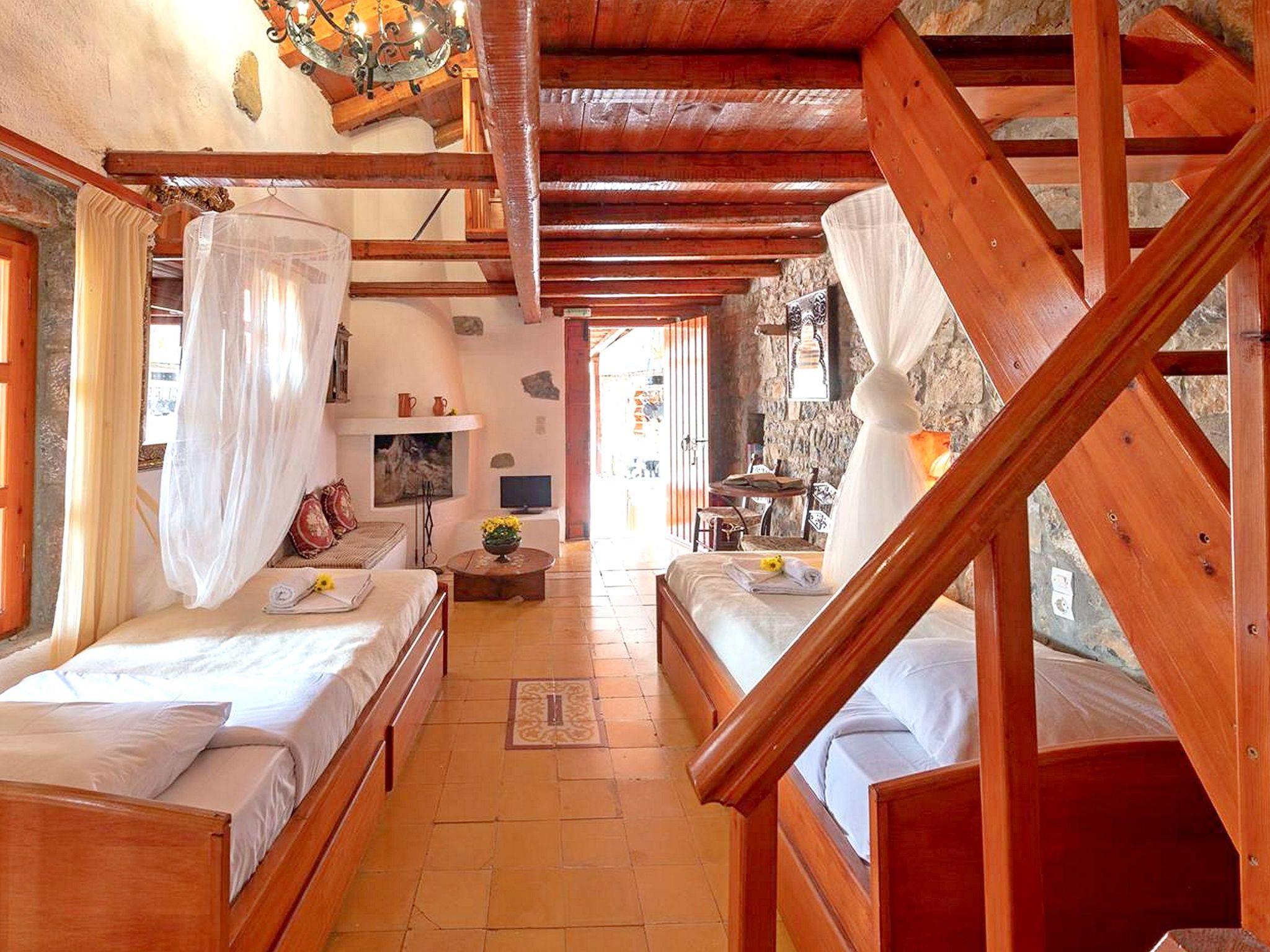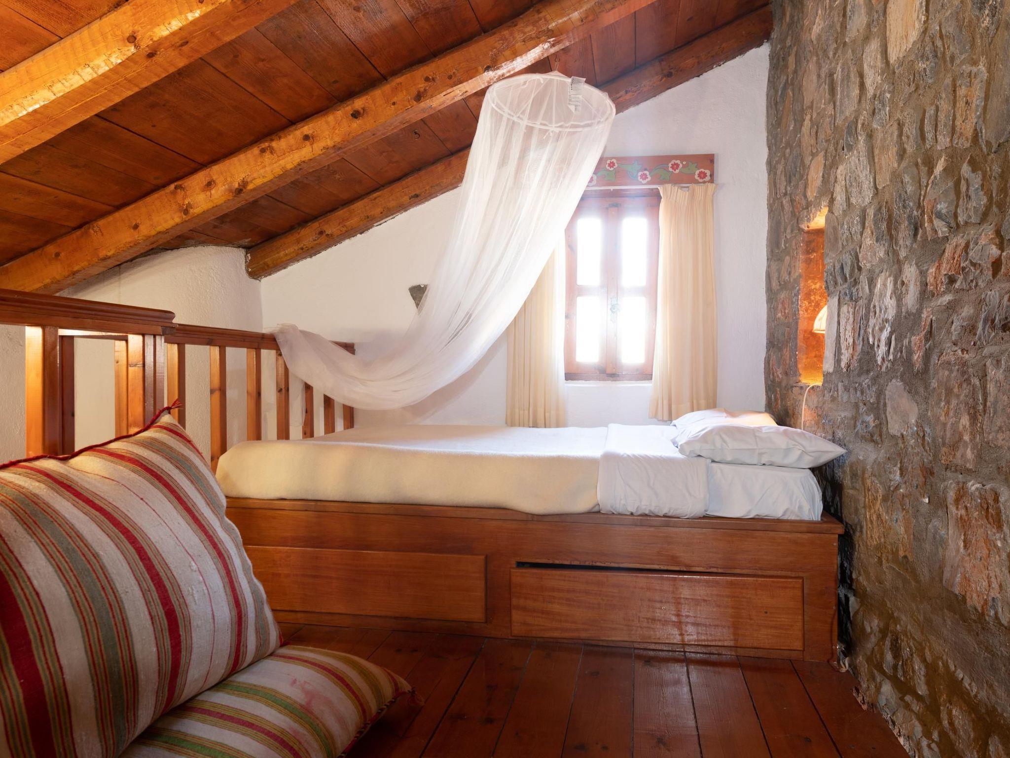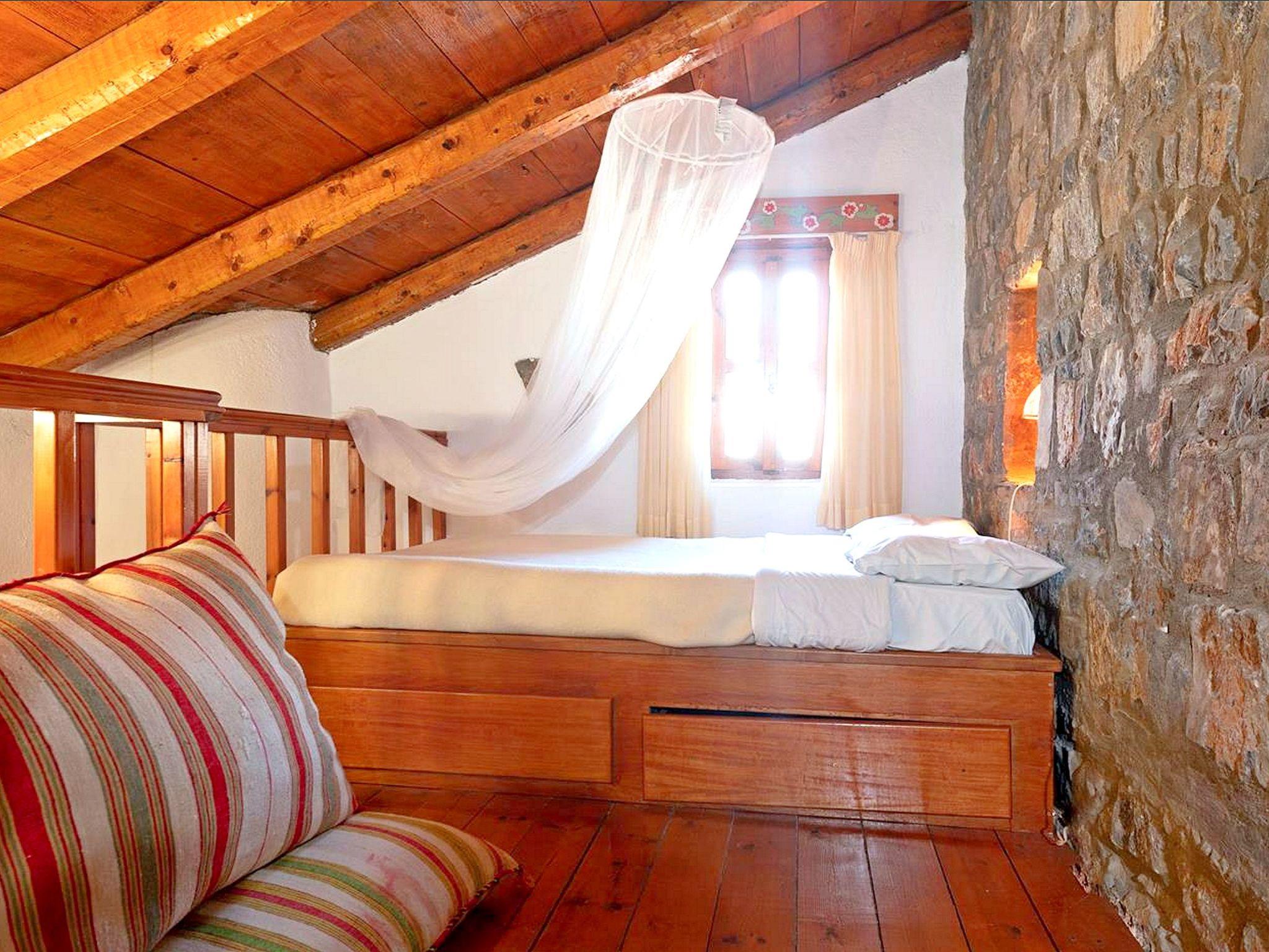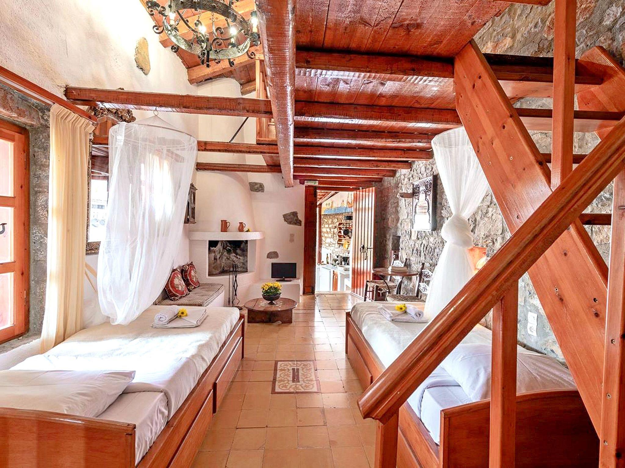 Penelope kann 6 Personen in drei verschiedenen Räumen beherbergen (einer davon ist ein geschlossenes Schlafzimmer). Der Eingang führt zu einer gemeinsamen Freifläche mit einem großzügigen Pool (GEMEINSAMER Pool mit einem anderen Haus) und einer Sommerküche, die mit den Bewohnern eines anderen Hauses geteilt wird. Die Treppe führt zur Terrasse und zum Eingang des Hauses. Auf der linken Seite befindet sich die voll ausgestattete Küche, die zum Hauptschlafzimmer mit zwei Betten führt, und auf der rechten Seite befindet sich der Kamin. Das große Badezimmer befindet sich neben einem kleineren Schlafzimmer mit zwei Einzelbetten. Eine Holztreppe führt zum Dachboden mit einem Doppelbett. Privatparkplatz.
