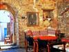 ? Innen-Essbereich ? Ein einzigartiger runder Holztisch unter einem majestätischen Steinbogen