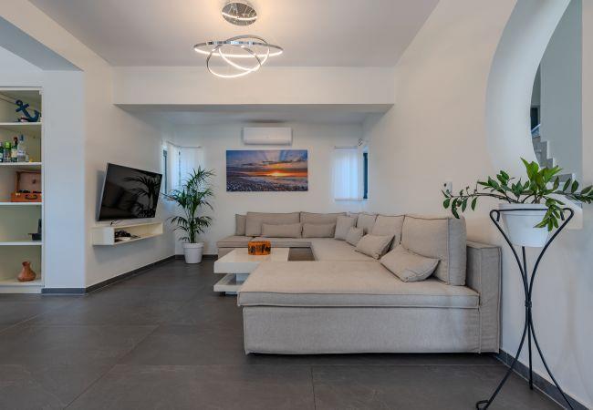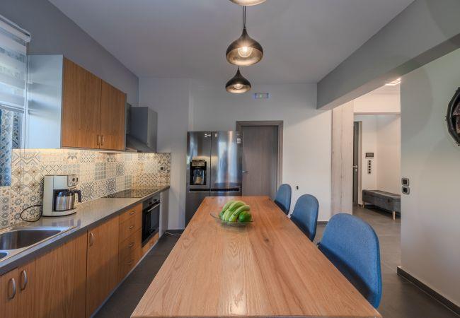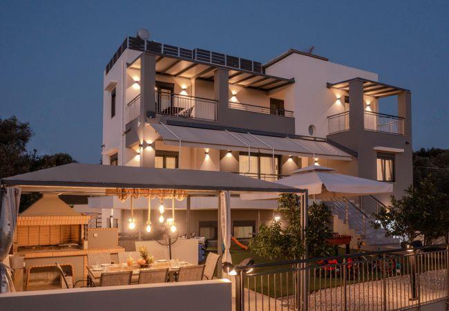 Die 3A's Family Luxury Villa in Rethymno ist ein großartiger Rückzugsort, der für Entspannung und Komfort konzipiert wurde. Mit einer großzügigen Fläche von 330 m² bietet diese voll ausgestattete Villa Platz für bis zu 10 Gäste und ist somit das perfekte Ziel für Familienurlaube oder einen erholsamen Aufenthalt mit Freunden. Umgeben von atemberaubenden Ausblicken auf das Meer und die Berge, vereint sie modernen Luxus mit der natürlichen Schönheit der ländlichen Landschaft Kretas, nur 4 km vom lebhaften Zentrum von Rethymno entfernt. Die familienfreundliche Atmosphäre und das elegante Design bieten einen unvergesslichen Aufenthalt in einer ruhigen und malerischen Umgebung.