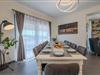 Beim Betreten der Villa öffnet sich im Erdgeschoss ein heller, luftiger Wohnbereich mit offenem Grundriss. Das Wohnzimmer, nahtlos verbunden mit dem Essbereich, bietet viel Platz zum Entspannen und Beisammensein. Angrenzend befindet sich eine voll ausgestattete Küche mit modernen Geräten wie Kühlschrank, Backofen, Mikrowelle und Geschirrspüler – ideal, um mühelos Mahlzeiten zuzubereiten. Ein separater Arbeitsbereich bietet Privatsphäre und Konzentration und ist perfekt für Gäste, die Freizeit mit Arbeit verbinden müssen. Zudem gibt es auf dieser Ebene ein praktisches Gäste-WC.
