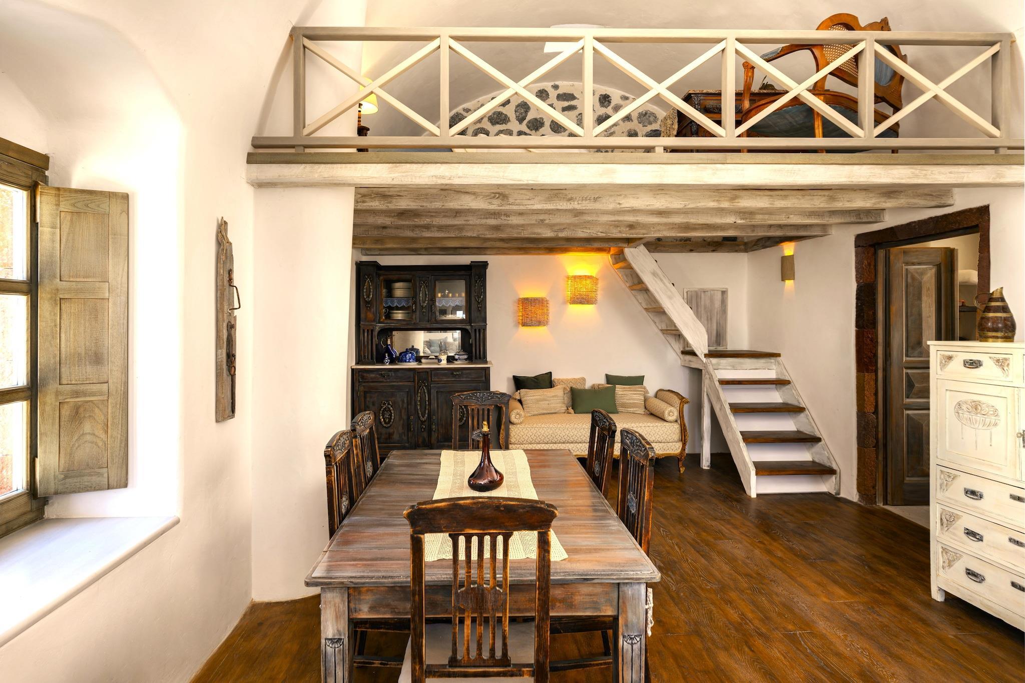 Eingebettet im Herzen des mittelalterlichen Dorfes Pyrgos lädt die Villa Santa Croce Sie ein, die zeitlose Schönheit Santorins in luxuriösem Komfort zu erleben. Mit Blick auf die historischen Castelli von Pyrgos und das endlose Blau der Ägäis vereint diese elegante Villa jahrhundertealte Architektur mit moderner Raffinesse. Die Villa, die um einen erhaltenen mittelalterlichen Turm herum erbaut wurde, spiegelt venezianischen Charme durch ihre Steinbögen und einzigartigen Designdetails wider. Sie bietet Platz für bis zu 10 Gäste und verfügt über großzügige Innenräume, stilvolle Schlafzimmer und lichtdurchflutete, ruhige Wohnbereiche. Entspannen Sie sich im privaten Höhlenpool, genießen Sie den Whirlpool im Freien oder bewundern Sie atemberaubende Sonnenuntergänge über dem Vulkan von der Panoramaterrasse aus. Jede Ecke der Villa Santa Croce erzählt eine Geschichte – von der vom historischen Erbe inspirierten Einrichtung bis hin zu den weiten Ausblicken, die Sie mit Santorins Vergangenheit und Gegenwart verbinden. Nur wenige Schritte von Pyrgos' traditionellen Tavernen, Kunstgalerien und verwinkelten Gassen entfernt, bietet die Villa einen authentischen und zugleich exklusiven Rückzugsort. Im Erdgeschoss befindet sich eine Master-Suite mit Queensize-Bett und Kupferbadewanne sowie zwei Galerien mit Doppelbetten, die sich ein Badezimmer mit Dusche, WC und Waschbecken teilen. Ein separates WC ist von der Terrasse aus zugänglich. Im Obergeschoss erwartet die Gäste ein helles Schlafzimmer mit Queensize-Bett, eine weitere Galerie mit Doppelbett und ein voll ausgestattetes Badezimmer mit Dusche, Badewanne und WC. Ob Sie die kulturellen Schätze der Insel entdecken, einen besonderen Anlass feiern oder einfach nur in stilvoller Ruhe entspannen möchten – die Villa Santa Croce verspricht einen unvergesslichen Aufenthalt, an dem Geschichte, Eleganz und Komfort aufeinandertreffen.