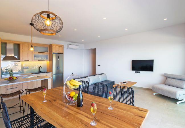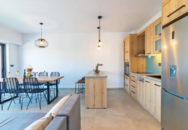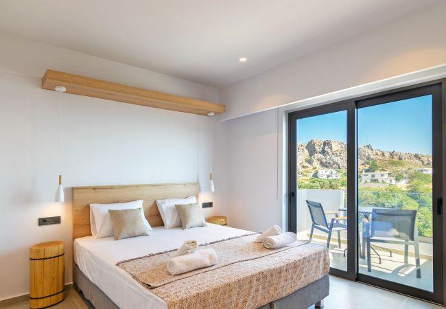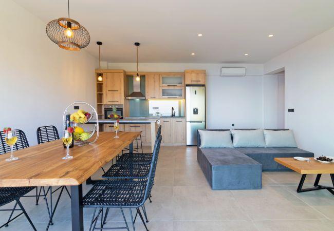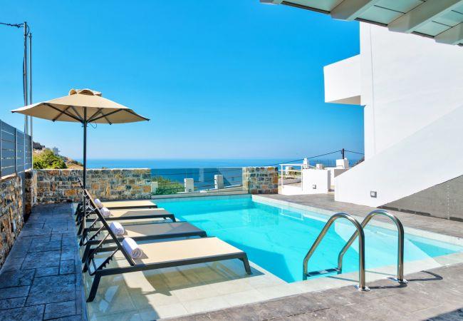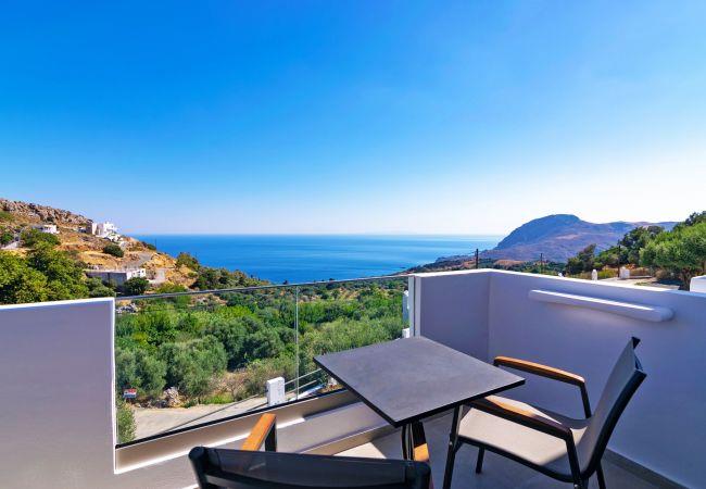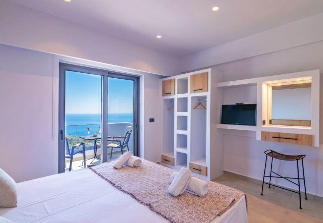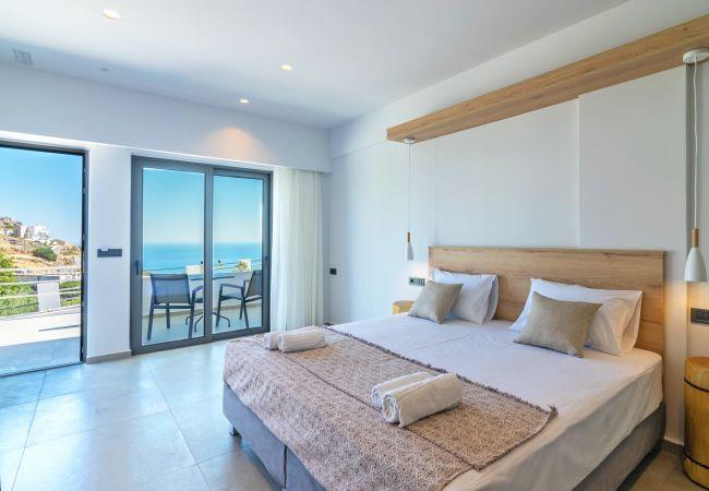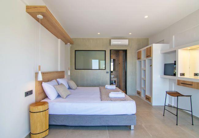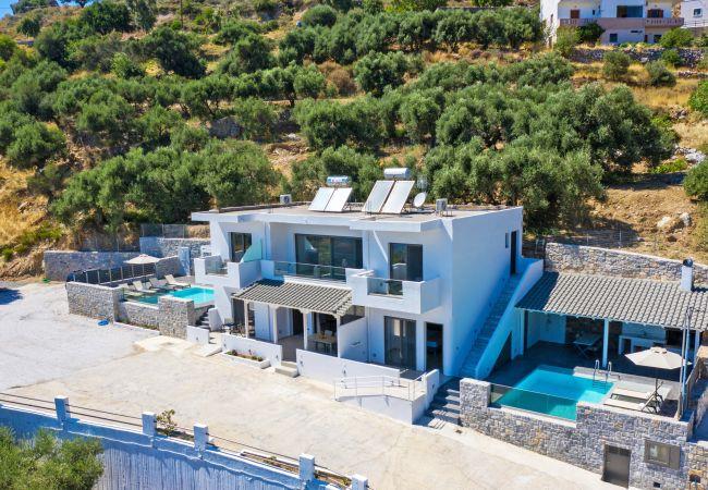 Die Petasos Villa verfügt über großzügige 80 qm Fläche und besteht aus 2 Schlafzimmern und 2 Badezimmern. Im Erdgeschoss finden Sie ein Doppelzimmer mit zwei Einzelbetten, die zu einem Doppelbett umgewandelt werden können, sowie ein eigenes Bad mit großer Dusche und WC. Eine externe Treppe führt in das Obergeschoss, wo sich ein zweites Schlafzimmer, ein geräumiges Duschbad und ein schöner offener Wohn- und Essbereich nahtlos an eine voll ausgestattete moderne Küche anschließen. Auf dieser Ebene befinden sich große französische Fenster, die zu einer geräumigen Veranda führen, die mit Terrassenmöbeln und atemberaubendem Blick auf das Libysche Meer und die Umgebung ausgestattet ist.