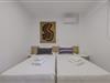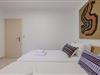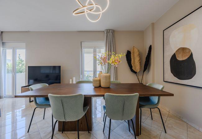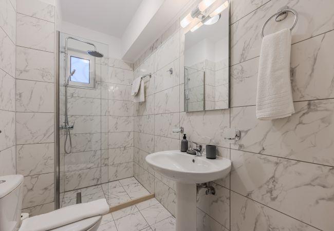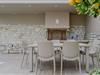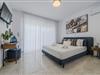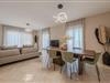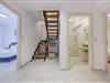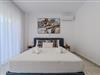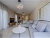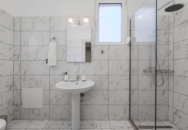 Das Erdgeschoss-Mittelgeschoss dient als sozialer Mittelpunkt der Villa und vereint einen einladenden Wohnbereich, einen Essbereich und eine Küche. Das Wohnzimmer verfügt über ein bequemes L-förmiges Sofa, einen Couchtisch und einen 55-Zoll-Smart-TV sowie Schiebetüren, die auf einen Balkon mit atemberaubendem Meerblick und Außensitzgelegenheiten führen. Neben dem Wohnbereich befindet sich der Essbereich mit einem großen Tisch, an dem 8 Gäste bequem Platz finden. Die moderne Küche ist mit hochwertigen Geräten wie Ofen, Kochfeld, Mikrowelle, Geschirrspüler, Kühlschrank, Nespresso-Maschine und Filterkaffeemaschine ausgestattet. Auf dieser Etage befinden sich auch zwei Badezimmer: eines mit Badewanne und ein separates Schlafzimmer mit eigenem Badezimmer und Dusche.