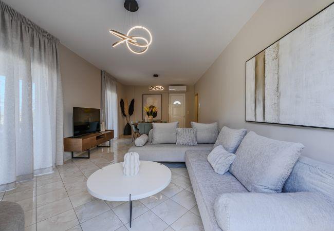 Die Gegend von Sfakaki hat wunderschöne Sandstrände, und in nur wenigen Gehminuten erreichen Sie charmante Tavernen, Restaurants und einen Supermarkt. Die Stadt Rethymno ist nur 9 Kilometer entfernt, und eine Bushaltestelle befindet sich nur wenige Minuten vom Haus entfernt.