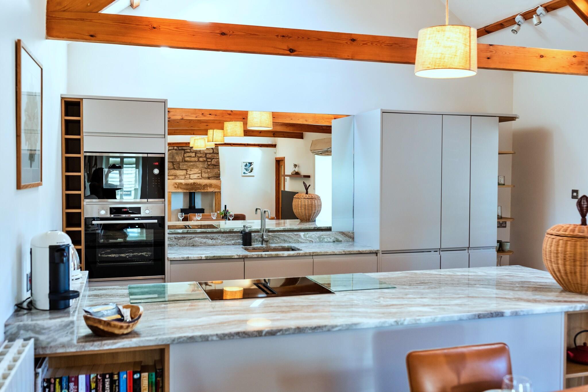 Die Old School ist ein wunderschön restauriertes ehemaliges Schulhaus und bietet einen eleganten und einzigartigen Rückzugsort im Herzen von Northumberland. Dieses atemberaubende, einstöckige Cottage ist ideal für alle, die Komfort und Stil suchen, und bietet geräumige Unterkünfte für bis zu vier Gäste. Der Wohnbereich verfügt über einen Holzofen, einen maßgeschneiderten Couchtisch und ein hochmodernes Unterhaltungssystem, darunter einen 55-Zoll-Digital-Smart-TV und einen Bluetooth-Lautsprecher von Bang & Olufsen. Der stilvolle Essbereich und die elegante Küche mit hochwertigen Geräten, einschließlich einer markanten Granit-Arbeitsplatte, bieten den perfekten Rahmen für entspanntes Essen. Zwei sorgfältig ausgestattete Schlafzimmer verfügen über ein luxuriöses Super-Kingsize-Bett und vielseitige Einzelbetten, ergänzt durch elegante Möbel und viel Stauraum. Diese Unterkunft liegt im historischen Dorf Edlingham und bietet den perfekten Ausgangspunkt für die Erkundung der Sehenswürdigkeiten von Northumberland. Es ist nur sechs Meilen von Alnwick Castle und seinen berühmten Gärten entfernt, die oft in Harry-Potter-Filmen zu sehen sind. Die Gegend ist reich an Geschichte und verfügt über mittelalterliche Sehenswürdigkeiten wie das Schloss und die Kirche von Edlingham aus dem 13. Jahrhundert sowie das nahegelegene Eisenbahnviadukt. Gäste können auch die goldenen Strände von Alnmouth erkunden, die nur eine kurze Autofahrt entfernt liegen, oder malerische Wanderwege und Outdoor-Abenteuer in der umliegenden Landschaft genießen. Die Old School bietet außerdem einen vollständig umzäunten Garten mit einem Essbereich im Freien, einem Grill und einer Feuerstelle, der sich perfekt für Zusammenkünfte im Freien eignet. Für Radsportbegeisterte steht ein sicherer Fahrradschließfach zur Verfügung und die Unterkunft bietet Parkplätze abseits der Straße für bis zu drei Autos. Zu den weiteren Annehmlichkeiten gehören ein Spielezimmer, WLAN und eine Waschmaschine, die für einen komfortablen und angenehmen Aufenthalt sorgen. Haustiere sind nicht gestattet und das Rauchen ist in der Unterkunft verboten.