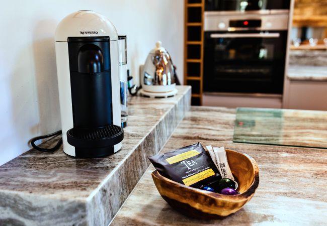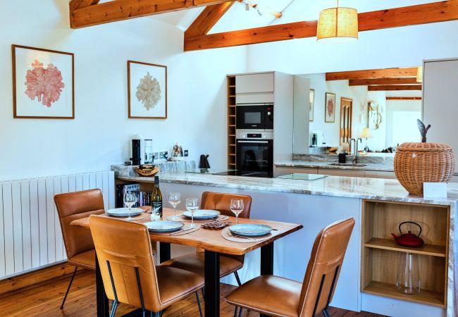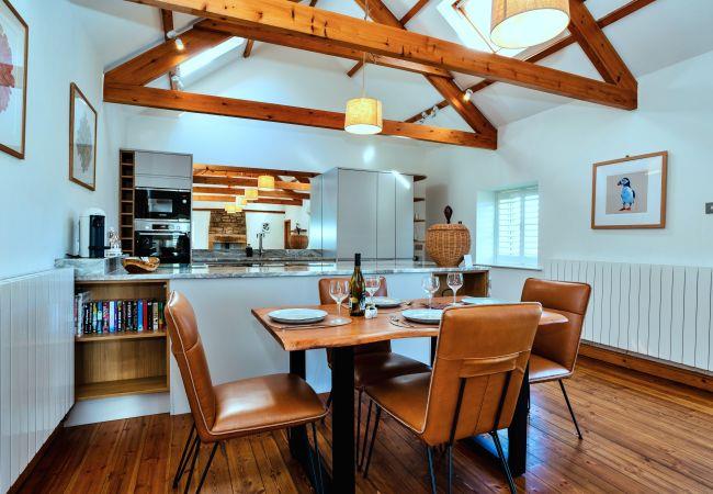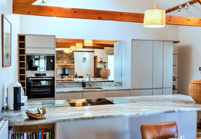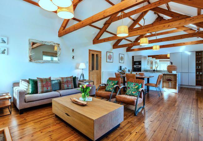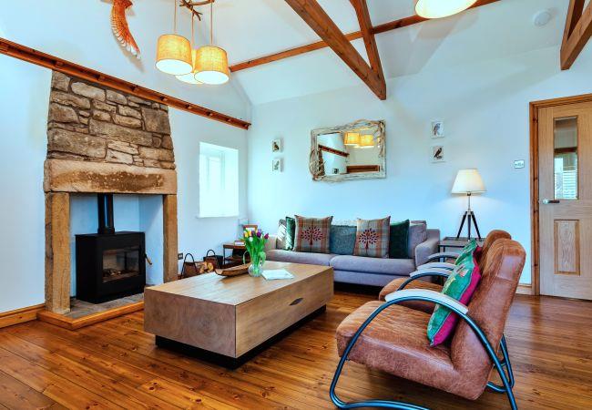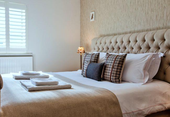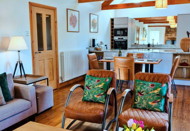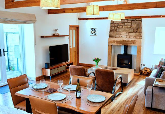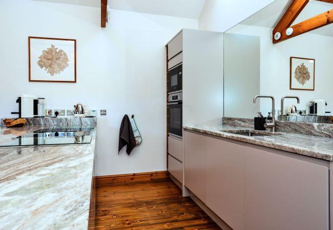 This single-level retreat is a haven of comfort, where every detail has been thoughtfully considered to create a truly memorable stay. Step inside to discover a beautifully appointed interior, with a spacious open-plan living area featuring a stylish seating space with a wood-burning stove (an initial supply of logs provided), a bespoke coffee table, and a state-of-the-art entertainment system, including a 55 Digital Smart TV and a Bang & Olufsen Bluetooth speaker. The dining area is set beneath soft lighting, perfect for relaxed meals, while the sleek kitchen is equipped with high-end appliances, a striking waterfall granite worktop, and handmade Danish crockery.