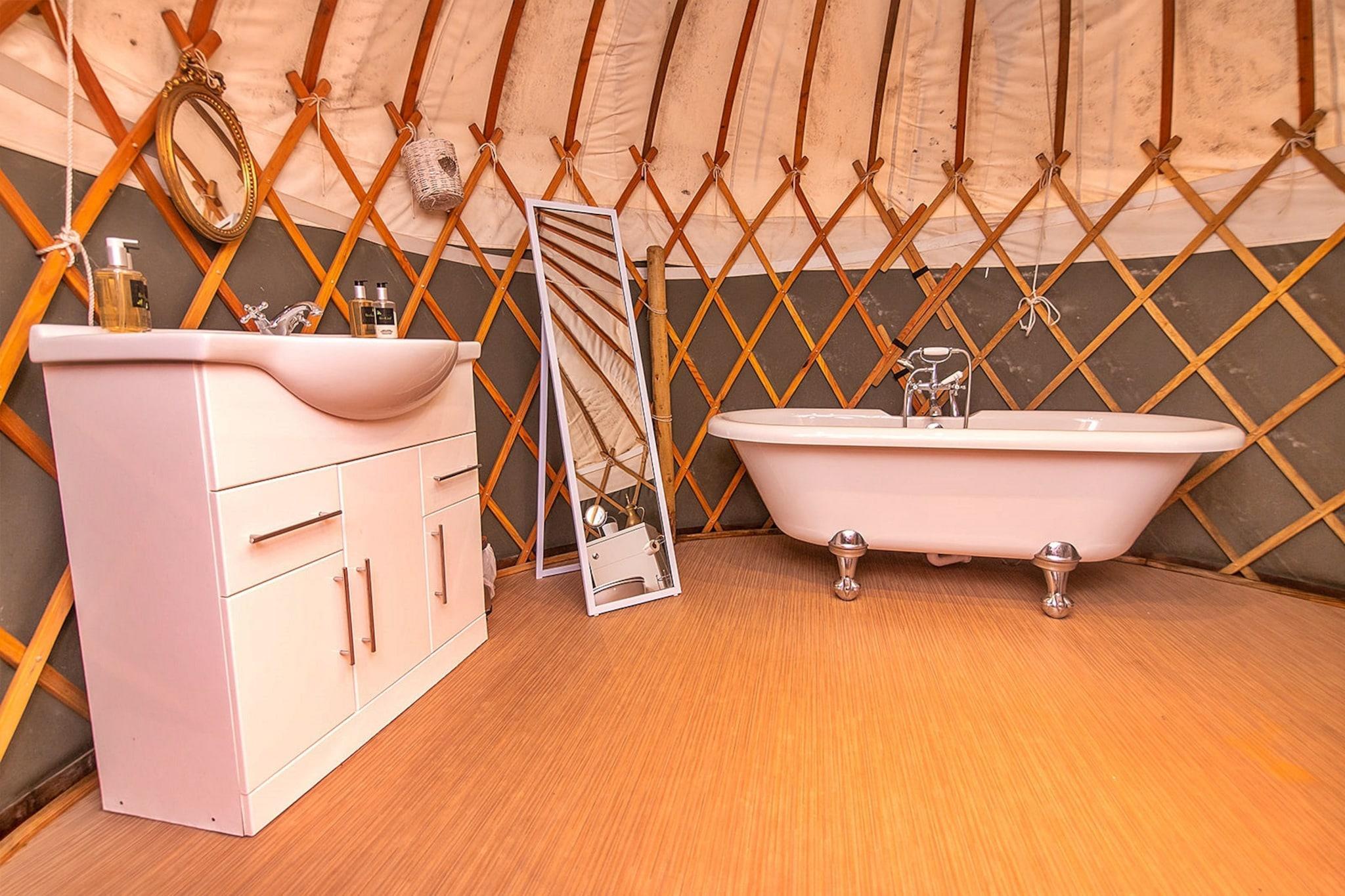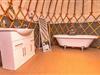 Eingebettet in einer atemberaubenden Ecke des Alexander House-Geländes bietet die Bramble Yurt einen idyllischen Rückzugsort mit atemberaubender Aussicht über Gleneagles und Ben Vorlich. Diese luxuriöse Jurte ist perfekt für Paare, die einen ruhigen Urlaub suchen. Sie verbindet natürliche Schönheit mit Komfort. Entspannen Sie sich in Ihrem privaten, holzbefeuerten Whirlpool unter dem Sternenhimmel, lauschen Sie den Geräuschen der Natur und genießen Sie die ruhige Landschaft, die Sie umgibt. Die Jurte verfügt über ein bequemes Kingsize-Bett, einen gemütlichen Holzofen und ein eigenes Badezimmer im modernen 12-Fuß-Design, das für einen romantischen und erholsamen Aufenthalt sorgt. Im Inneren bietet die Jurte eine gemütliche Sitzecke mit Sofa sowie grundlegende Küchenutensilien wie ein Induktionskochfeld mit zwei Kochplatten, einen Kühlschrank mit Gefrierfach und Grundutensilien – ideal für die Zubereitung einfacher Mahlzeiten. Bettwäsche und Handtücher sowie USB-Anschlüsse und Beleuchtung sind im Preis inbegriffen, um Ihren Komfort zu erhöhen. Für Mahlzeiten im Freien gibt es Sitzgelegenheiten für zwei Personen, einen Grill und einen Parkplatz für ein Fahrzeug. Bitte beachten Sie, dass der Zugang eine steile, lange Auffahrt erfordert und ein Auto unbedingt erforderlich ist. Tiefergelegte Fahrzeuge können die Fahrt vor allem bei winterlichen Bedingungen zu einer Herausforderung machen. Während WLAN aufgrund der abgelegenen Lage nicht verfügbar ist, sind die 4G-Signale in der Regel in allen Mobilfunknetzen stark, sodass Sie bei Bedarf in Verbindung bleiben können. Bereiten Sie sich unbedingt auf das Anzünden eines Feuers vor, wenn Sie es während Ihres Aufenthalts warm und gemütlich haben möchten. Diese bezaubernde Jurte verspricht ein wahrhaft magisches Erlebnis mit ständig wechselnden Landschaften und spektakulären Ausblicken, die Ihr Herz erobern werden. Ob romantisches Wochenende oder friedlicher Rückzugsort, Bramble Yurt bietet einen unvergesslichen Ausflug in die Natur.
