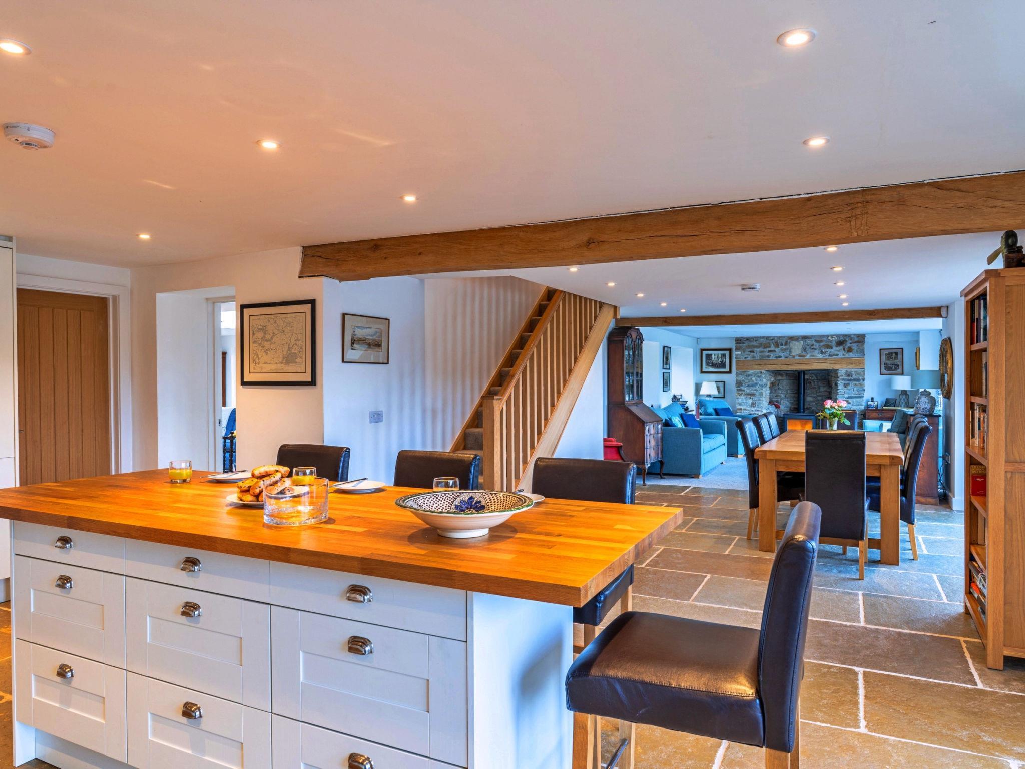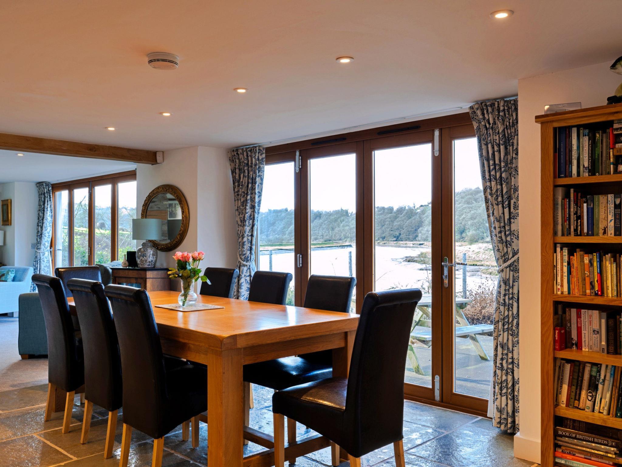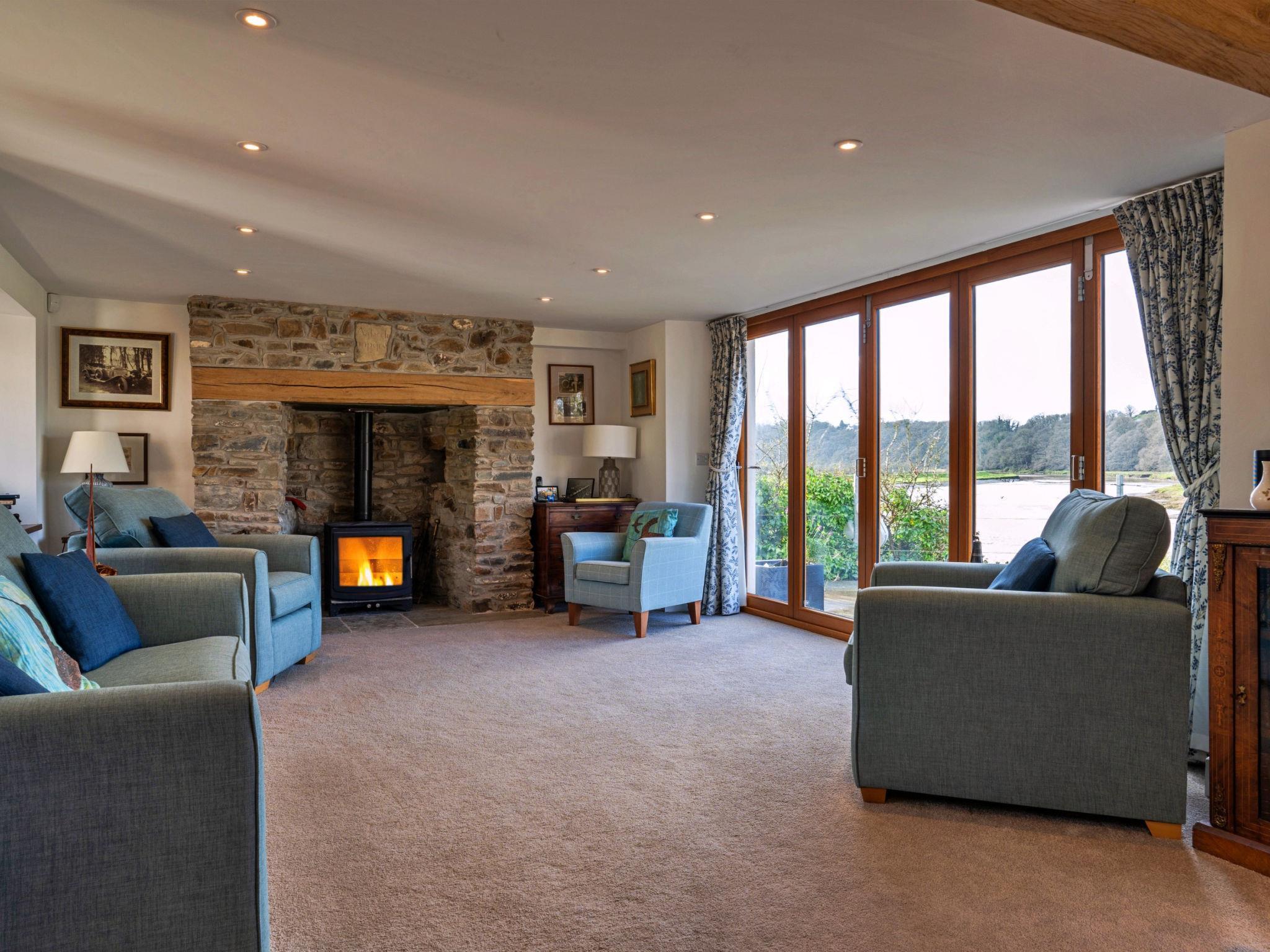 "Lower Netherdowns", 5-Zimmer-Haus 160 m2. Objekt geeignet für 8 Erwachsene. Wohnzimmer mit 1 Diwanbett, 1 Ausziehbett und offenem Kamin. 1 Zimmer mit 1 Doppeldiwanbett und 1 franz. Bett. 1 Zimmer mit 1 Doppeldiwanbett und 1 franz. Bett. 1 Zimmer mit 2 Betten. Spielzimmer. Küche (Backofen, Geschirrspüler, Toaster, Wasserkocher, Mikrowelle, Tiefkühler). Bad/WC, 3 Duschen/WC. Terrasse. Gartengrill. Sicht auf das Meer, den Garten und den Fluss. Zur Verfügung: Waschmaschine, Bügeleisen. Internet (WLAN, gratis). Parkplatz (4 Autos). Bitte beachten: Nichtraucher-Unterkunft.