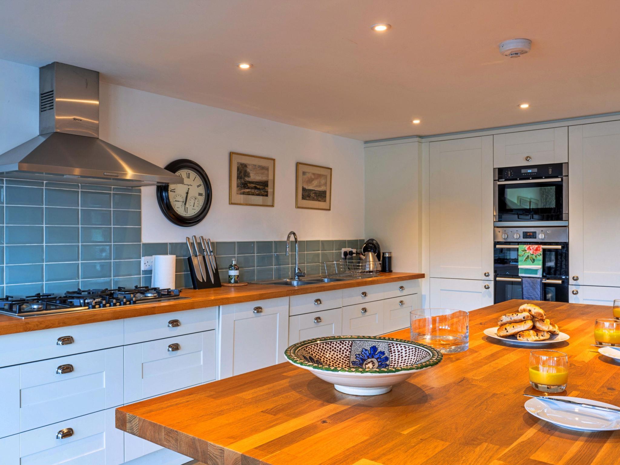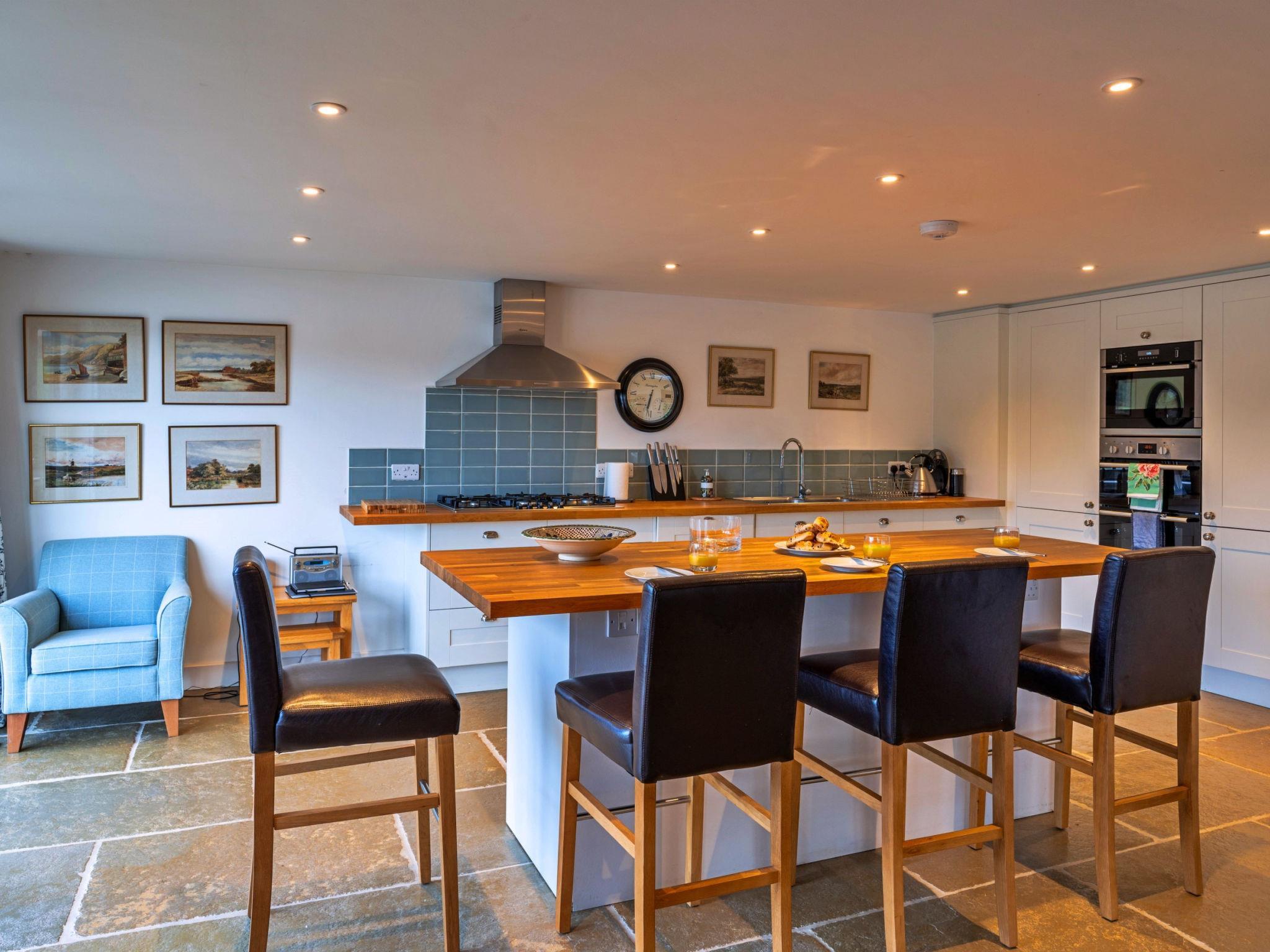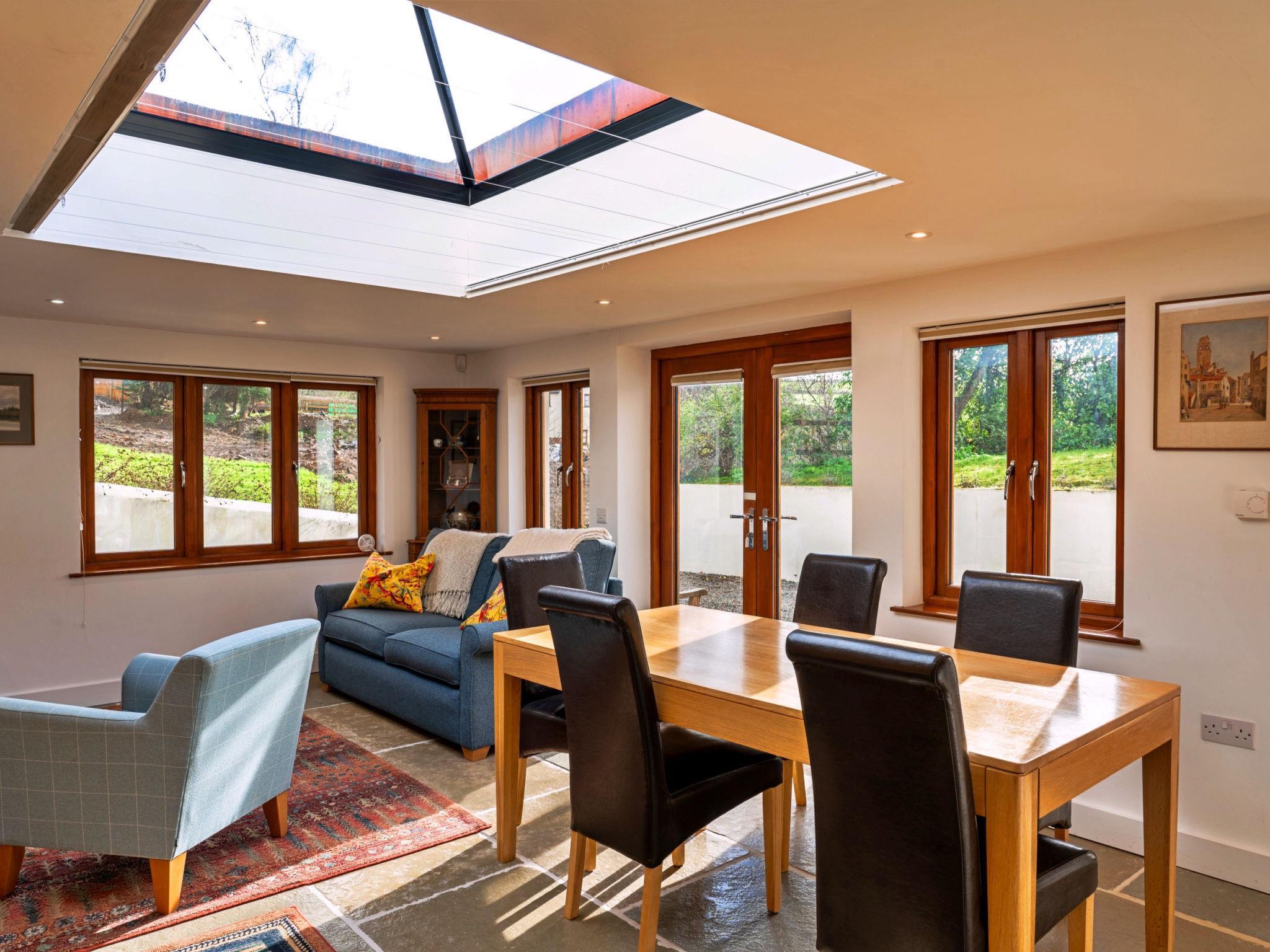 "Lower Netherdowns", 5-Zimmer-Haus 160 m2. Objekt geeignet für 8 Erwachsene. Wohnzimmer mit 1 Diwanbett, 1 Ausziehbett und offenem Kamin. 1 Zimmer mit 1 Doppeldiwanbett und 1 franz. Bett. 1 Zimmer mit 1 Doppeldiwanbett und 1 franz. Bett. 1 Zimmer mit 2 Betten. Spielzimmer. Küche (Backofen, Geschirrspüler, Toaster, Wasserkocher, Mikrowelle, Tiefkühler). Bad/WC, 3 Duschen/WC. Terrasse. Gartengrill. Sicht auf das Meer, den Garten und den Fluss. Zur Verfügung: Waschmaschine, Bügeleisen. Internet (WLAN, gratis). Parkplatz (4 Autos). Bitte beachten: Nichtraucher-Unterkunft.