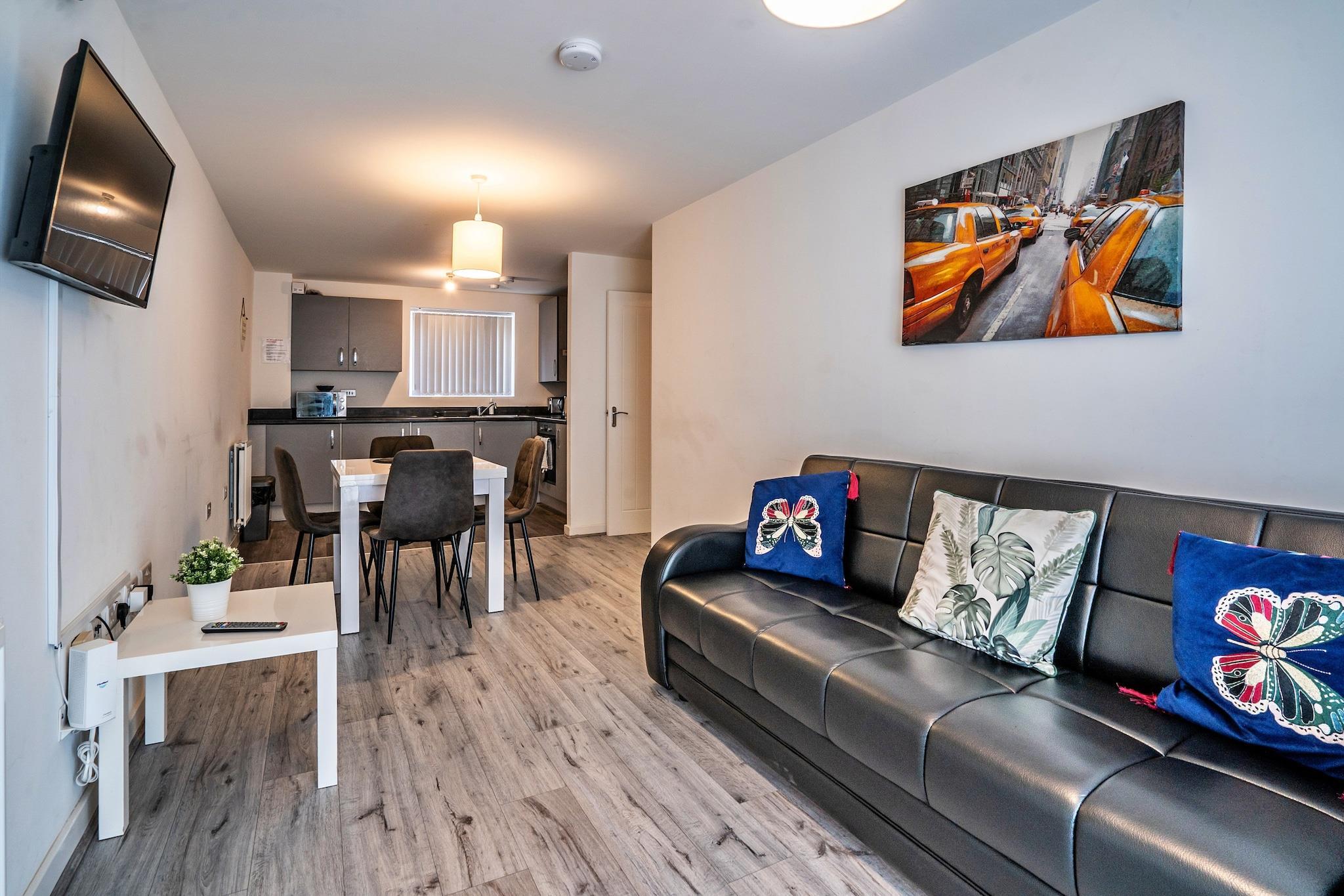 Willkommen in Ihrem stilvollen und komfortablen Rückzugsort im Erdgeschoss in Birmingham, perfekt konzipiert für Paare oder Geschäftsreisende, die einen erholsamen Kurzurlaub verbringen möchten. Dieser moderne Raum verfügt über einen eleganten Wohnbereich mit einem weichen schwarzen Ledersofa und einem an der Wand montierten Flachbildfernseher und bietet den idealen Rahmen zum Entspannen nach einem anstrengenden Tag. Der Essbereich mit einem schicken Tisch und Stühlen ist ein wunderbarer Ort, um Mahlzeiten zu genießen oder der Arbeit nachzugehen. Die voll ausgestattete Küche verfügt über ausreichend Stauraum und alle notwendigen Utensilien für ein problemloses Kocherlebnis, sodass Sie Ihre Lieblingsgerichte problemlos zubereiten können. Die Unterkunft verfügt über ein gemütliches Schlafzimmer mit Doppelbett, während das Badezimmer für Ihren Komfort mit einer Badewanne mit Kopfbrause ausgestattet ist. Dieser Rückzugsort liegt nicht weit vom Zentrum von Birmingham entfernt und ist der perfekte Ausgangspunkt, um die pulsierenden Attraktionen der Stadt zu erkunden. Entdecken Sie fantastische Einkaufsmöglichkeiten in der Stierkampfarena, tauchen Sie ein in die Kultur des Birmingham Museum & Art Gallery oder tauchen Sie ein in das lebhafte Nachtleben und die Restaurants in der Nähe. Da sich alles direkt vor Ihrer Haustür befindet, können Sie während Ihres Aufenthalts das Beste von Birmingham genießen.