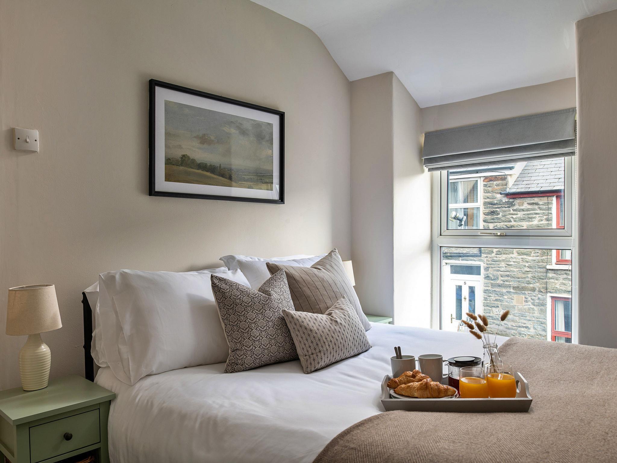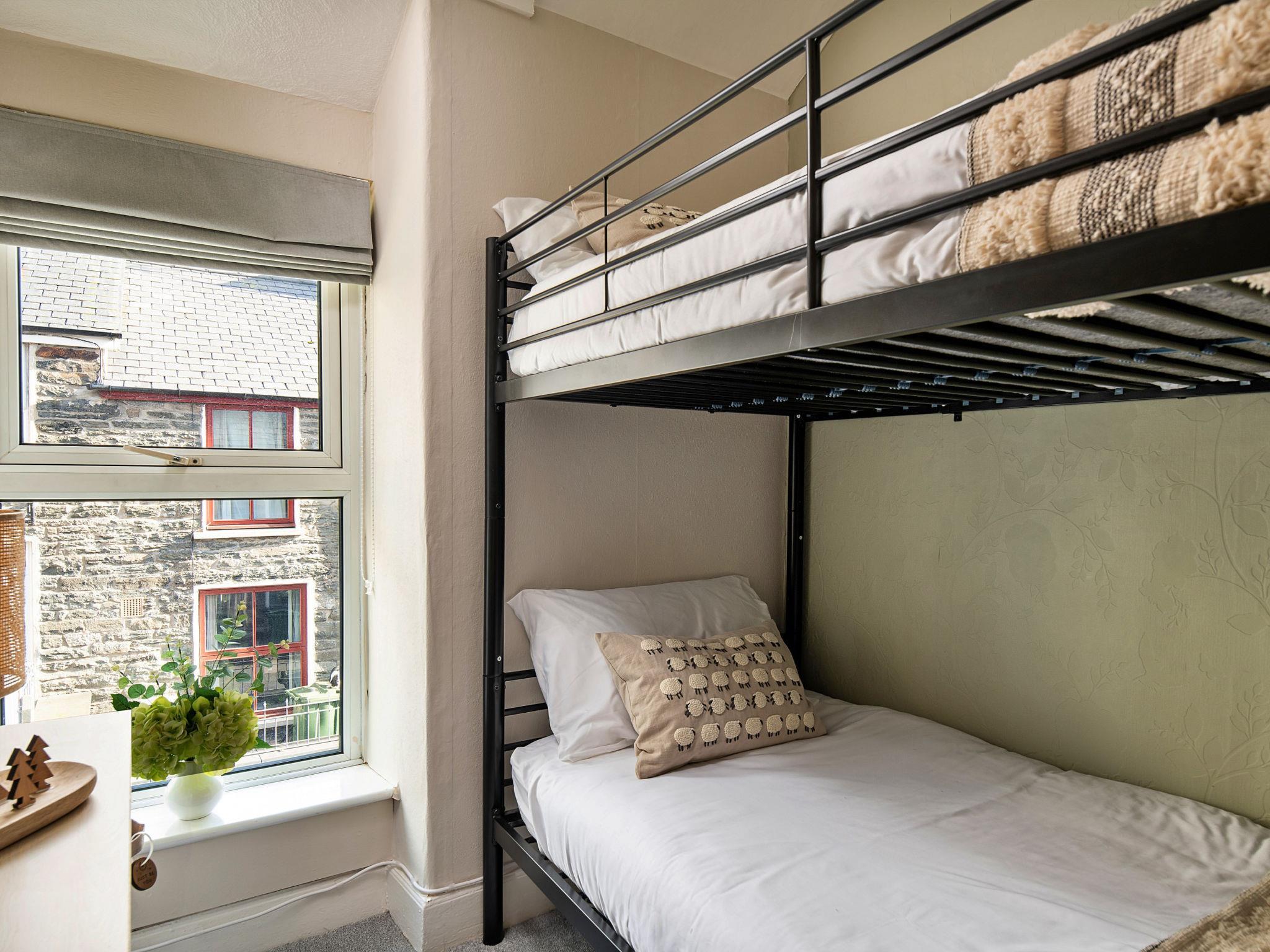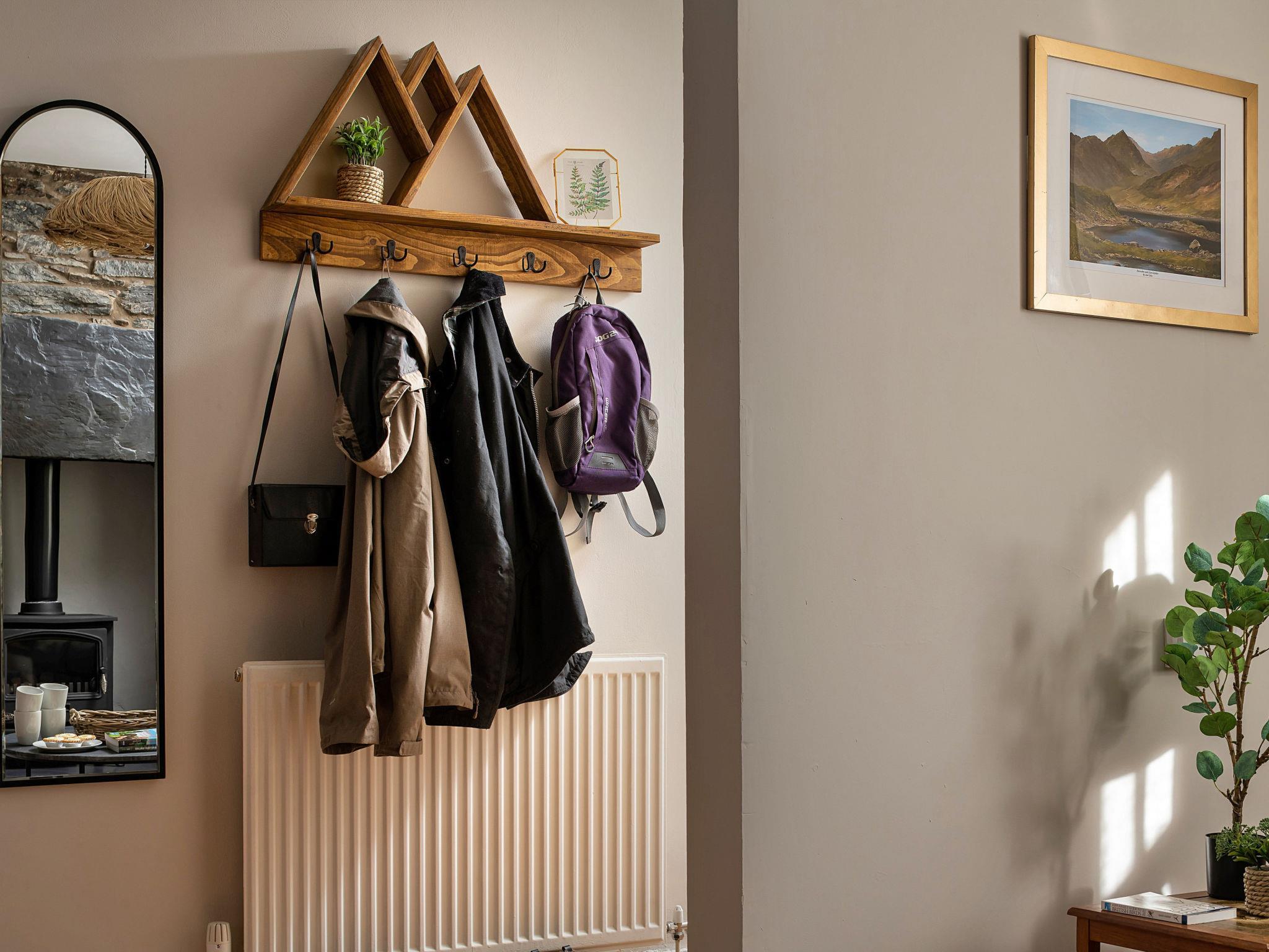 "Bwthyn Llechi (Slate Cottage)", 4-Zimmer-Haus 180 m2. Objekt geeignet für 6 Erwachsene. Wohnzimmer. 1 Zimmer mit 1 Doppelbett. 1 Zimmer mit 1 Doppelbett. 1 Zimmer mit 1 x 2 Etagenbetten. Küche (Backofen, Toaster, Wasserkocher, Mikrowelle, Tiefkühler, elektrische Kaffeemaschine). Bad/WC. Terrasse. Sicht auf die Berge. Zur Verfügung: Bügeleisen. Internet (WLAN, gratis). Bitte beachten: Nichtraucher-Unterkunft. 2 Haustiere/Hunde erlaubt.