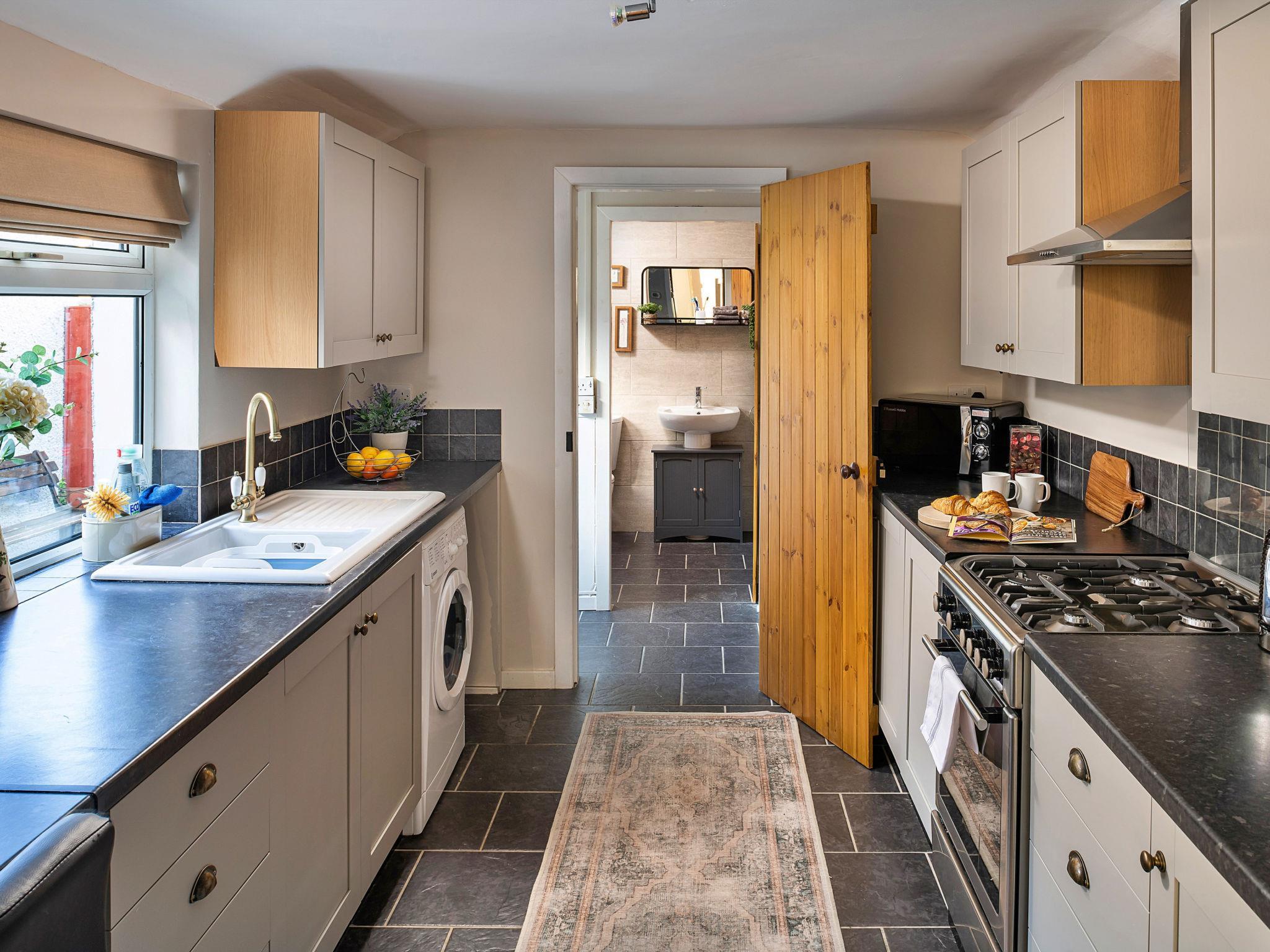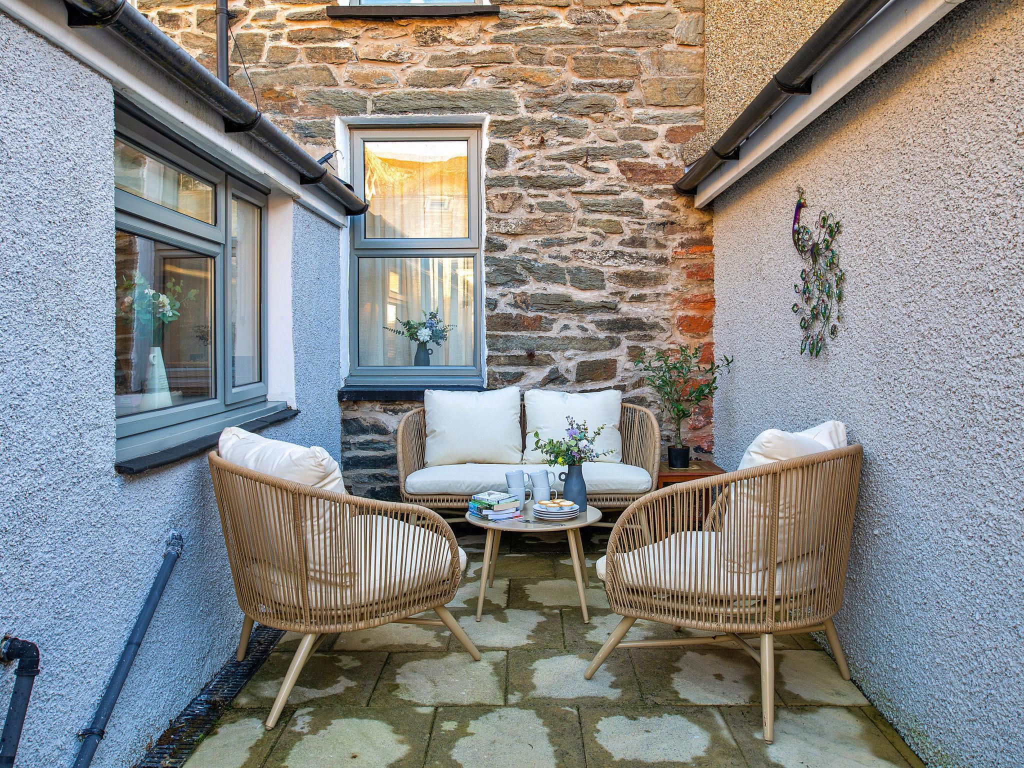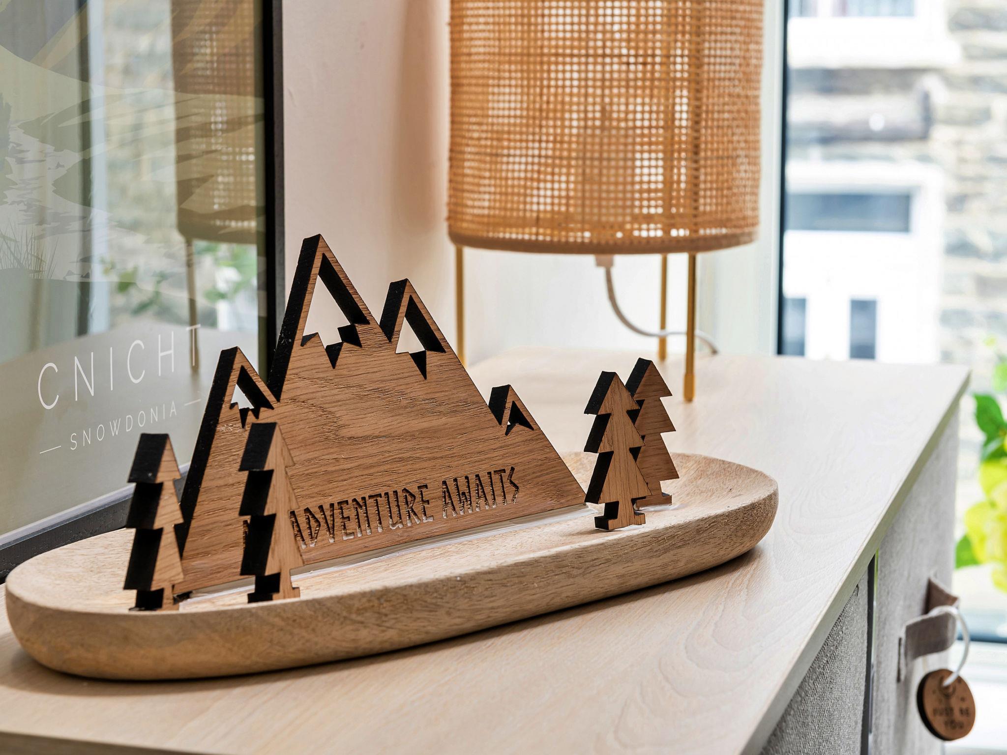 "Bwthyn Llechi (Slate Cottage)", 4-Zimmer-Haus 180 m2. Objekt geeignet für 6 Erwachsene. Wohnzimmer. 1 Zimmer mit 1 Doppelbett. 1 Zimmer mit 1 Doppelbett. 1 Zimmer mit 1 x 2 Etagenbetten. Küche (Backofen, Toaster, Wasserkocher, Mikrowelle, Tiefkühler, elektrische Kaffeemaschine). Bad/WC. Terrasse. Sicht auf die Berge. Zur Verfügung: Bügeleisen. Internet (WLAN, gratis). Bitte beachten: Nichtraucher-Unterkunft. 2 Haustiere/Hunde erlaubt.