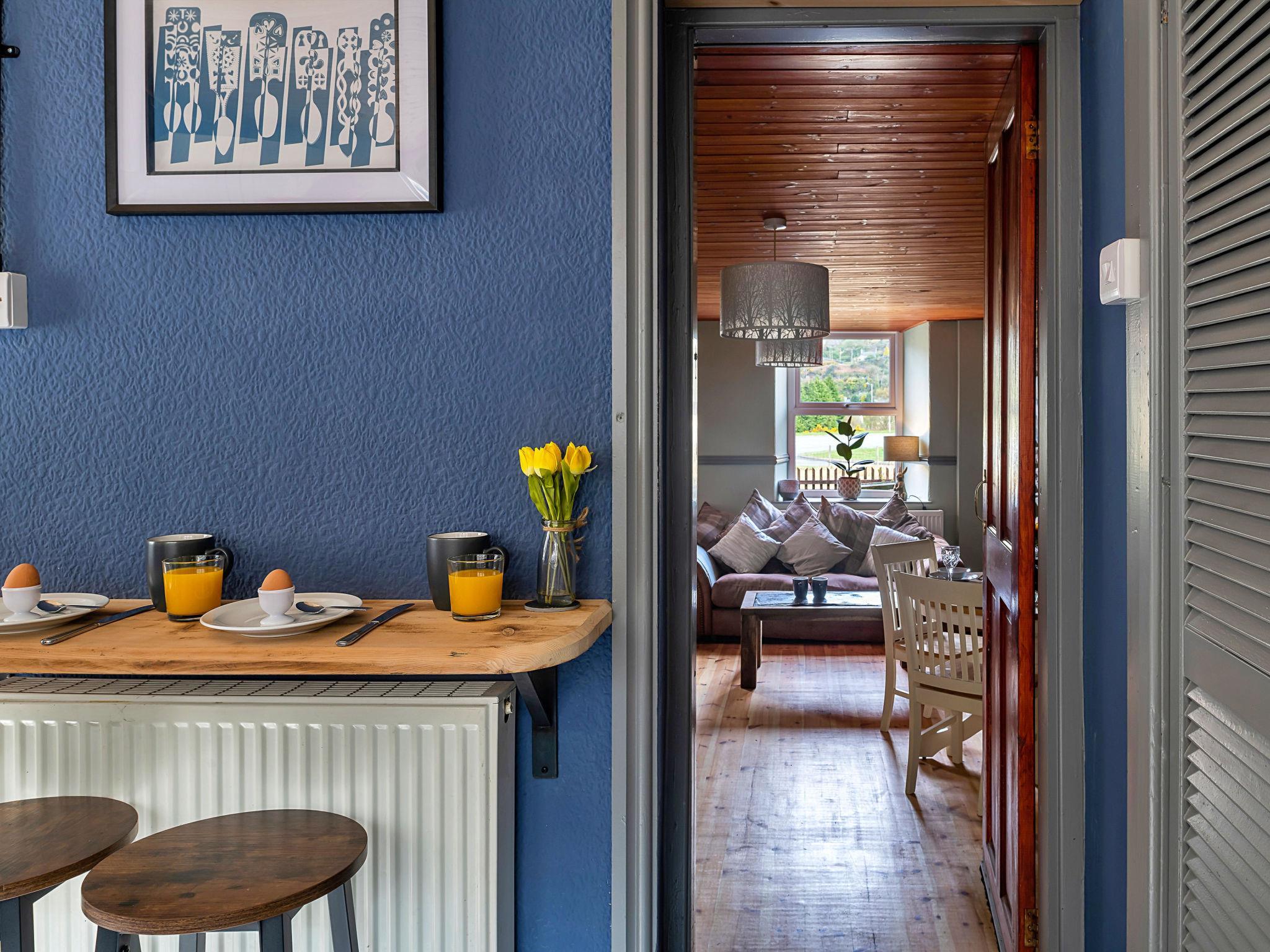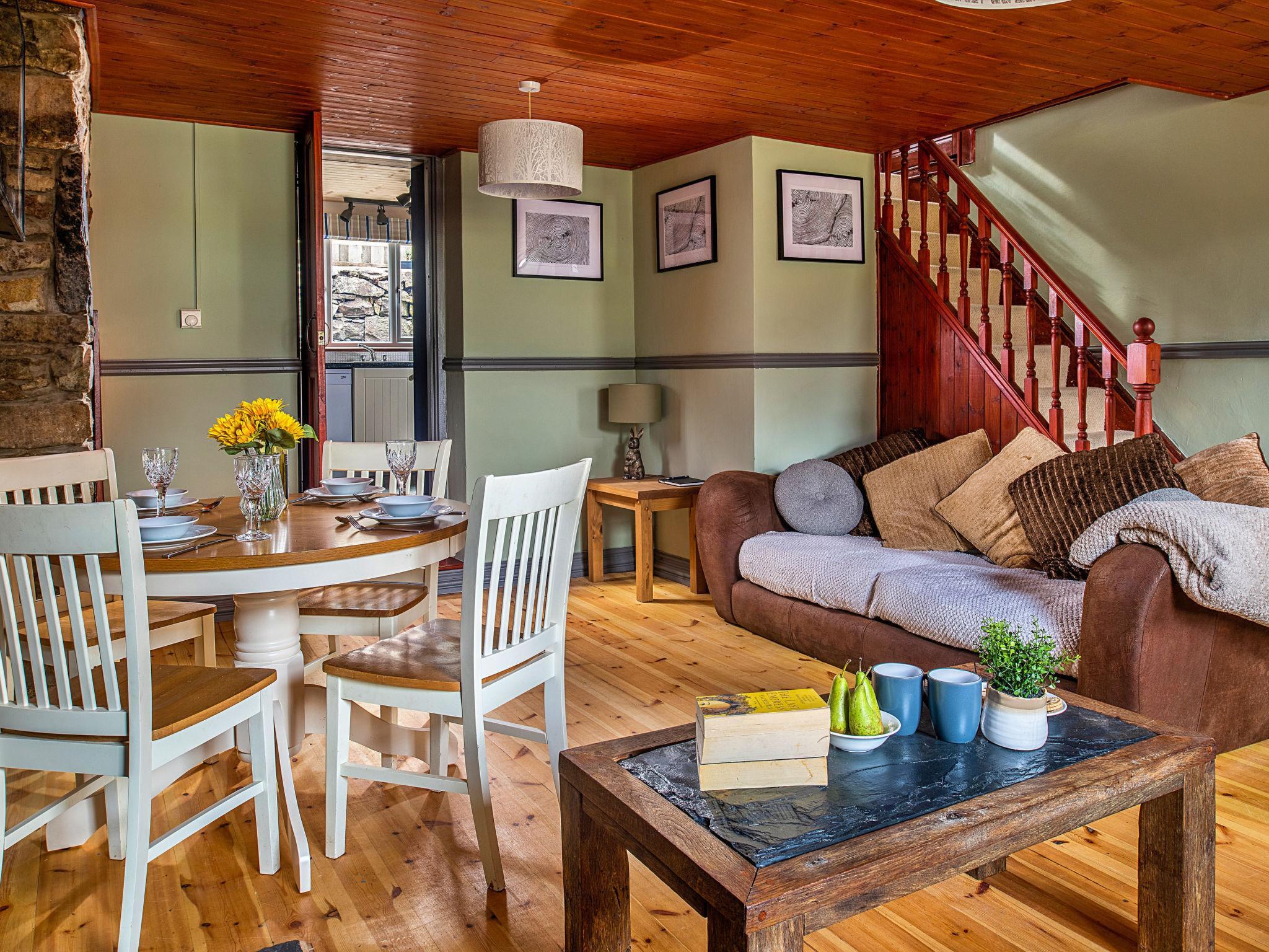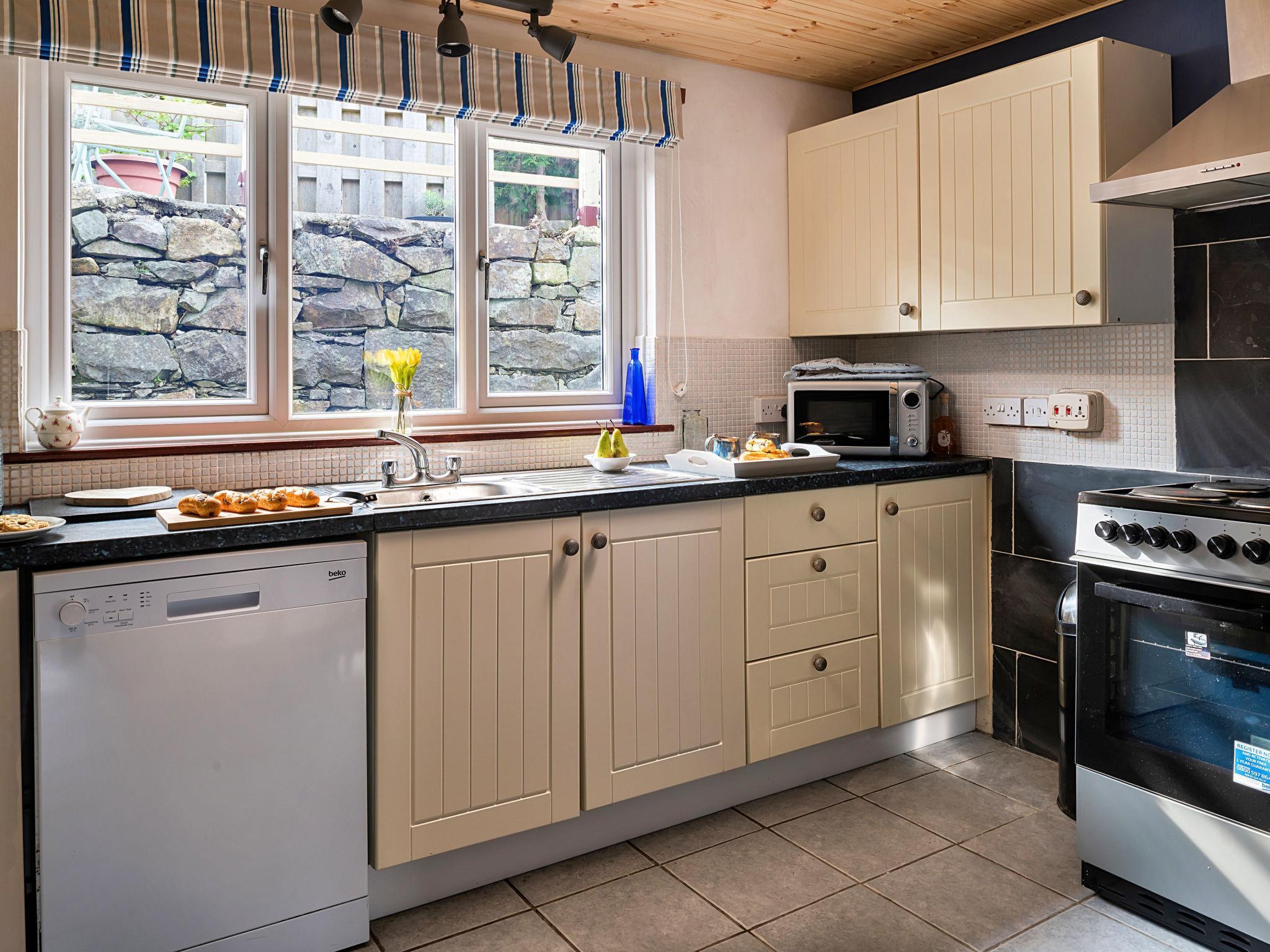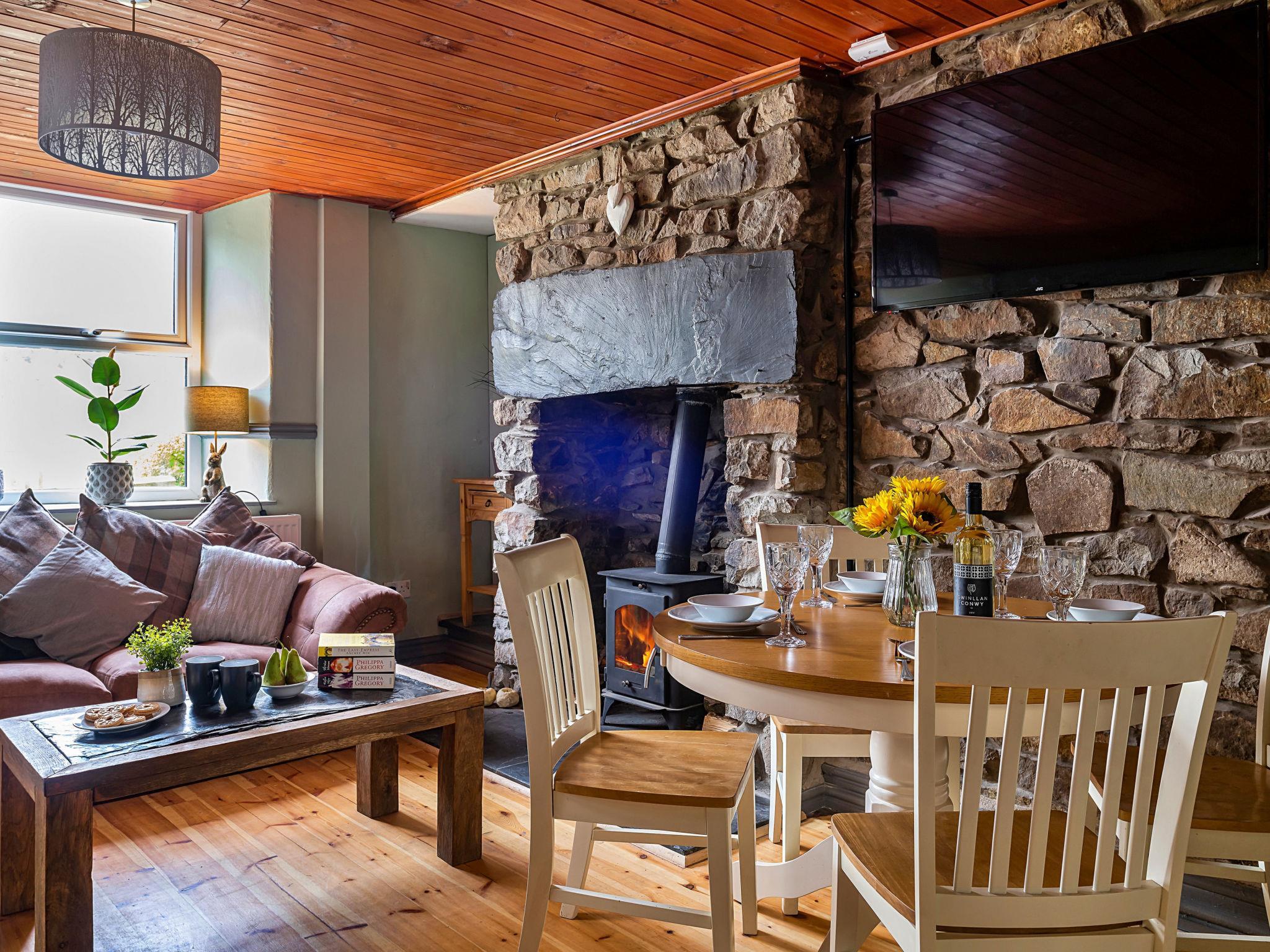 "Maes Neuadd", 3-Zimmer-Haus 120 m2. Objekt geeignet für 4 Erwachsene. Wohnzimmer mit offenem Kamin. 1 Zimmer mit 1 Doppelbett. 1 Zimmer mit 1 x 2 Etagenbetten. Küche (Backofen, Geschirrspüler, Toaster, Wasserkocher, Mikrowelle, Tiefkühler). Dusche/WC. Sicht auf die Berge und den Garten. Zur Verfügung: Waschmaschine, Bügeleisen. Internet (WLAN, gratis). Parkplatz (2 Autos). Bitte beachten: Nichtraucher-Unterkunft.