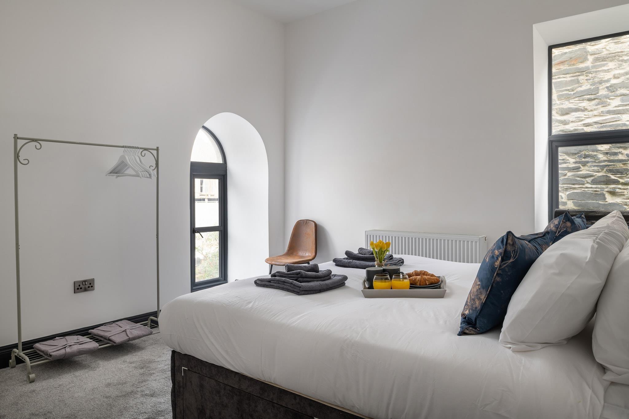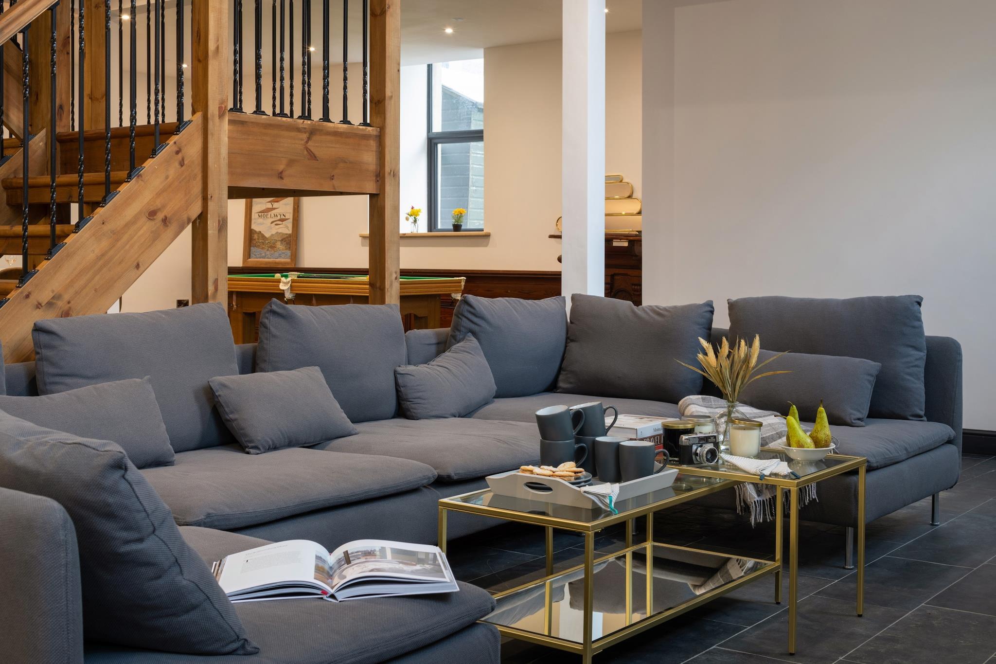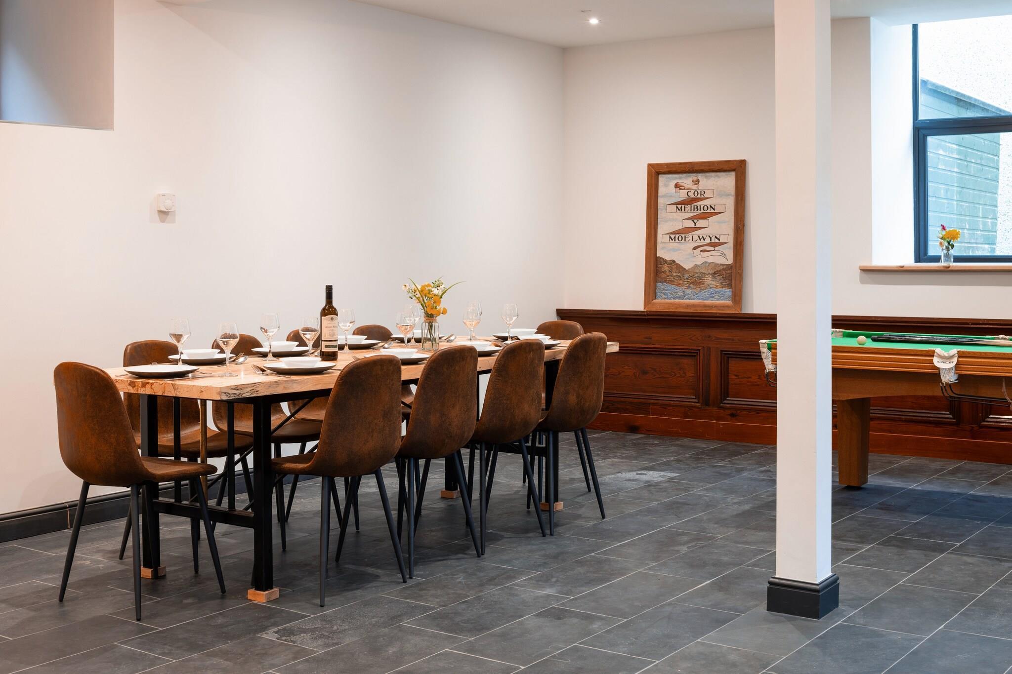 Diese wunderschön renovierte Kapelle bietet einen einzigartigen und geräumigen Rückzugsort für Familien oder Gruppen mit bis zu 12 Gästen. Mit fünf Schlafzimmern, darunter vier Super-Kingsize-Zimmern und einem King-Twin-Zimmer, bietet es viel Platz für Entspannung und Komfort. Der offene Wohnbereich verfügt über hohe Decken, modernes Design und eine voll ausgestattete Küche, die sich perfekt für die Zubereitung von Mahlzeiten für besondere Familientreffen eignet. Das Wohnzimmer verfügt über eine gemütliche Sitzecke mit einem großen Ecksofa und einem Smart-TV und ist somit ideal zum Entspannen nach einem erlebnisreichen Tag voller Entdeckungen. Dieses Anwesen liegt in der historischen Stadt Blaenau Ffestiniog, die einst ein Schieferabbauzentrum war, und ist von atemberaubenden Berglandschaften, Seen und Wander- oder Mountainbikerouten umgeben. Antur Stiniog, ein beliebtes Ziel mit 14 Mountainbike-Strecken, liegt ganz in der Nähe. Die Stadt selbst bietet eine Auswahl an unabhängigen Geschäften, Cafés und Pubs, in denen Gäste in die lokale Kultur eintauchen können. Das Anwesen ist mit modernen Annehmlichkeiten ausgestattet, darunter WLAN, Geschirrspüler, Waschmaschine und Billardtisch für zusätzliche Unterhaltung. Es verfügt außerdem über Parkplätze für zwei Fahrzeuge und ist familienfreundlich, da für die jüngeren Gäste ein Kinderbett, ein Hochstuhl und Treppengitter zur Verfügung stehen. Mit einem kleinen Sitzbereich im Freien ist es der perfekte Ausgangspunkt zum Entspannen und Erholen, nachdem Sie die wunderschöne Umgebung erkundet haben.