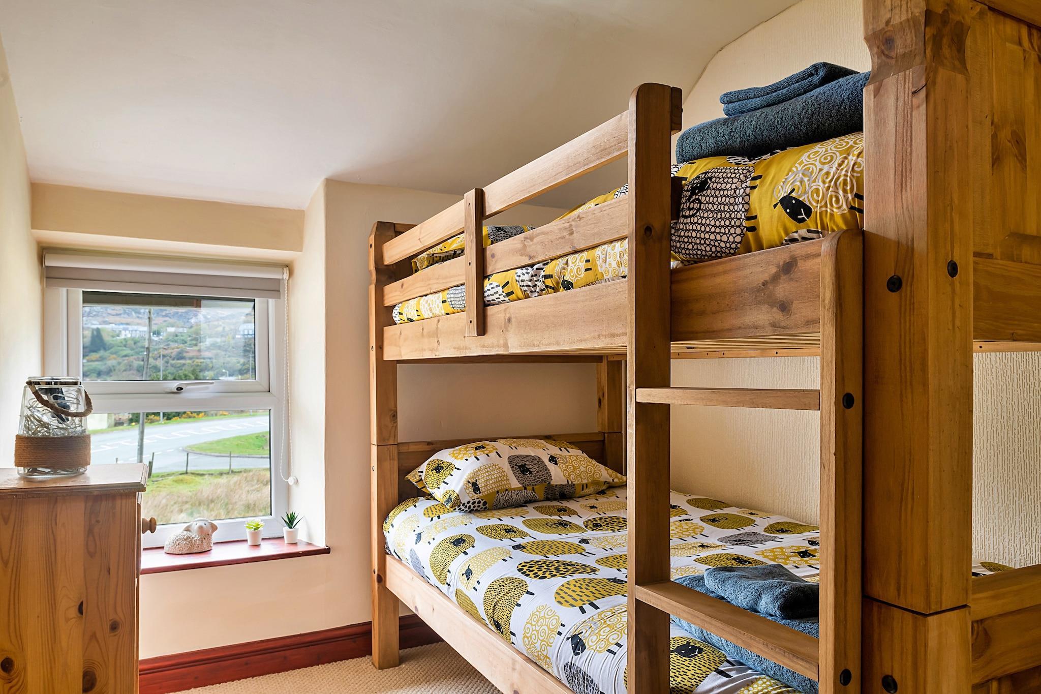 Entfliehen Sie ins Herz von Snowdonia und tauchen Sie ein in den Charme eines wunderschön restaurierten Cottages mit zwei Schlafzimmern in der malerischen Stadt Blaenau Ffestiniog. Dieser entzückende Rückzugsort präsentiert traditionelle walisische Architektur mit freiliegenden Steinwänden und einem gemütlichen Schieferkamin, der zu Wärme und Entspannung einlädt. Das Cottage eignet sich perfekt für Paare, Freunde oder kleine Familien und bietet einen atemberaubenden Blick auf die umliegenden Berge und die Landschaft und eine malerische Kulisse für Ihren Urlaub. Genießen Sie ruhige Morgen im privaten Garten, wo Sie einen Kaffee trinken, die heimische Tierwelt beobachten und die ruhige Atmosphäre genießen können. Im Inneren verfügt das Cottage über ein geräumiges und einladendes Wohnzimmer, das mit bequemen Sofas, einem Holzofen und einem Flachbildfernseher mit kostenfreiem WLAN ausgestattet ist. Die gut ausgestattete Küche ermöglicht kulinarische Abenteuer, indem Sie Mahlzeiten zubereiten und diese am einladenden Esstisch teilen. Im Obergeschoss finden Sie zwei gemütliche Schlafzimmer – eines mit einem bequemen Doppelbett und das andere mit Etagenbetten –, die für einen erholsamen Schlaf für alle sorgen. Das moderne Badezimmer bietet zusätzlichen Komfort mit einer erfrischenden Dusche und einem beheizten Handtuchhalter für kühle Abende. Dieses charmante Cottage liegt perfekt für die Erkundung der Naturwunder des Snowdonia-Nationalparks und dient als Tor zum Abenteuer. Blaenau Ffestiniog ist ein Zentrum für Outdoor-Aktivitäten, von Wandern und Mountainbiken bis hin zu den faszinierenden unterirdischen Touren der Llechwedd Slate Caverns. Mit einer Reihe lokaler Cafés, Restaurants und Pubs, die köstliche walisische Küche servieren, finden Sie zahlreiche Möglichkeiten, nach einem erlebnisreichen Tag traditionelle Aromen zu genießen. Egal, ob Sie durch die atemberaubende Landschaft wandern oder einfach im Cottage entspannen, dieser bezaubernde Rückzugsort verspricht ein unvergessliches Erlebnis in einer der faszinierendsten Regionen von Wales.