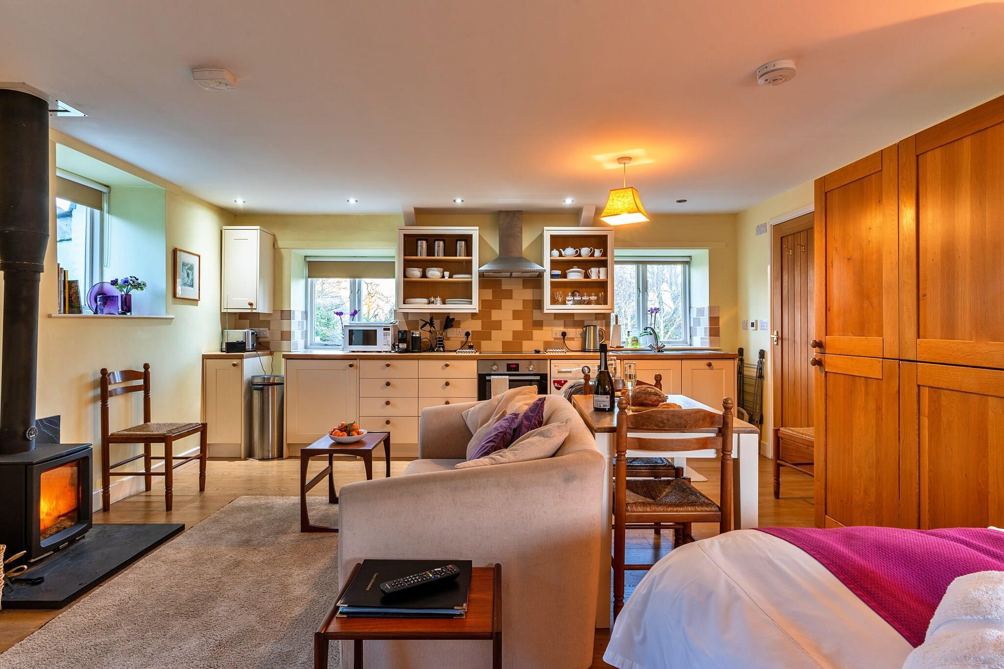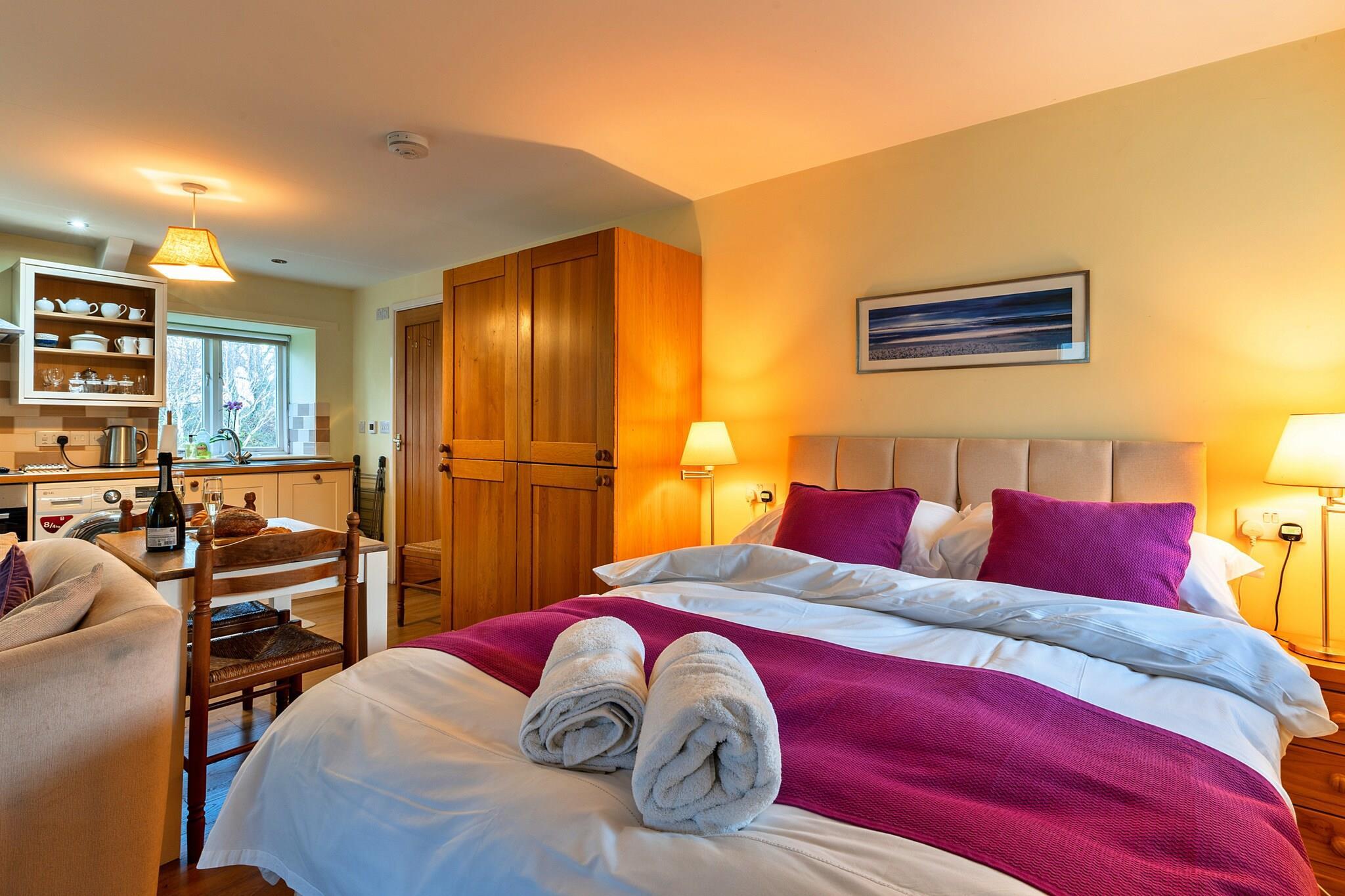 Dieses charmante und gemütliche Studio liegt inmitten der ruhigen Landschaft Cornwalls und eignet sich perfekt für einen romantischen Kurzurlaub. Es bietet Platz für zwei Gäste und verfügt über ein Doppelbett im offenen Grundriss sowie Fußbodenheizung für Komfort. Das Studio verfügt außerdem über einen Holzofen für gemütliche Abende und eine voll ausgestattete Küche mit Mikrowelle, Kühl-/Gefrierschrank und Essbereich. Ein eigenes Badezimmer mit Dusche, WC und Waschbecken sowie WLAN und ein Smart-TV sorgen für Unterhaltung. Genießen Sie die Ruhe der Umgebung mit einem privaten Sitzbereich im Freien, in dem Sie entspannen und die lokale Tierwelt beobachten können. Dieses Ferienhaus liegt in der Nähe des malerischen Dorfes Boscastle und bietet Zugang zu einer Vielzahl lokaler Sehenswürdigkeiten. Innerhalb einer 10-minütigen Fahrt können Sie Tintagel Castle besuchen, das reich an Geschichte und Legenden ist. Auch die atemberaubende Küste Cornwalls ist leicht zu erreichen und wunderschöne Strände wie Port Isaac, Polzeath und Padstow sind nur eine kurze Autofahrt entfernt. Die Gegend ist ideal für Wanderbegeisterte, da sich Abschnitte des berühmten Küstenwegs in der Nähe befinden und traditionelle Dörfer mit einer Vielzahl von Cafés, Pubs und Restaurants zu erkunden sind. Neben der gut ausgestatteten Küche bietet das Studio einen komfortablen, gut eingerichteten Wohnraum. Das private Badezimmer und die Wäschemöglichkeiten, darunter eine Waschmaschine/ein Trockner, sorgen für Komfort während Ihres Aufenthalts. Bettwäsche, Handtücher, Heizung und Internetzugang sind im Preis inbegriffen. Den Gästen stehen private Parkplätze abseits der Straße zur Verfügung. Die Unterkunft bietet außerdem ein köstliches Willkommensgeschenk mit hausgemachten Scones, Marmelade und Clotted Cream, was sie zu einem perfekten Ort zum Entspannen und Erholen macht.