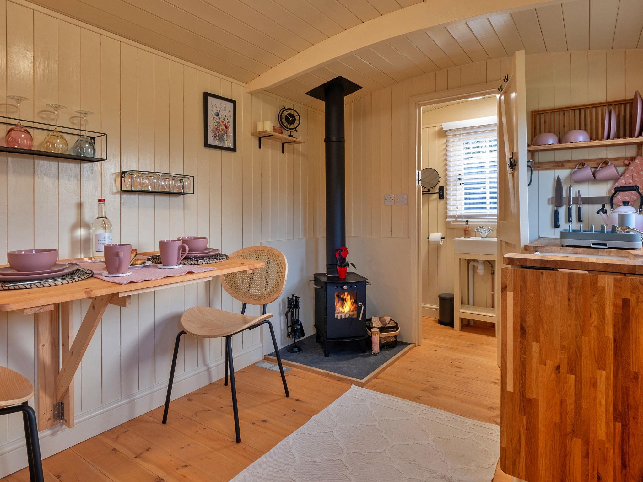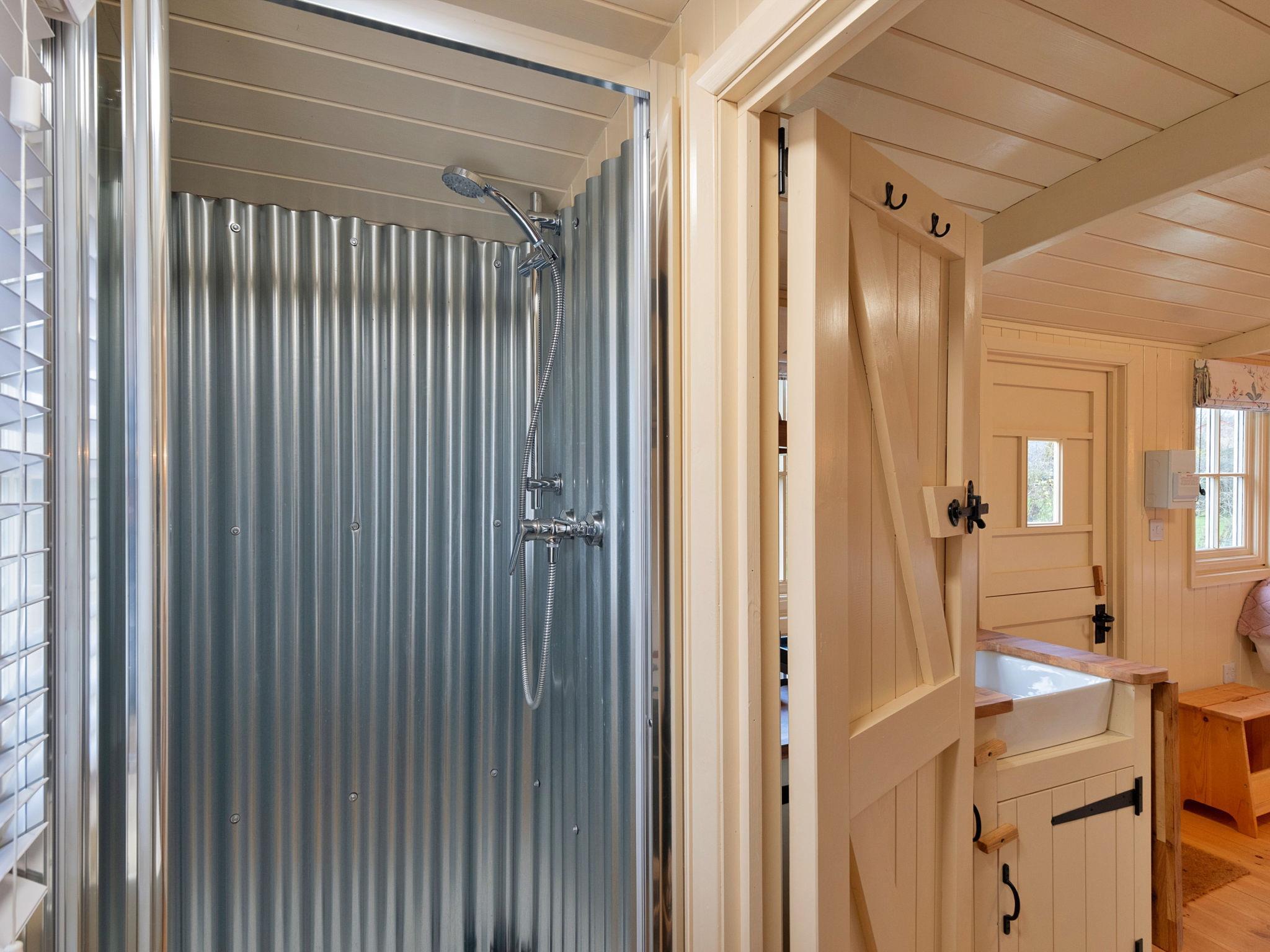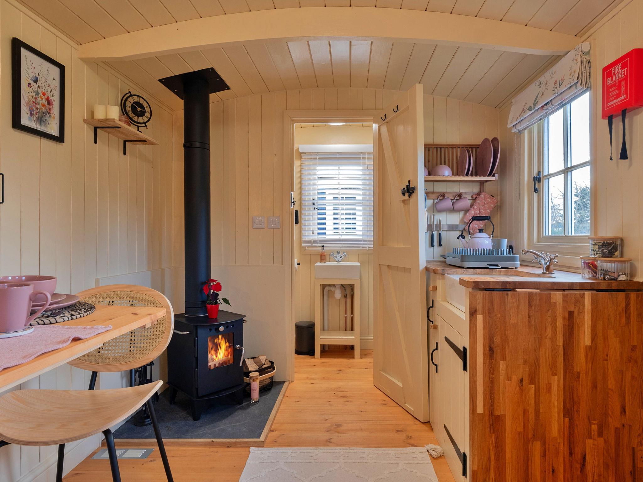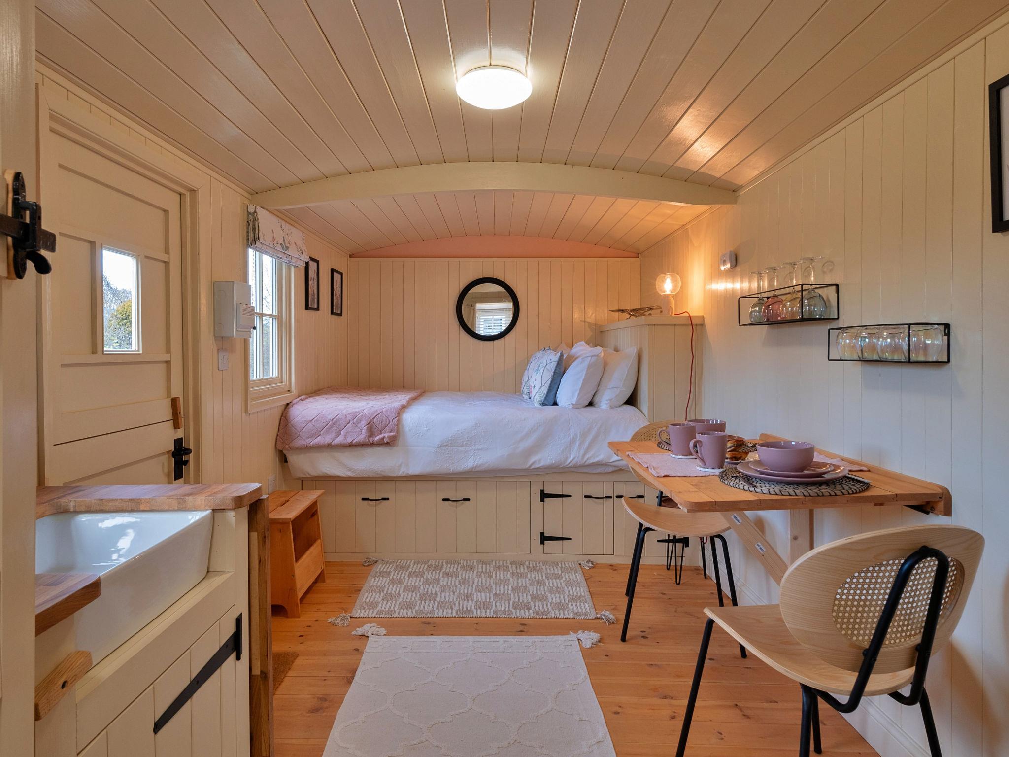 "The Flower Hut", 2-Zimmer-Chalet 20 m2. Objekt geeignet für 2 Erwachsene. Wohnzimmer mit offenem Kamin. 1 Zimmer mit 1 Doppelbett. Kleine Küche (Backofen, Wasserkocher, Mikrowelle). Dusche/WC. Zur Verfügung: Internet (WLAN, gratis). Parkplatz (1 Auto). Bitte beachten: Nichtraucher-Unterkunft. 1 Haustier/Hund erlaubt. Rauchmelder.