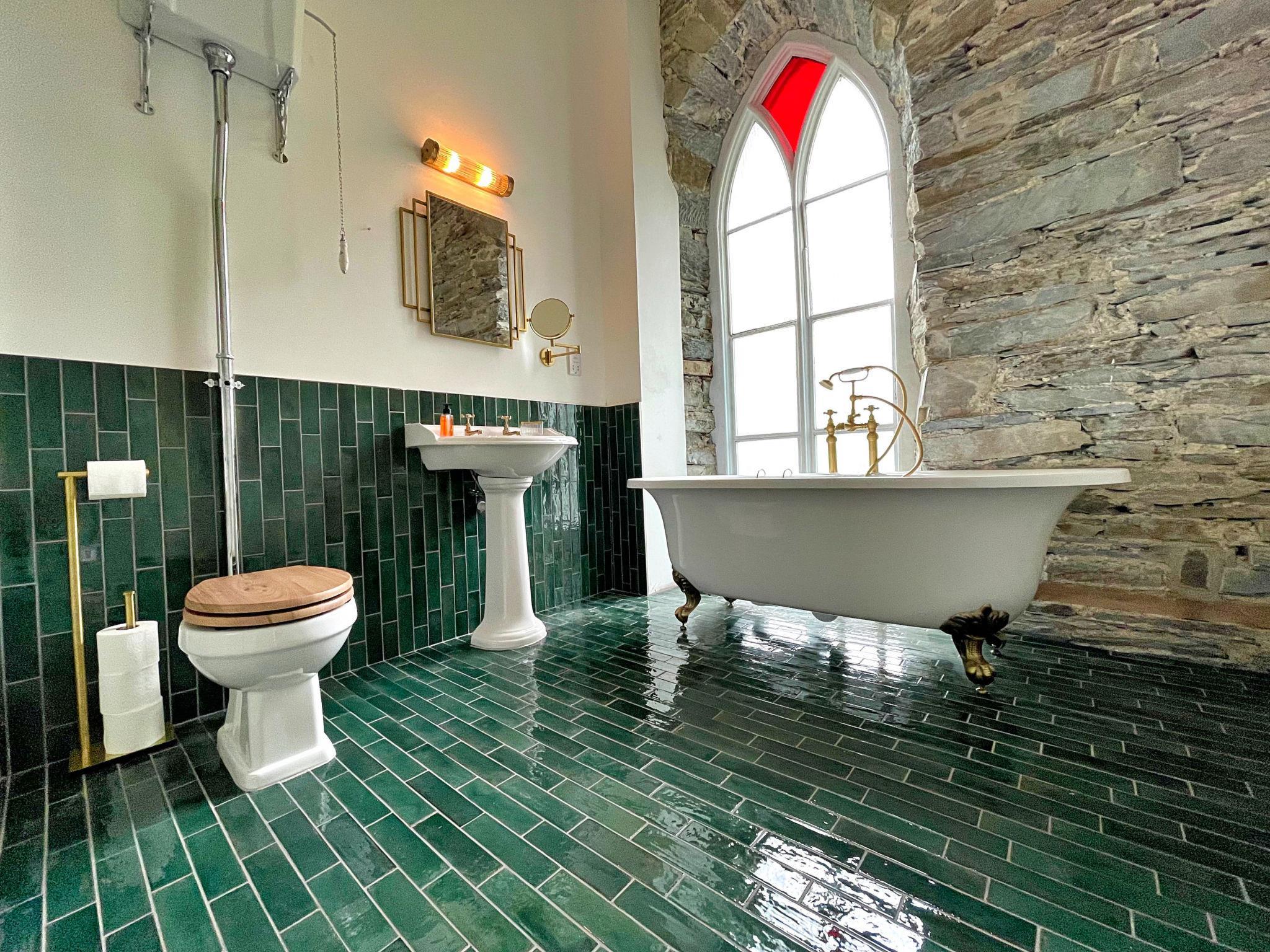 "The Old Wesleyan Chapel", 6-Zimmer-Haus 250 m2. Objekt geeignet für 12 Erwachsene. Wohnzimmer mit offenem Kamin und TV. 1 Zimmer mit 1 franz. Bett und TV. 1 Zimmer mit 1 franz. Bett. 1 Zimmer mit 1 franz. Bett. 1 Zimmer mit 1 Doppelbett. 1 Zimmer mit 2 x 2 Etagenbetten. Küche (Backofen, Toaster, Wasserkocher, Mikrowelle, Tiefkühler). 2 Bäder/WC, Dusche/WC. Sicht auf die Berge und den Garten. Zur Verfügung: Waschmaschine, Bügeleisen. Internet (WLAN, gratis). Parkplatz (5 Autos). Bitte beachten: Nichtraucher-Unterkunft. 2 Haustiere/Hunde erlaubt. Rauchmelder.