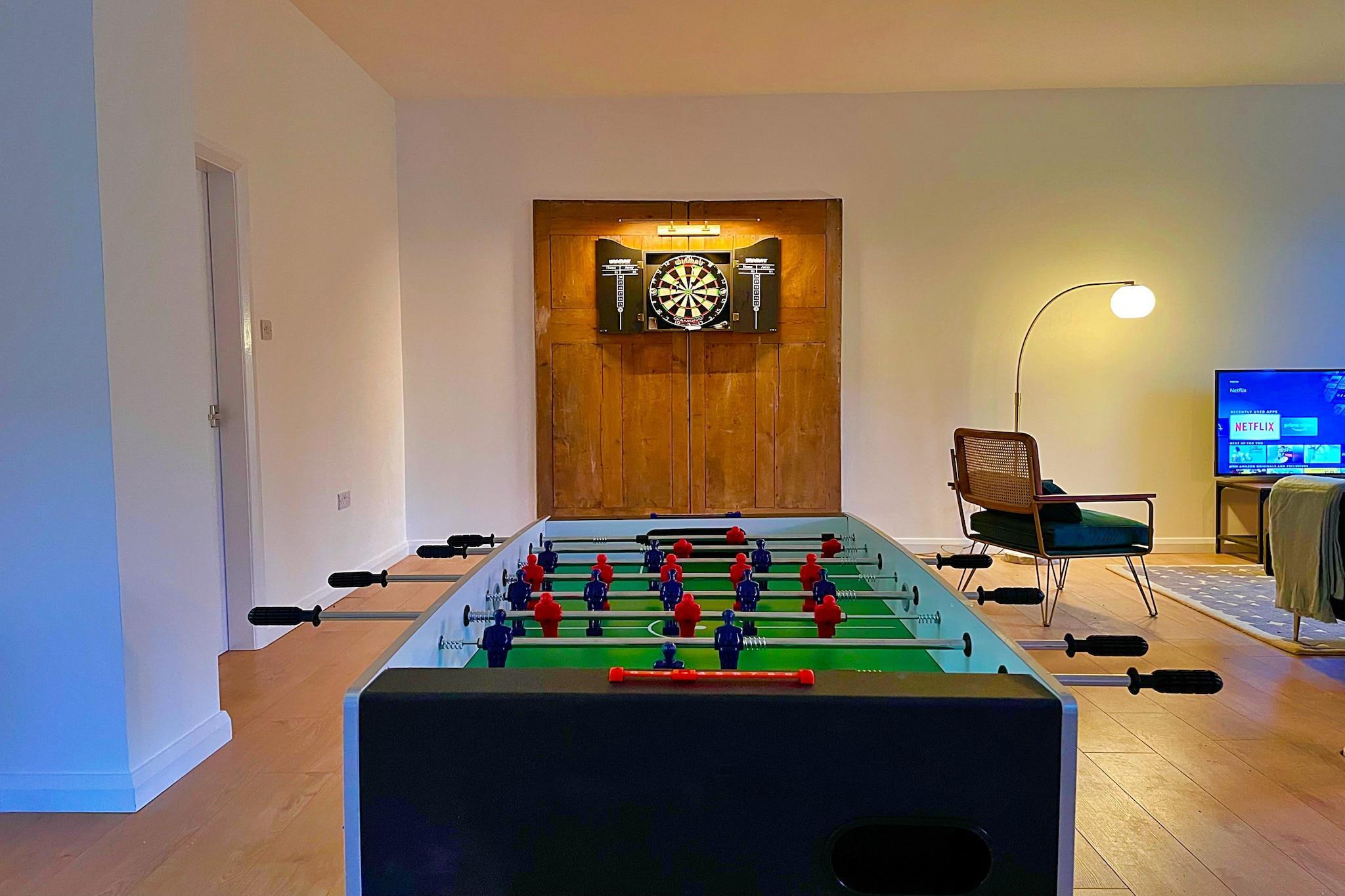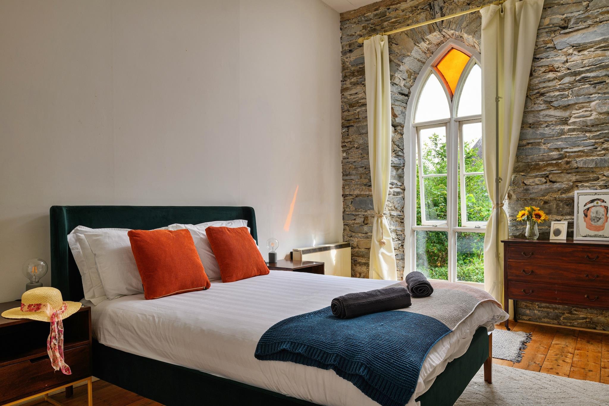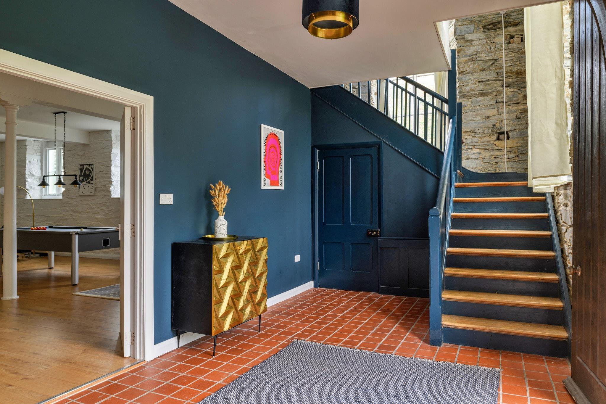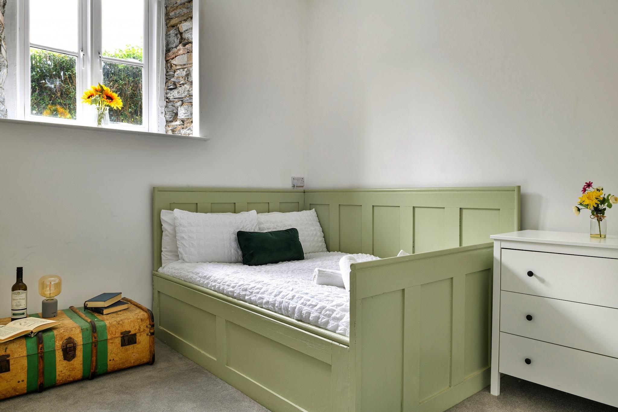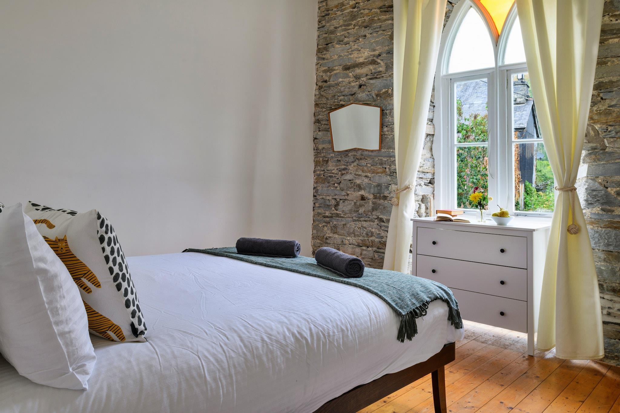 Dieses einzigartige Ferienhaus ist eine umgebaute Kapelle mit fünf Schlafzimmern, die bequem Platz für bis zu 12 Gäste bietet und somit eine ideale Wahl für große Familientreffen oder Gruppenaufenthalte ist. Mit vier Doppelzimmern und einem Schlafraum im Erdgeschoss für vier Personen bietet es sowohl Charme als auch Geräumigkeit. Entspannen Sie im Whirlpool im Freien, genießen Sie Spiele wie Tischfußball und Billard im speziellen Spielzimmer oder machen Sie es sich am Holzofen im weitläufigen Wohnbereich gemütlich. Haustiere sind willkommen und ein Kinderbett, ein Hochstuhl und ein Ladegerät für Elektrofahrzeuge sind ebenfalls vorhanden. Darüber hinaus genießen Sie kostenfreien Zugang zu allen Annehmlichkeiten, einschließlich WLAN und Parkplätzen. Das Haus liegt im malerischen Dorf Dinas Mawddwy an der Südspitze des Snowdonia-Nationalparks und ist von reicher Naturschönheit und faszinierender Geschichte umgeben. Nur eine kurze Autofahrt von Cader Idris und der Stadt Dolgellau entfernt haben Besucher einfachen Zugang zu Wanderwegen, lokalen Märkten und historischen Sehenswürdigkeiten. Die Dorfkneipe ist nur eine Minute zu Fuß entfernt und bietet frisch zubereitete Gerichte aus der Region, sodass das Essen im Freien bequem und angenehm ist. Im Inneren hat das Anwesen viel von seinem ursprünglichen Charme bewahrt, mit hohen Spitzbogenfenstern und freiliegendem Mauerwerk, ergänzt durch moderne Modernisierungen. Die voll ausgestattete Küche verfügt über einen Kühlschrank, einen Backofen, eine Mikrowelle, einen Geschirrspüler, eine Kaffeemaschine und Utensilien und eignet sich perfekt für die Selbstversorgung. Das große Badezimmer im Erdgeschoss verfügt über eine ebenerdige Dusche und eine freistehende freistehende Badewanne. Bettwäsche, Handtücher, Endreinigung und die Nutzung des Whirlpools sind im Preis inbegriffen und sorgen für einen komfortablen und unvergesslichen Aufenthalt.