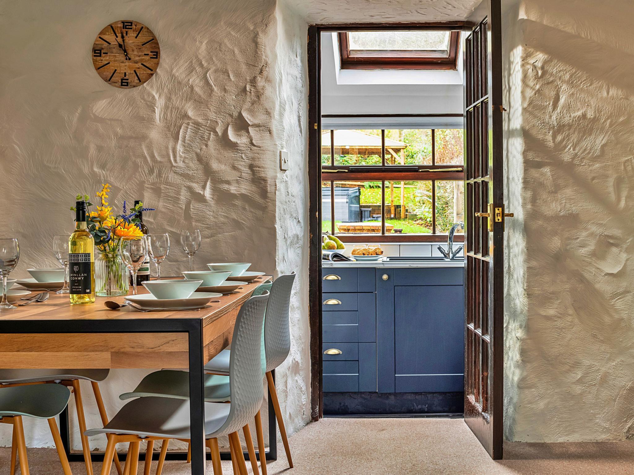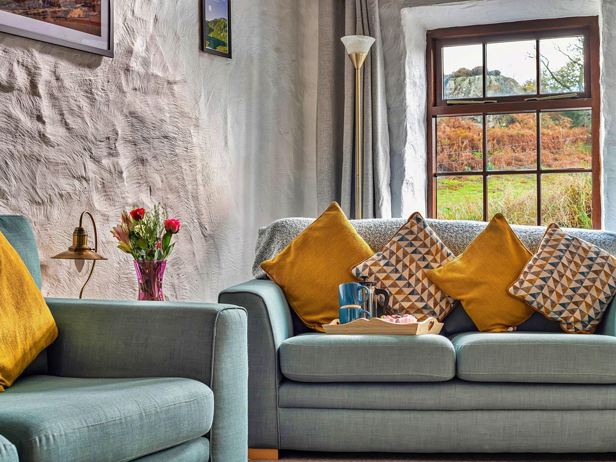 "Ty'r Delyn", 3-Zimmer-Haus 110 m2. Objekt geeignet für 5 Erwachsene. Wohnzimmer mit offenem Kamin und TV. 1 Zimmer mit 1 Bett und 1 franz. Bett. 1 Zimmer mit 1 Doppelbett. Küche (4 Kochplatten, Backofen, Geschirrspüler, Toaster, Wasserkocher, Mikrowelle). Dusche/WC. Terrasse 30 m2. Sicht auf die Berge, den Garten und den Fluss. Zur Verfügung: Bügeleisen. Internet (WLAN, gratis). Bitte beachten: Nichtraucher-Unterkunft. Rauchmelder.