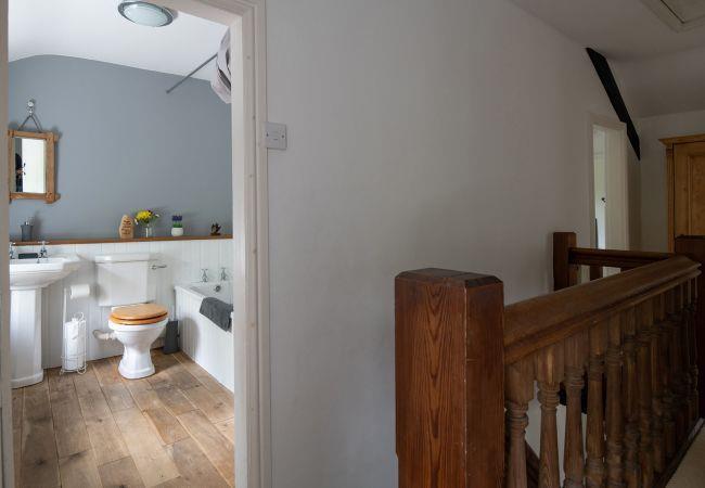 Upstairs, there is a spacious landing, and 3 beautifully dressed bedrooms, one king-size, one double and one single, complete with ample storage space. The modern bathroom boasts a quality traditional style suite of bath with shower over, basin and close-coupled WC.