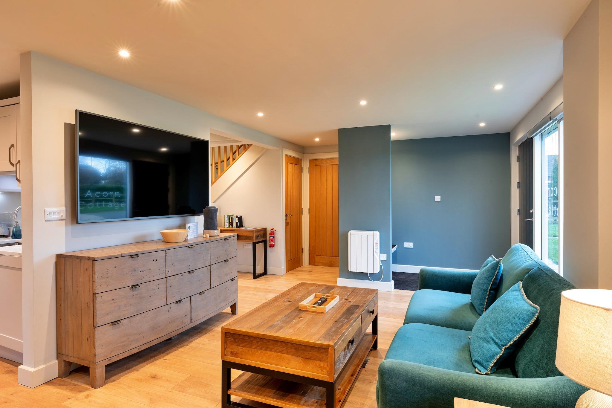 Acorn Cottage ist ein friedlicher, umweltfreundlicher Rückzugsort im Heart of England Forest und bietet einen perfekten Rückzugsort für Paare, kleine Familien oder Alleinreisende. Dieses charmante Cottage verfügt über einen gemütlichen, offenen Wohnbereich mit natürlichen Stoffen, der einen einladenden Raum zum Entspannen und Erholen bietet. Mit einer voll ausgestatteten Küche und einem handgefertigten Esstisch aus Holz für vier Personen ist das Cottage ideal für die Selbstversorgung. Das Hauptschlafzimmer verfügt über ein luxuriöses Kingsize-Bett und ein eigenes Badezimmer mit Badewanne und ebenerdiger Dusche, während das zweite Schlafzimmer über ein maßgeschneidertes Einzelbett verfügt. Im Hauptbadezimmer steht Ihnen eine geräumige ebenerdige Dusche zur Verfügung und im Erdgeschoss befindet sich eine praktische Garderobe. Der umliegende 7.000 Hektar große Heart of England Forest ist der perfekte Ort für Naturliebhaber, da er kilometerlange öffentliche Fußwege zum Erkunden bietet und eine direkte Verbindung zum Noleham Brook und Colletts Pond bietet. Gäste können durch eine Vielzahl von Lebensräumen wandern, von Wildblumenwiesen bis hin zu alten Wäldern, und friedliche Momente in der umliegenden Naturschönheit genießen. Das Anwesen liegt nicht weit von diesen Wanderwegen entfernt und ist somit ein idealer Ort für alle, die die Natur erleben möchten. Das Acorn Cottage verfügt über einen privaten, umzäunten Garten mit Terrasse und Gartenmöbeln, der den perfekten Platz für Mahlzeiten im Freien bietet. Für Gäste, die die Gegend auf zwei Rädern erkunden möchten, steht außerdem ein sicherer Fahrradkeller zur Verfügung. Es stehen Parkplätze für bis zu zwei Fahrzeuge zur Verfügung. Das Ferienhaus ist haustierfreundlich und erlaubt gegen einen geringen Aufpreis die Unterbringung von bis zu zwei Hunden. Mit modernen Annehmlichkeiten wie einem Ladegerät für Elektrofahrzeuge, WLAN und viel Platz zum Entspannen bietet dieses Öko-Ferienhaus eine perfekte Mischung aus Luxus, Nachhaltigkeit und Natur.