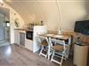 Erleben Sie einen perfekten Urlaub im Barebones Glamping, wo eine charmante Hütte bequem Platz für bis zu vier Gäste und ein Kind unter 12 Jahren bietet. Inspiriert von traditionellen Klinkerbooten, die von Küstengemeinden wie Lindisfarne Island in Northumberland genutzt werden, kombiniert diese einzigartige Glamping-Unterkunft nautisches Design mit modernem Komfort und schafft so einen gemütlichen Wohnraum für das ganze Jahr. Die private Terrasse an der Vorderseite und der seitliche Kiesbereich bieten einen uneingeschränkten Blick über den See in Richtung Bristol Lodge, dem historischen Zuhause der Autorin Catherine Cookson, und bieten eine atemberaubende Kulisse zum Entspannen. Im Inneren verfügt die Hütte über eine gut ausgestattete Küchenzeile mit Spüle, Wasserkocher, Toaster, Kühlschrank mit kleinem Eisfach, Doppel-Cerankochfeld und Elektroherd mit Grill – perfekt für die Zubereitung von Mahlzeiten während Ihres Aufenthalts. Der Schlafbereich verfügt über ein bequemes Kingsize-Bett, das vom Wohnbereich mit einem Kingsize-Schlafsofa abgetrennt werden kann. Ein Klapptisch mit Klappstühlen bietet einen bequemen Essbereich. Die Kabine wird durch eine elektrische Heizung beheizt und Unterhaltung ist über einen 28-Zoll-Smart-TV mit DVD-Player und WLAN verfügbar, was für Komfort und Konnektivität während Ihres Besuchs sorgt. Gäste können die malerische Umgebung mit den bereitgestellten Vogelbeobachtungs- und Sternenbeobachtungsführern sowie OS-Entdeckerkarten zur Erkundung der heimischen Tierwelt, Wanderwege und Sternenhimmel genießen. Auf dem Gelände gibt es auch einen Kinderspielbereich im maritimen Stil mit einem Frachtnetz, einer Rutsche, einem kleinen Boot und einer erhöhten Plattform, ideal für fantasievolle Piratenabenteuer. Bitte beachten Sie, dass Haustiere im Barebones Glamping nicht gestattet sind. Wenn Sie haustierfreundliche Optionen wünschen, ziehen Sie andere Hütten vor Ort in Betracht. Tauchen Sie ein in einen ruhigen Rückzugsort am Wasser, umgeben von Natur, Tierwelt und bezaubernder Aussicht auf die Küste.