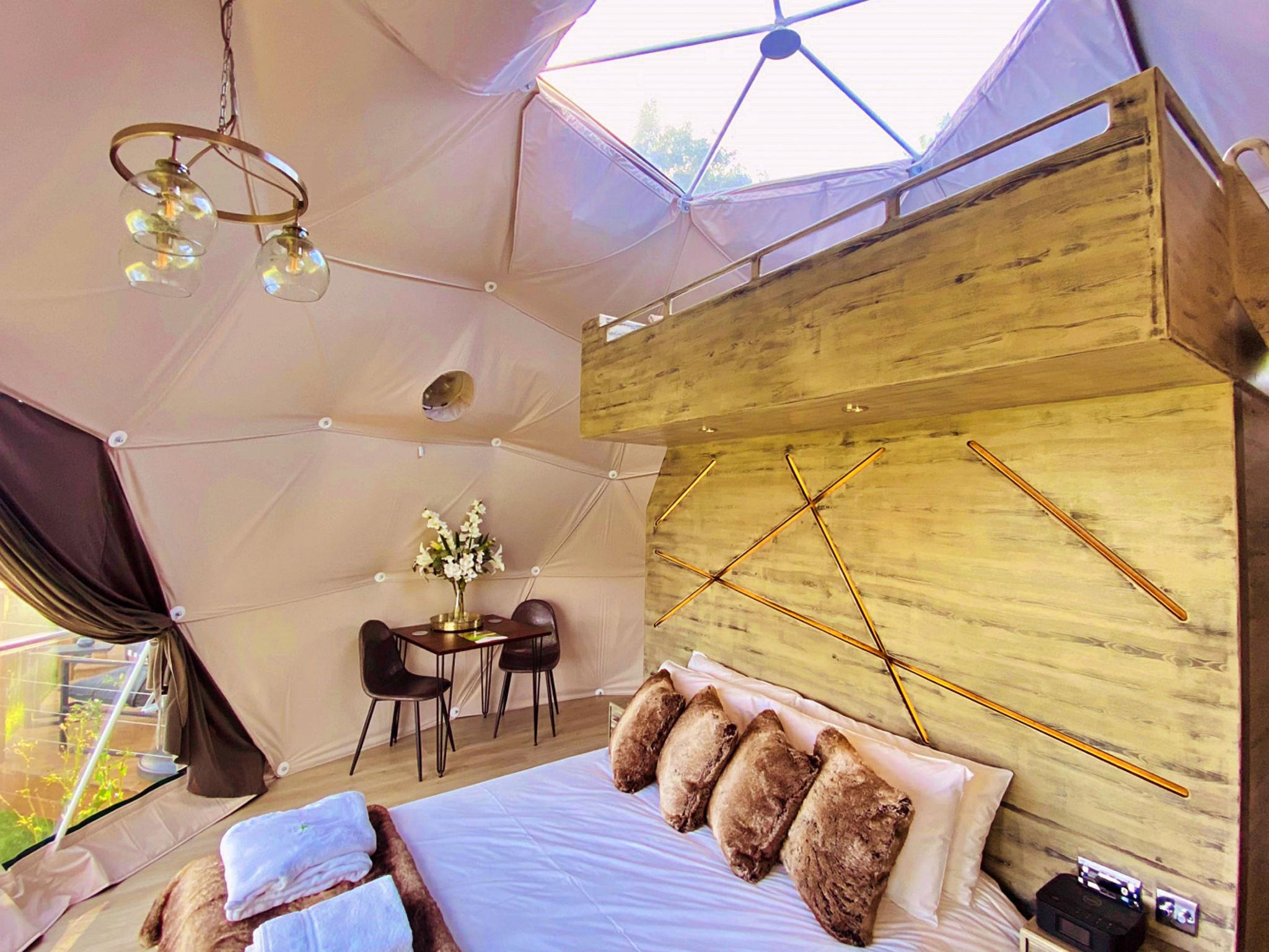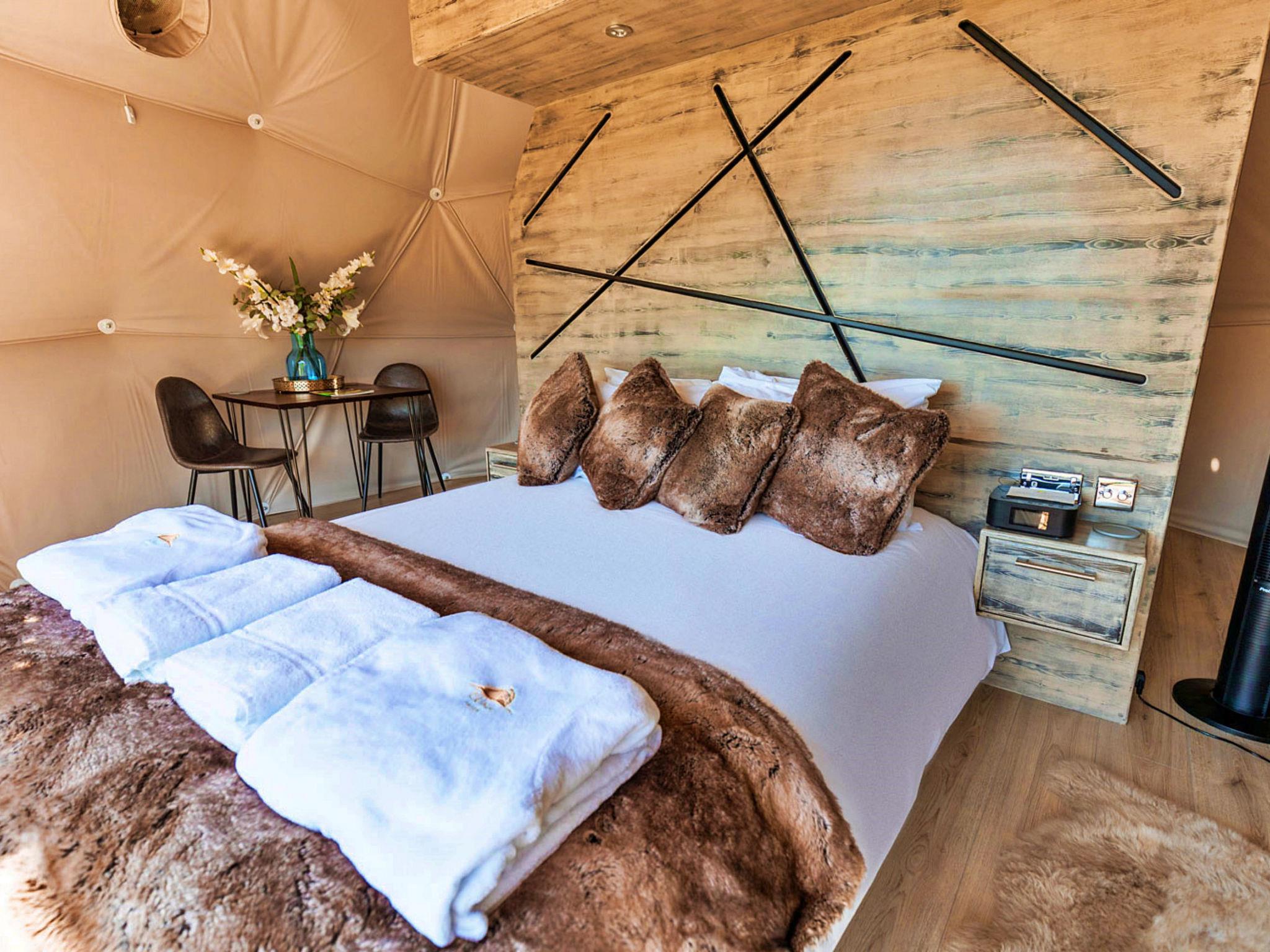 "Scotney Luxury Dome", 2-Zimmer-Chalet 30 m2, im Erdgeschoss. Objekt geeignet für 4 Erwachsene. Wohnzimmer mit offenem Kamin. 1 Zimmer mit 2 franz. Betten. Küche (Toaster, Wasserkocher, Mikrowelle, elektrische Kaffeemaschine). Dusche/WC. Gartengrill. Zur Verfügung: Bügeleisen, Haartrockner. Internet (WLAN, gratis). Parkplatz (2 Autos). Bitte beachten: Nichtraucher-Unterkunft. Rauchmelder.