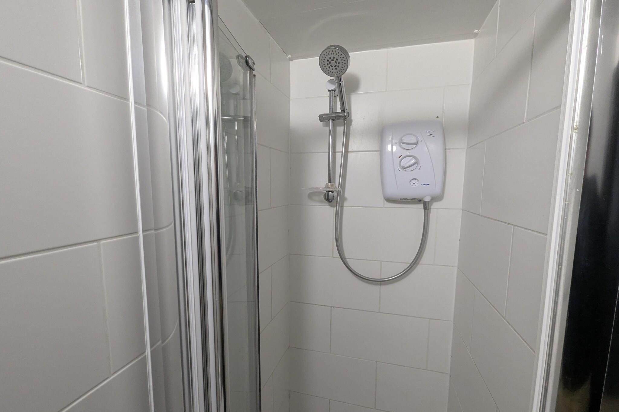 Parterre: (Küche(Kühlschrank), Schlafzimmer(Einzelbett, TV(smart TV)), Badezimmer(Dusche, Toilette, Föhn, )) Überwachungskameras,