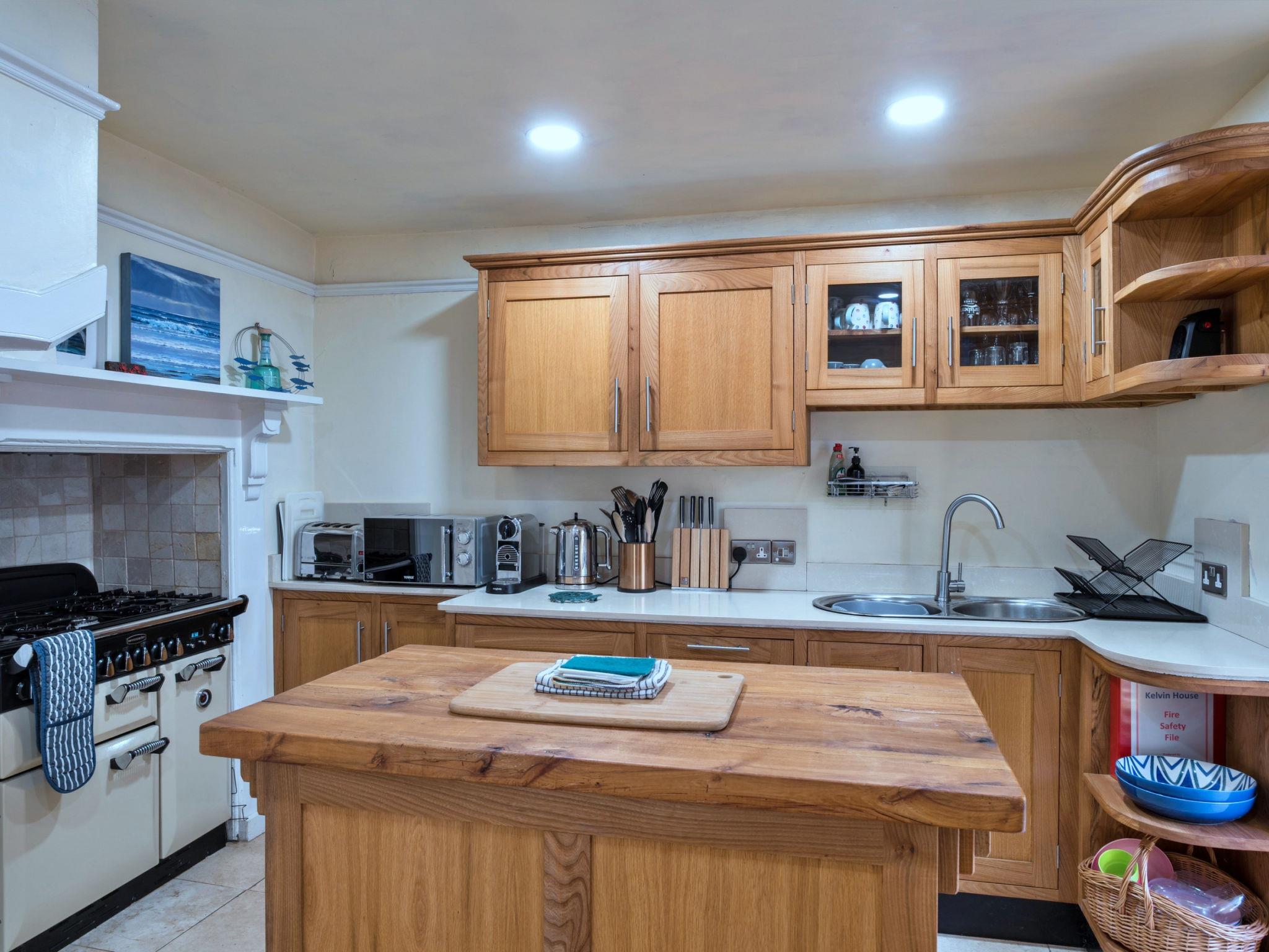"Kelvin House", 5-Zimmer-Haus 160 m2. Objekt geeignet für 9 Erwachsene. Wohnzimmer. 1 Zimmer mit 1 franz. Bett. 1 Zimmer mit 1 Doppelbett. 1 Zimmer mit 1 Doppelbett. 1 Zimmer mit 1 Doppelbett. Küche (Backofen, Geschirrspüler, Toaster, Wasserkocher, Mikrowelle, Tiefkühler). 3 Duschen/WC. Gartengrill. Zur Verfügung: Waschmaschine, Haartrockner. Internet (WLAN, gratis). Bitte beachten: Nichtraucher-Unterkunft. 1 Haustier/Hund erlaubt. Rauchmelder.