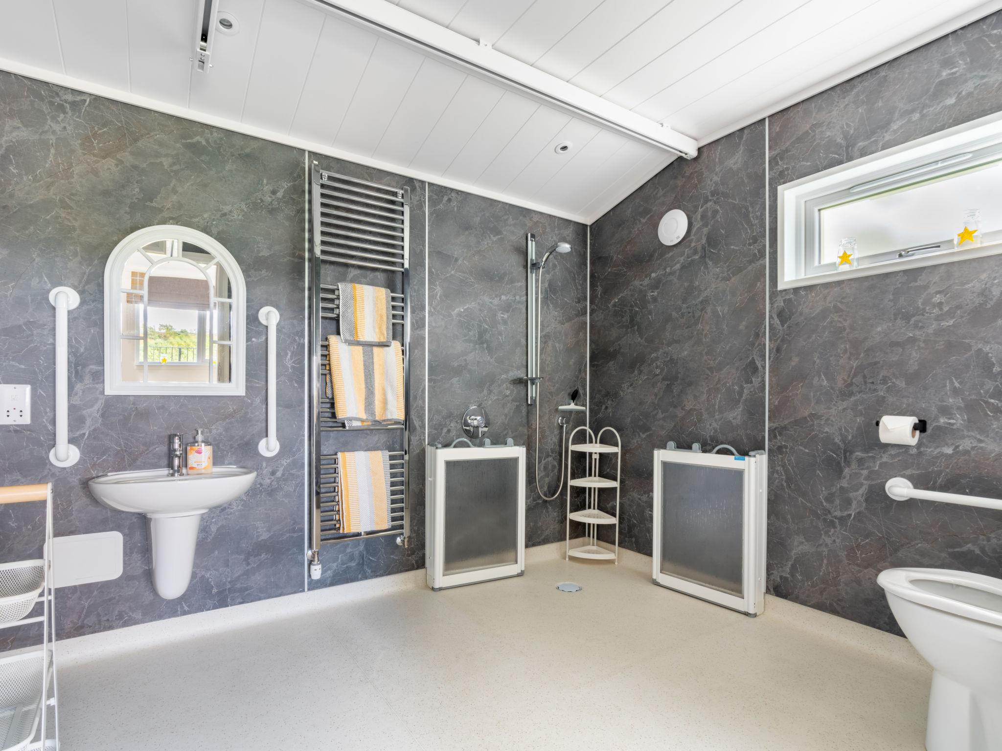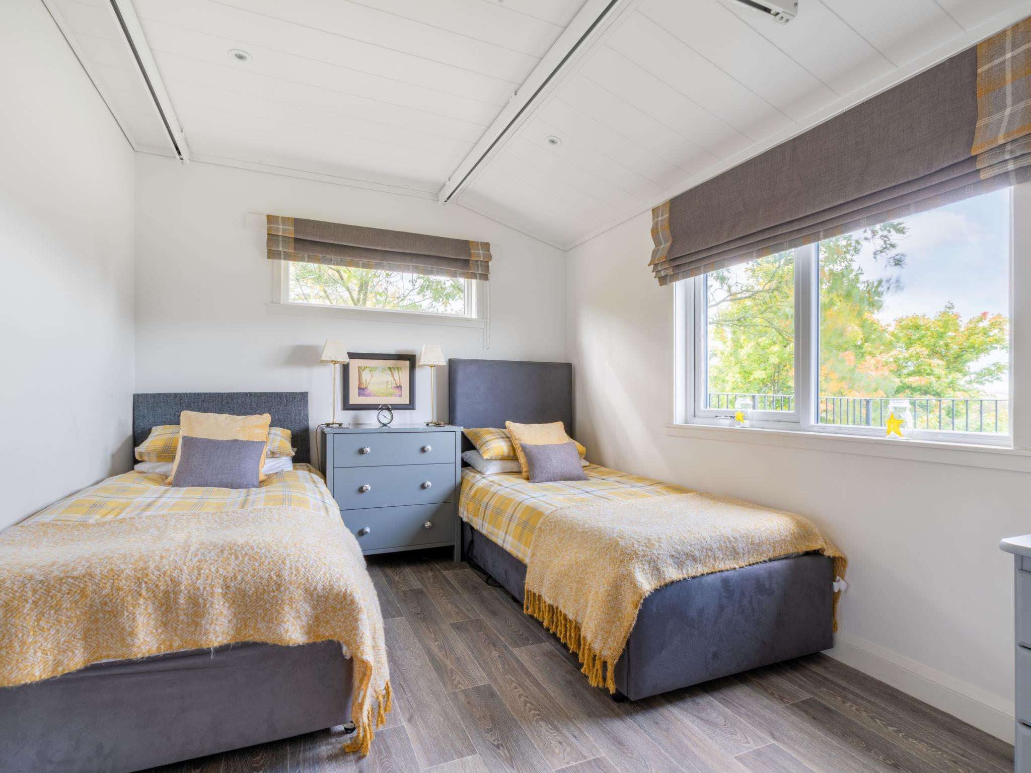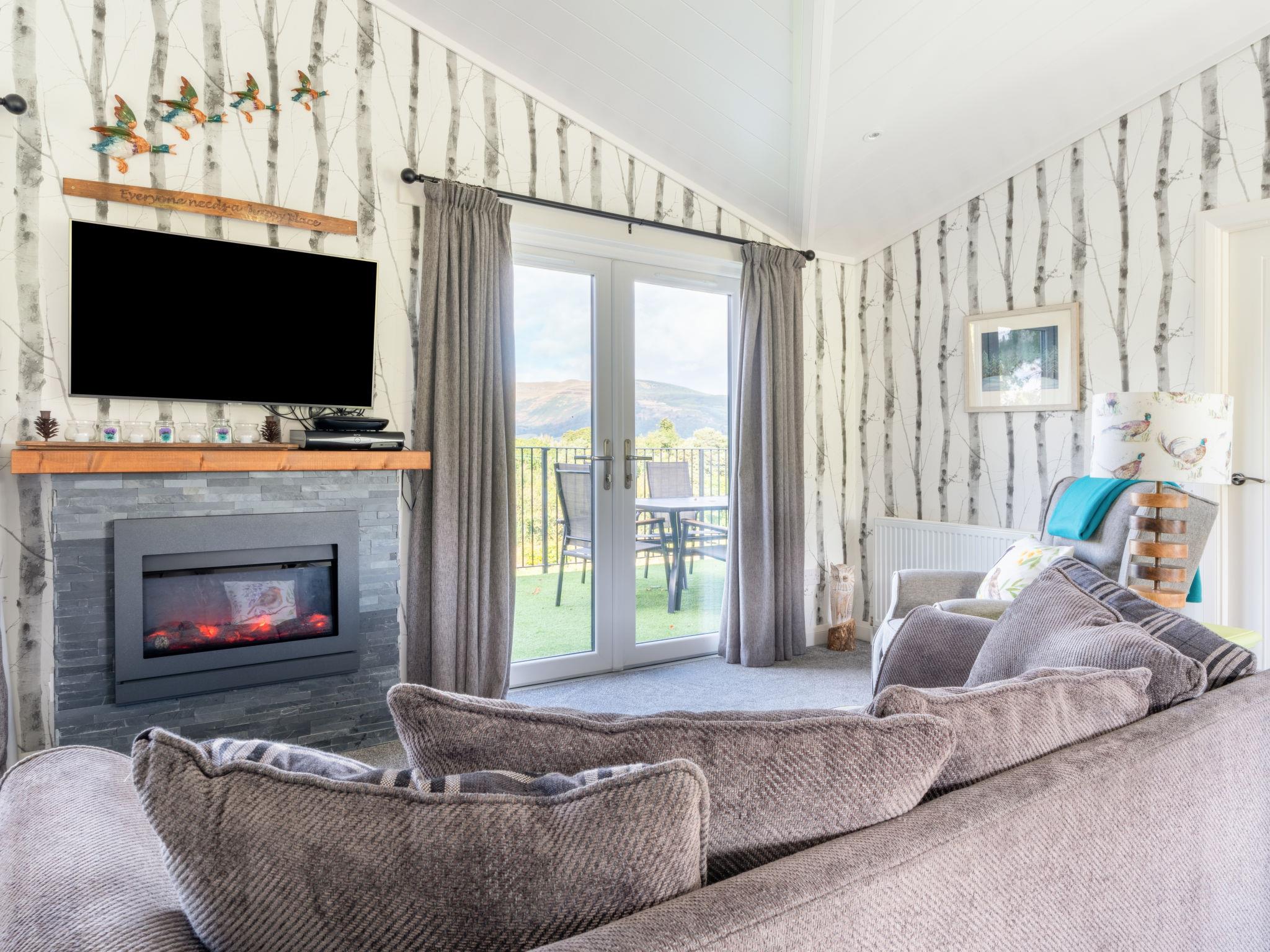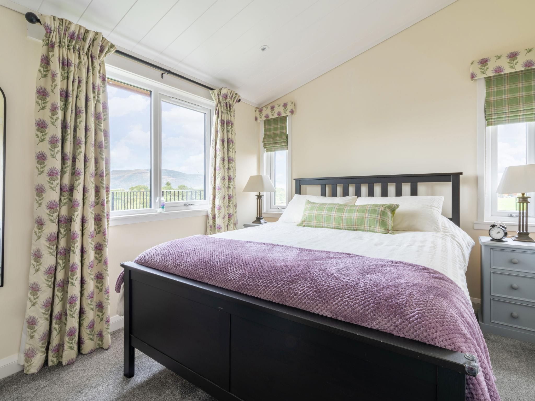 "Loch Leven Lodge 16 Robin's Nest", 3-Zimmer-Chalet 59 m2, im Erdgeschoss. Modern und geschmackvoll eingerichtet: offenes Wohn-/Esszimmer mit Veranda, Panoramafenster mit 1 Diwanbett, Esstisch und TV (Flachbildschirm). Ausgang zur Veranda. 1 Doppelzimmer mit 1 Doppelbett und Bad/Dusche/WC. 1 Doppelzimmer mit 2 Betten und Bad/WC. Offene Küche (4 Kochplatten, Backofen, Toaster, Wasserkocher, Grill). Heizung. Grosser Balkon. Balkonmöbel. Schöne Sicht auf den See. Zur Verfügung: Waschmaschine. Internet (Wireless LAN, gratis). Parkplatz beim Haus. Bitte beachten: geeignet für Familien. Nichtraucher-Haus. TV nur EN. Das Anwesen wurde innen so ausgestattet, dass es gut auch für behinderte Gäste geeignet ist. Kingsize-Bett. Es gibt eine Rampe für den Zugang zur Hintertür und ein Heber ist im Zweibettzimmer mit einer Nasszelle zur Verfügung. Ein Nachtstuhl kann auf Anfrage gegen Aufpreis gebucht werden. Es gibt einen zusätzlichen Kühlschrank unter der Theke, um die Zugänglichkeit für behinderte Gäste zu erleichtern. Behindertengerechte Artikel können auf Anfrage gegen Aufpreis hinzugebucht werden. Bitte kontaktieren Sie uns für weitere Informationen vor der Buchung.