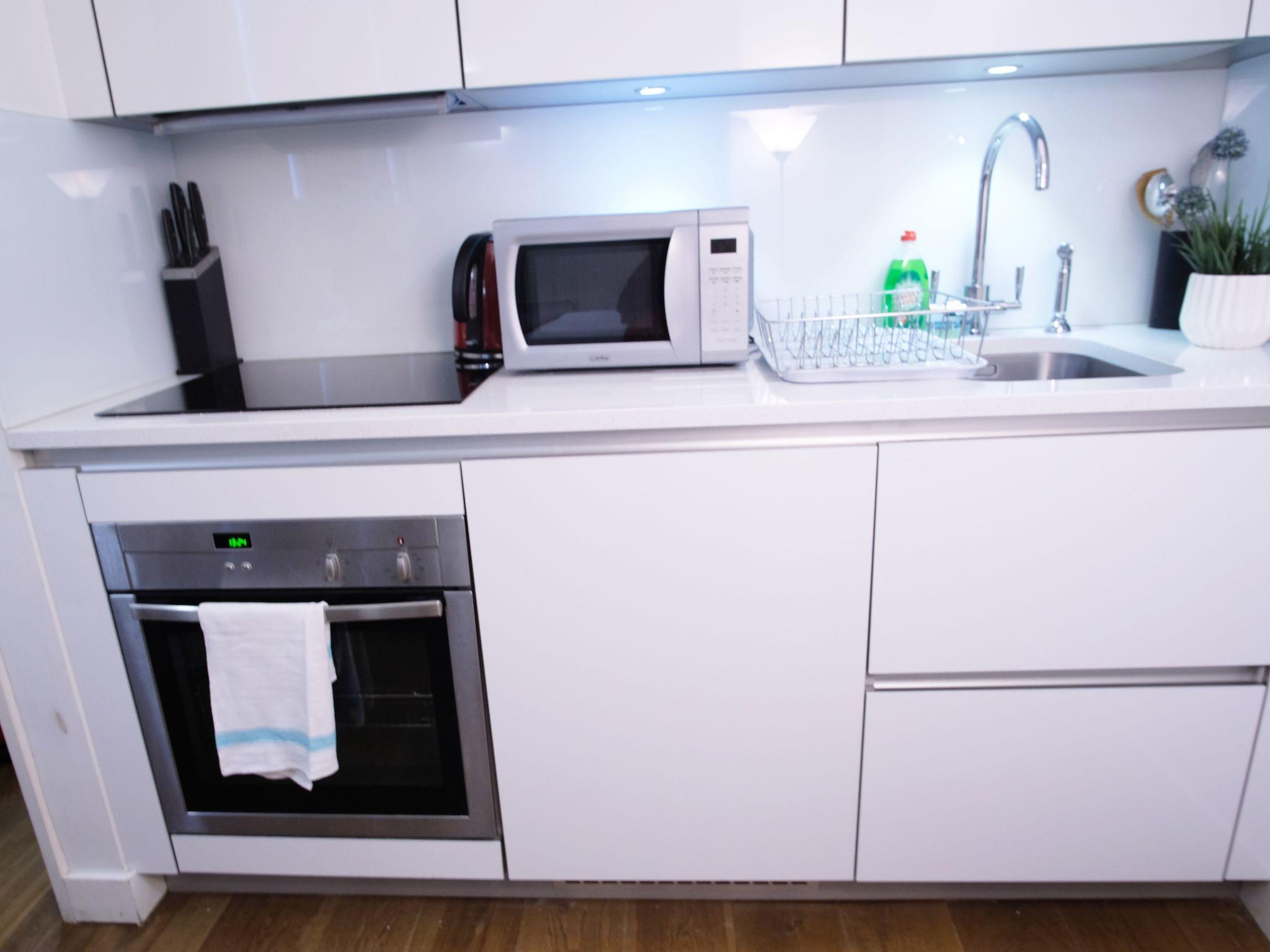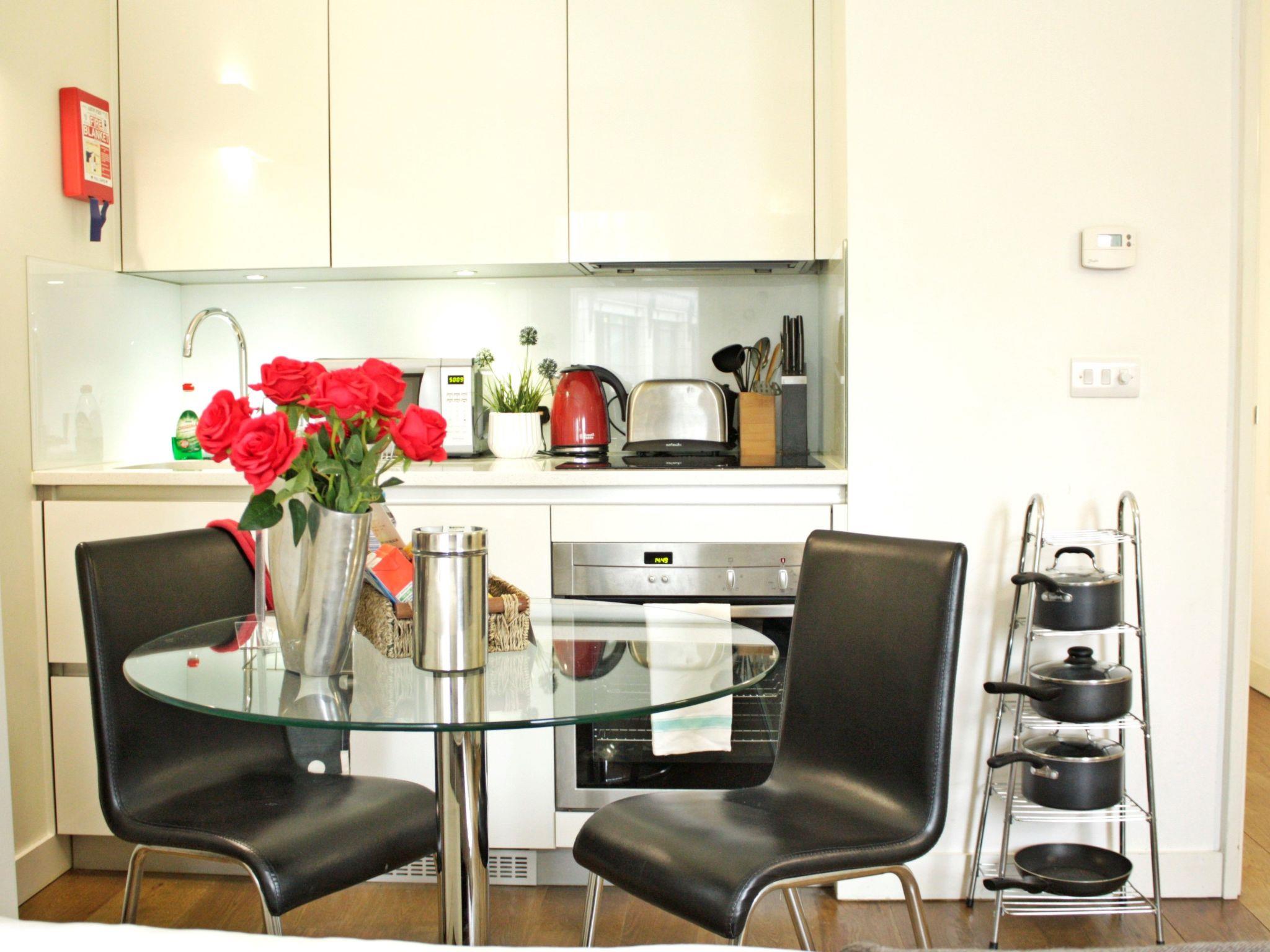 Grillen ist zwar nicht erlaubt, aber die Umgebung der Wohnung macht das mehr als wett. Wenn Sie nach draußen treten, werden Sie sofort von der Energie des Londoner Stadtviertels begrüßt. Das Fehlen eines Gartens oder Außenbereichs ermutigt Sie dazu, sich in die urbane Landschaft zu begeben, wo die Schätze der Stadt auf Sie warten. Mit einem nur 100 m entfernten Lebensmittelgeschäft sind die Dinge des täglichen Bedarfs leicht zu erreichen, so dass ein sorgenfreier Aufenthalt gewährleistet ist.