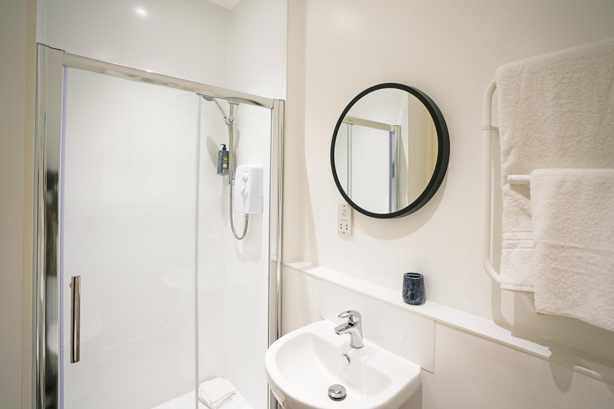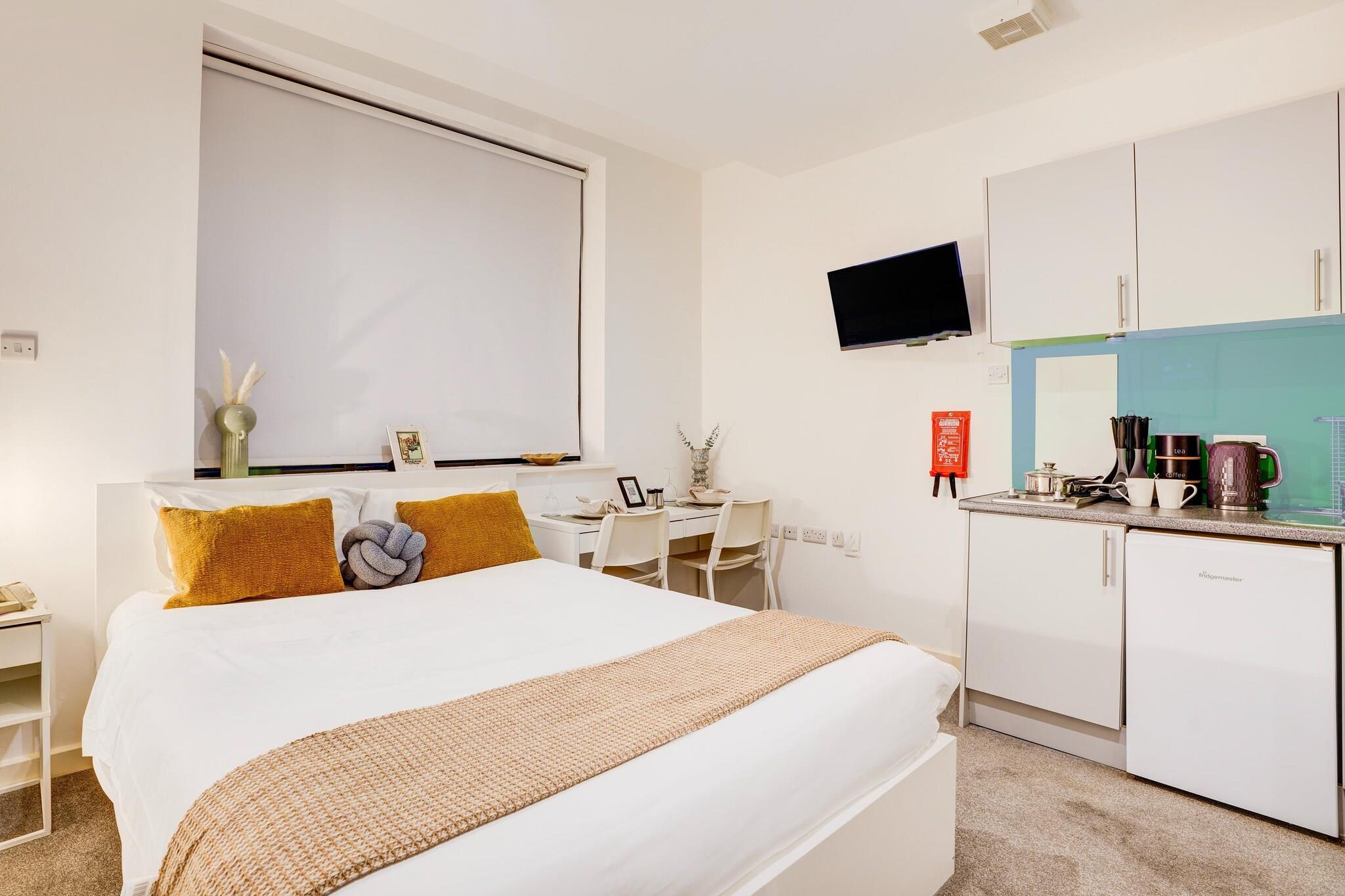 Erstklassige Lage am Flussufer Dieses moderne Apartment im Herzen von Kingston upon Thames bietet das Beste aus zwei Welten: eine ruhige Stadt am Flussufer mit hervorragender Anbindung an das Zentrum Londons. Nur einen kurzen Spaziergang vom Bahnhof Kingston entfernt erreichen Sie London Waterloo in 30 Minuten. Die lebhafte London Road bietet eine Vielzahl von Cafés, Restaurants und Geschäften direkt vor Ihrer Haustür. Stilvoller Komfort und intelligente Ausstattung Jedes Apartment ist durchdacht gestaltet und verfügt über hochwertige Ausstattung und eine intelligente Raumaufteilung. Genießen Sie den schlüssellosen Self-Check-in, schnelles WLAN und eine voll ausgestattete Küche mit hochwertigen Geräten. Die Unterkunft verfügt außerdem über eine rund um die Uhr videoüberwachte Unterkunft für ein sorgenfreies Leben, einen idealen Arbeitsbereich für Geschäftsreisende und eine hauseigene Wäscherei für längere Aufenthalte. Entdecken, Entspannen & Entspannen Verbringen Sie Ihre Tage mit der Erkundung nahegelegener Sehenswürdigkeiten wie dem Hampton Court Palace und dem Richmond Park oder einem Spaziergang entlang der Themse. Das Rose Theatre, der Bushy Park und das Bentall Centre bieten Kultur, Natur und Einkaufsmöglichkeiten nur wenige Minuten entfernt. Ob Sie alleine, als Paar oder mit der Familie reisen, dies ist Ihr idealer Ausgangspunkt in der Nähe von London.