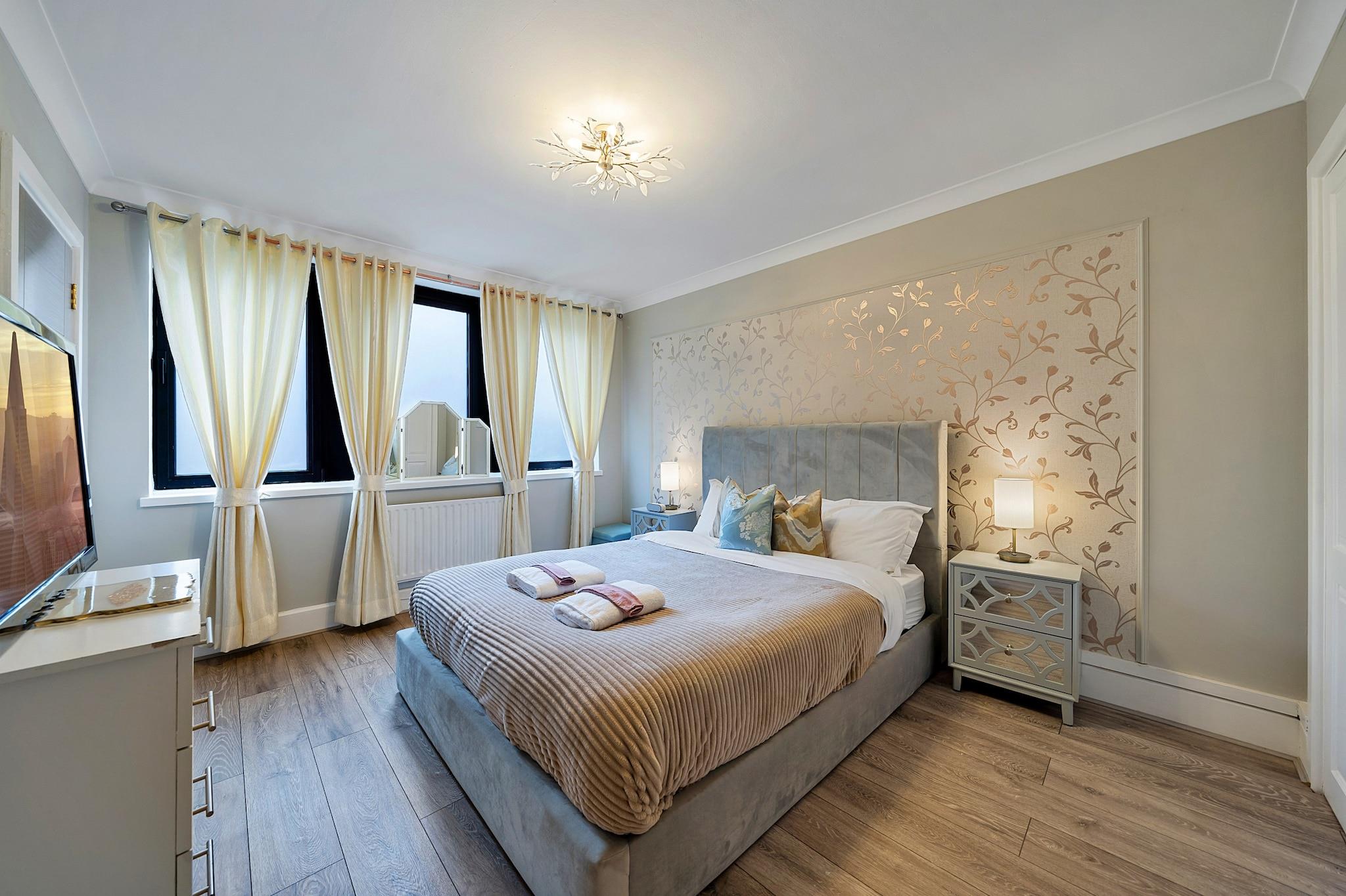 Eingebettet in den historischen Charme von Wapping bietet dieses moderne und stilvolle Apartment einen einladenden Rückzugsort in einer malerischen Gegend, die für ihre gepflasterten Straßen, historischen Pubs und atemberaubenden Anwesen am Flussufer bekannt ist. Wenn Sie durch die Tür treten, werden Sie von einer beruhigenden Palette sanfter, neutraler Töne begrüßt, die eine ruhige Atmosphäre schaffen und die Voraussetzungen für einen wirklich komfortablen Aufenthalt schaffen. Der geräumige Wohnbereich verfügt über hochwertige Möbel und eignet sich sowohl zum Entspannen als auch für gesellige Zusammenkünfte. Er verfügt über ein großes Kingsize-Bett und ein praktisches Doppelschlafsofa für zusätzliche Gäste. Für kulinarische Liebhaber verfügt das Apartment über eine gut ausgestattete Küche mit allen wichtigen Annehmlichkeiten, die Sie für die Zubereitung von Mahlzeiten während Ihres Aufenthalts benötigen. Von der Waschmaschine und dem Backofen bis hin zum Geschirrspüler und Kühl-/Gefrierschrank wurde jedes Detail sorgfältig durchdacht, um Komfort und Bequemlichkeit zu gewährleisten. Egal, ob Sie sich für einen gemütlichen Abend einrichten oder Freunde unterhalten, Sie haben alle Werkzeuge, die Sie brauchen, immer zur Hand. Ideal gelegen, nur einen Steinwurf von berühmten Wahrzeichen wie dem Tower of London entfernt, bietet dieses Apartment einen hervorragenden Zugang zur pulsierenden Energie der Stadt. Egal, ob Sie geschäftlich oder privat in London sind, dieser durchdacht gestaltete Rückzugsort dient als perfekter Ausgangspunkt, um alles zu erkunden, was diese dynamische Stadt zu bieten hat. Erleben Sie die Mischung aus modernem Komfort und historischem Charme und machen Sie dieses entzückende Apartment zu Ihrem zweiten Zuhause.